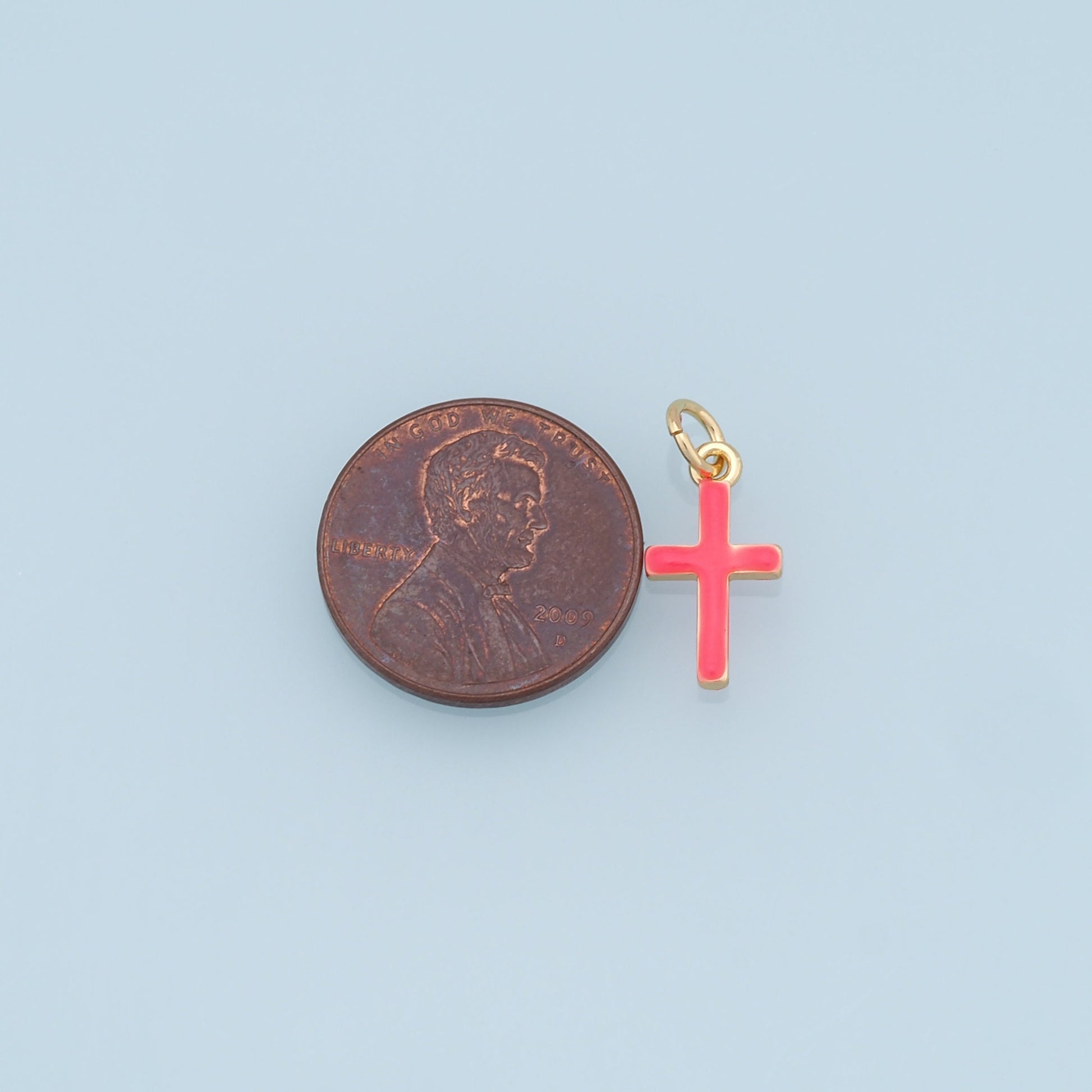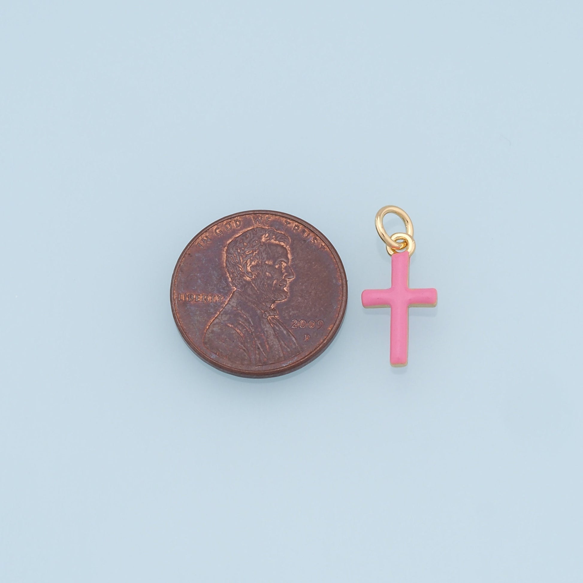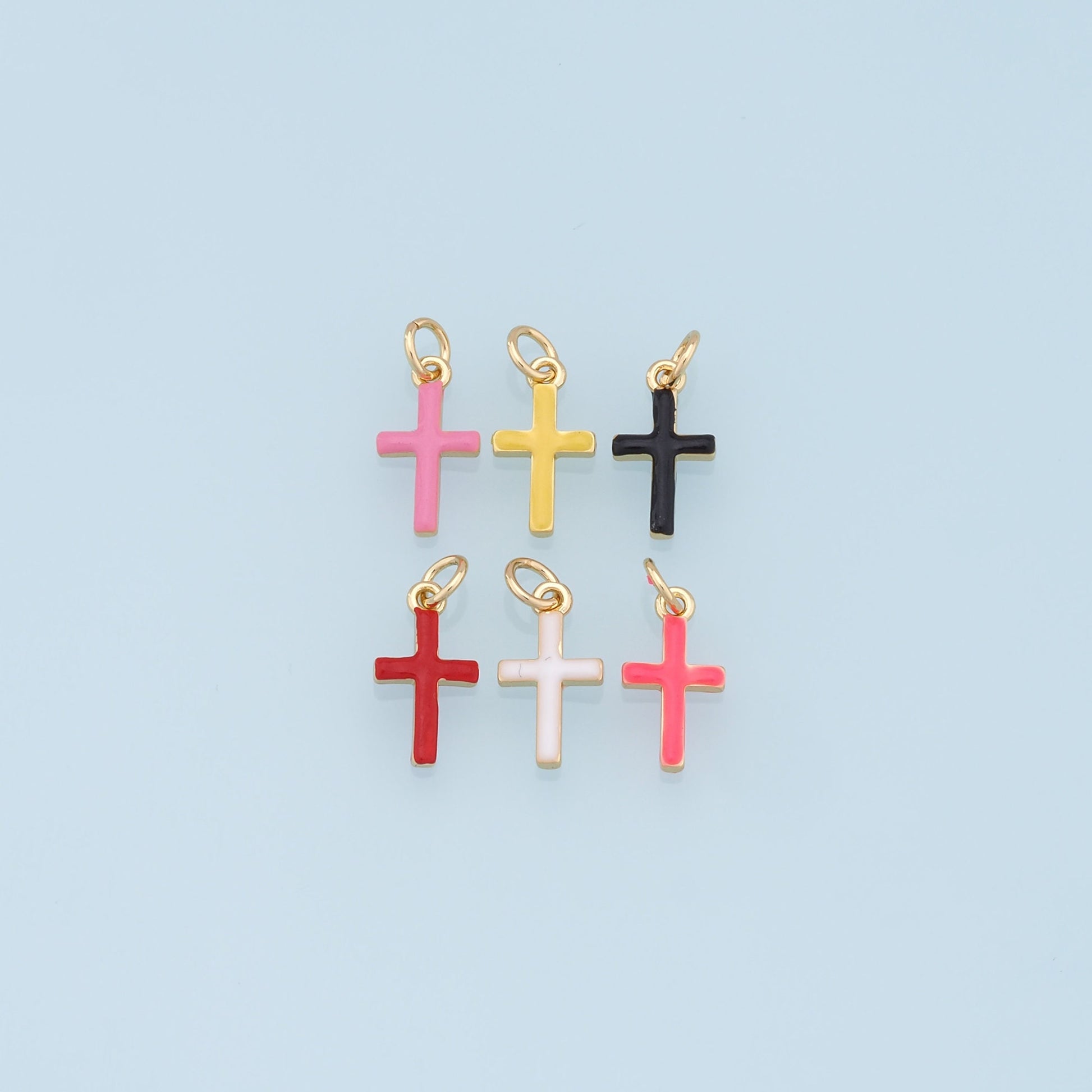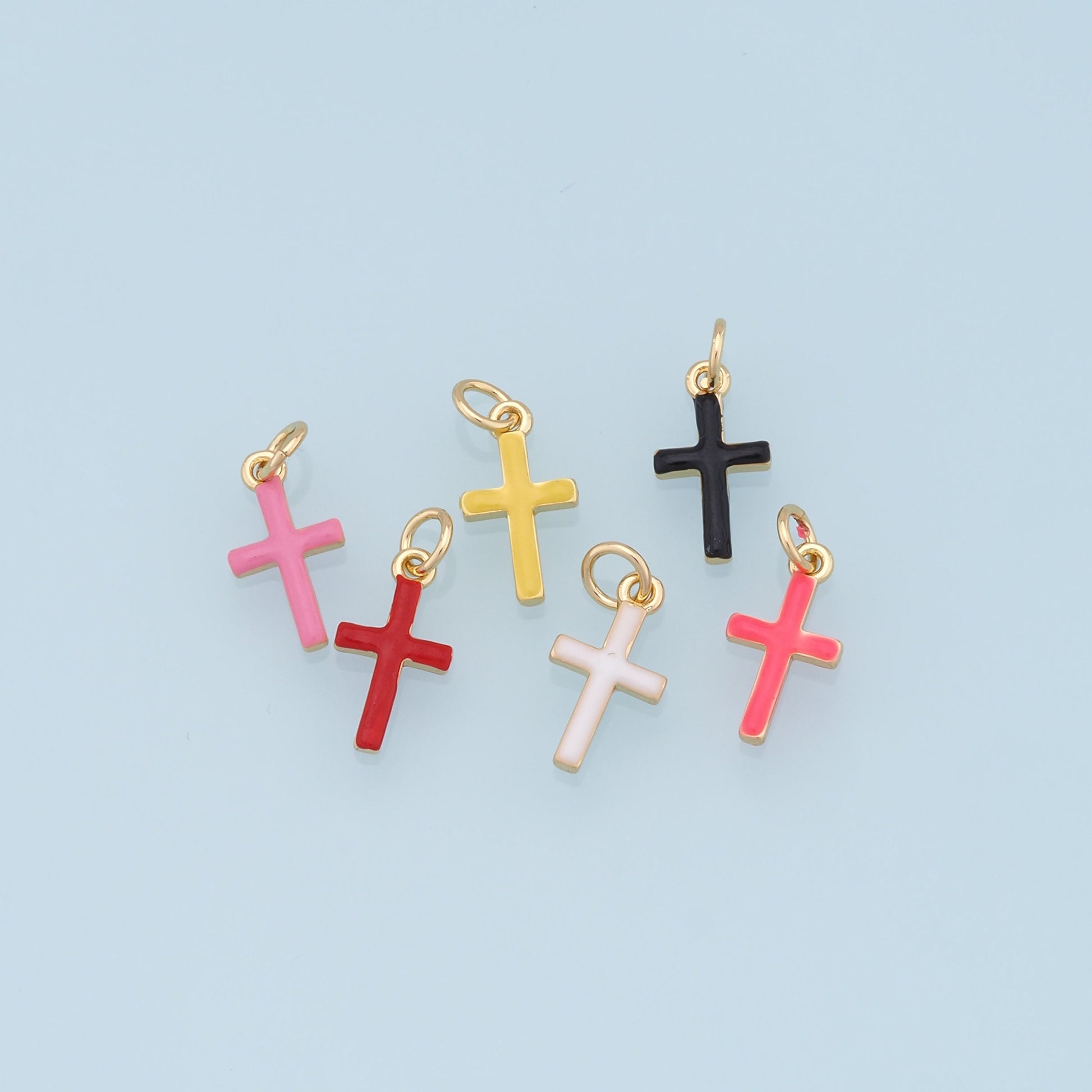 Gold Cross Charms,18K Gold Filled Enamel Cross Pendant,Protect Religious Charm Bracelet Necklace for DIY Jewelry Making Supply
