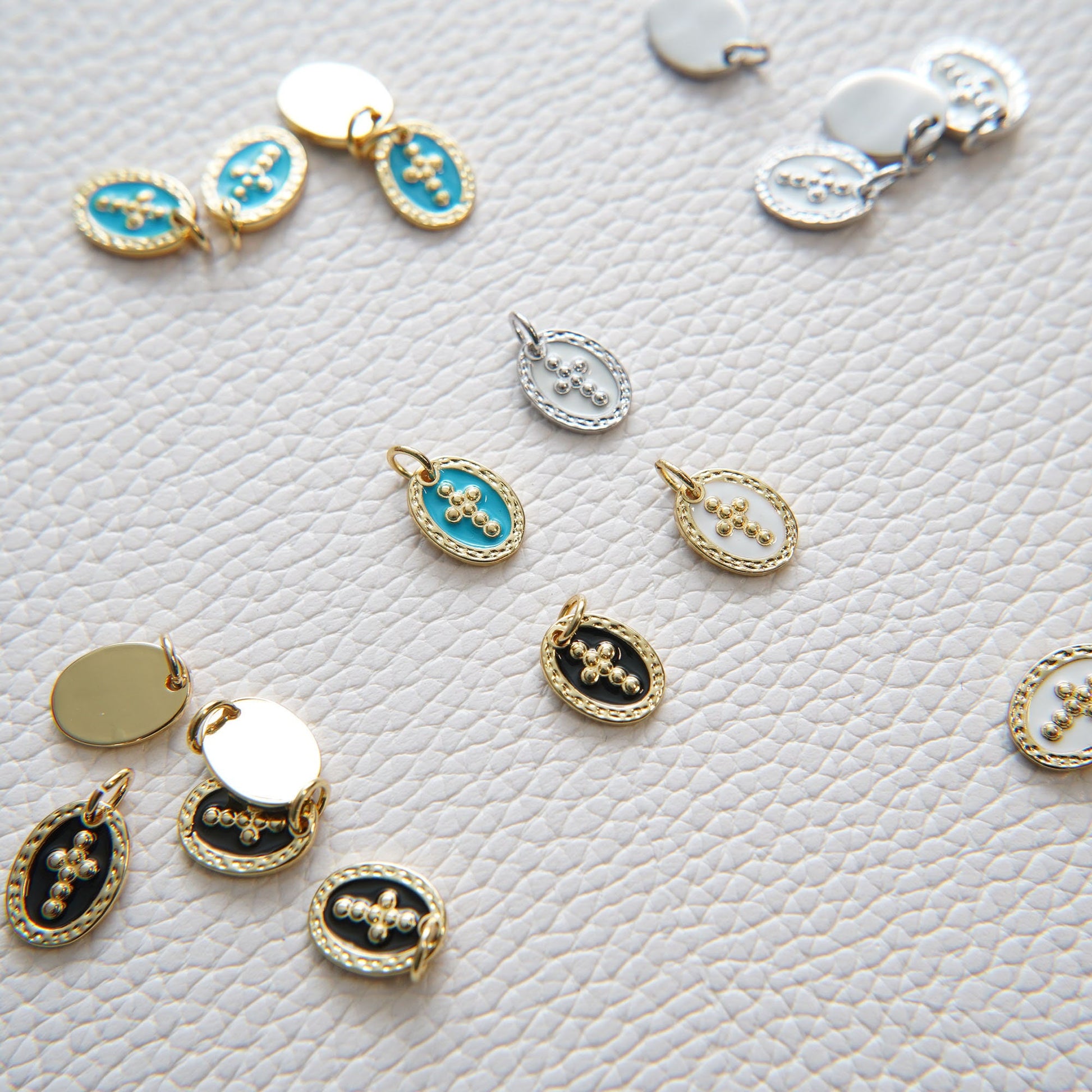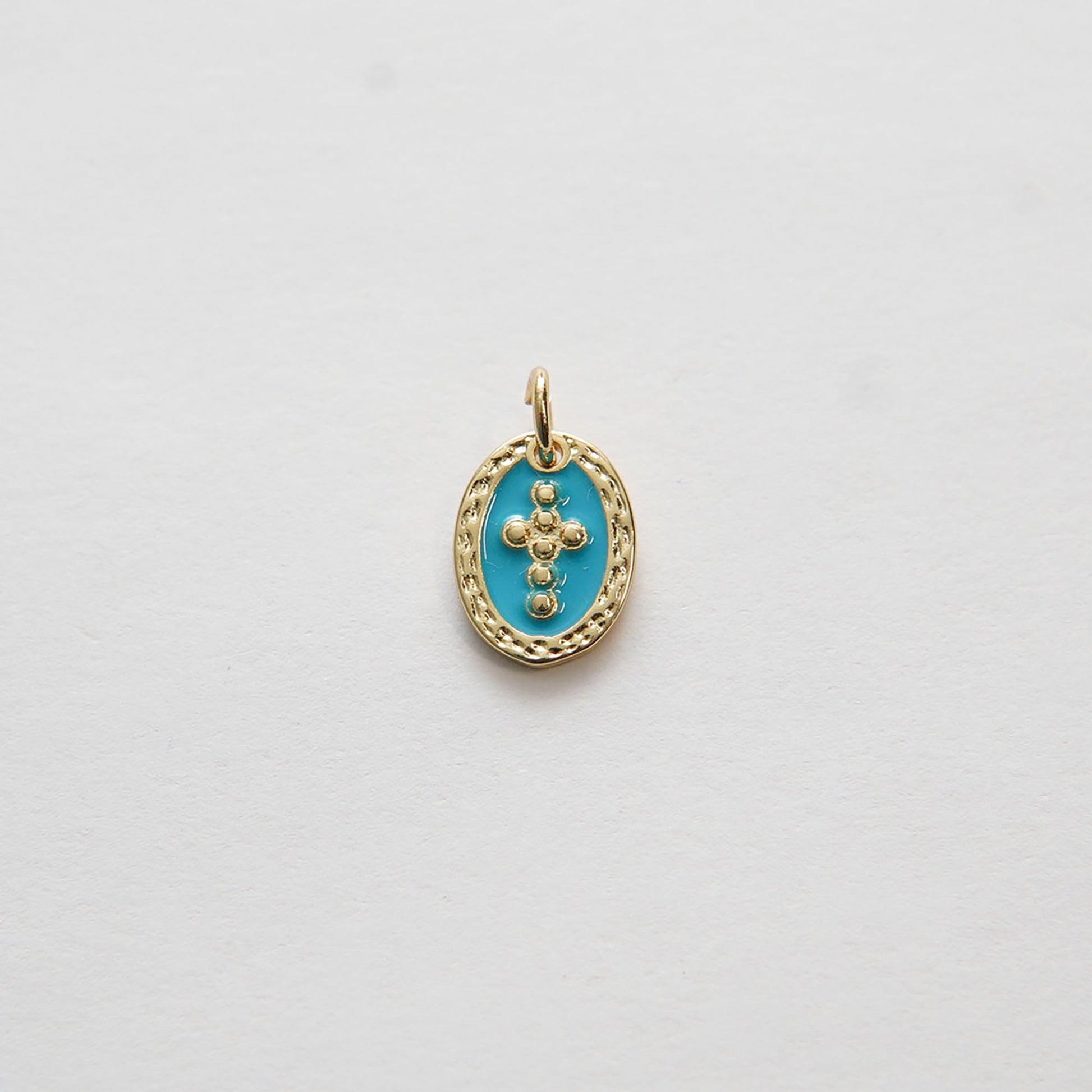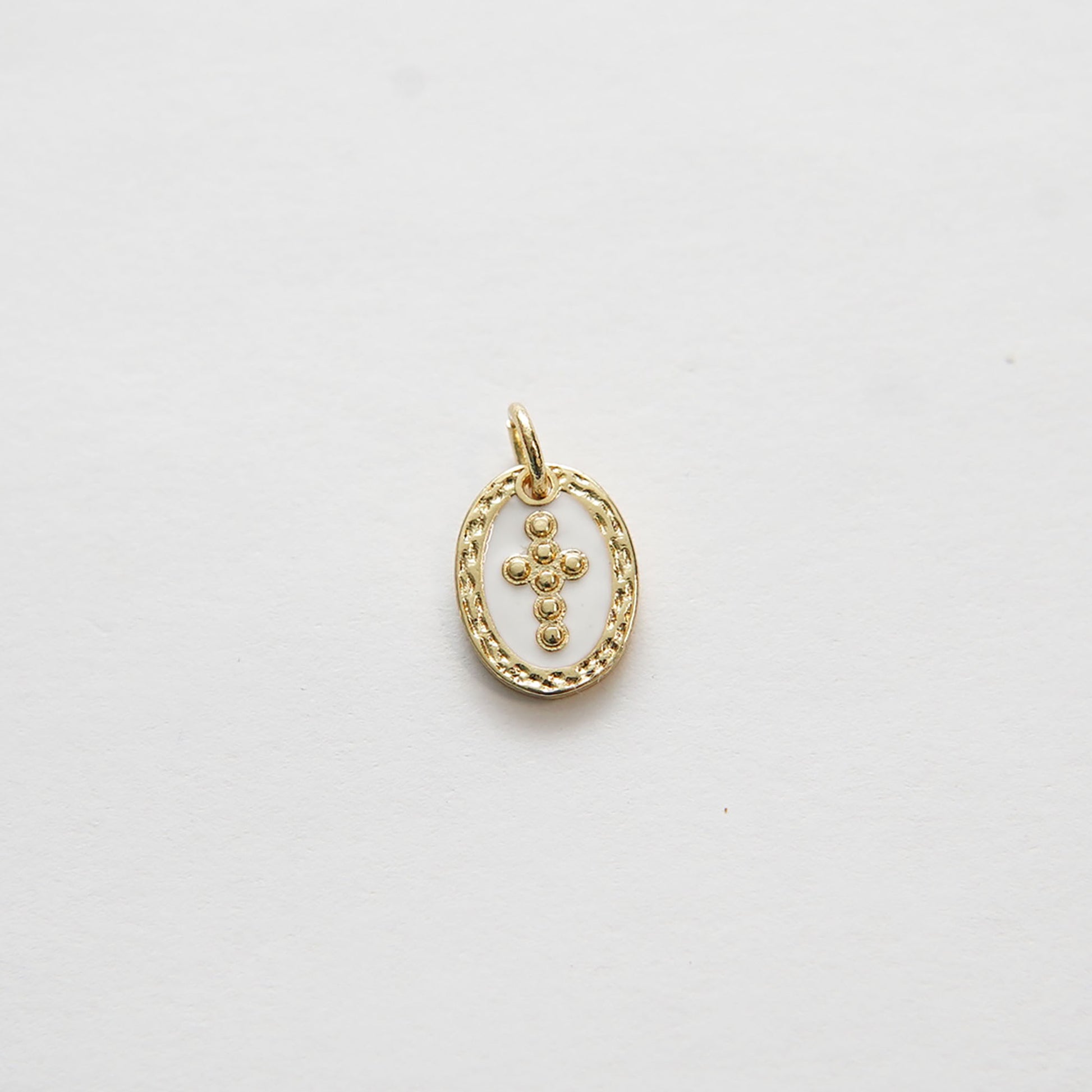 Gold Cross Charms,18K Gold Filled Oval Pendant,Enamel Cross Charms Bracelet Necklace for DIY Jewelry Making Supply