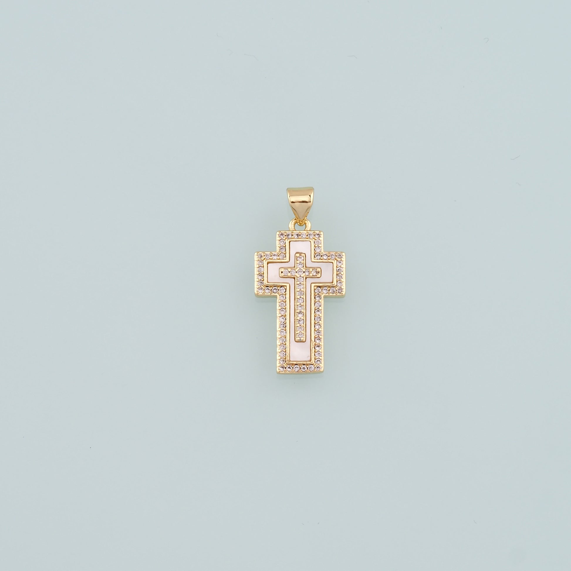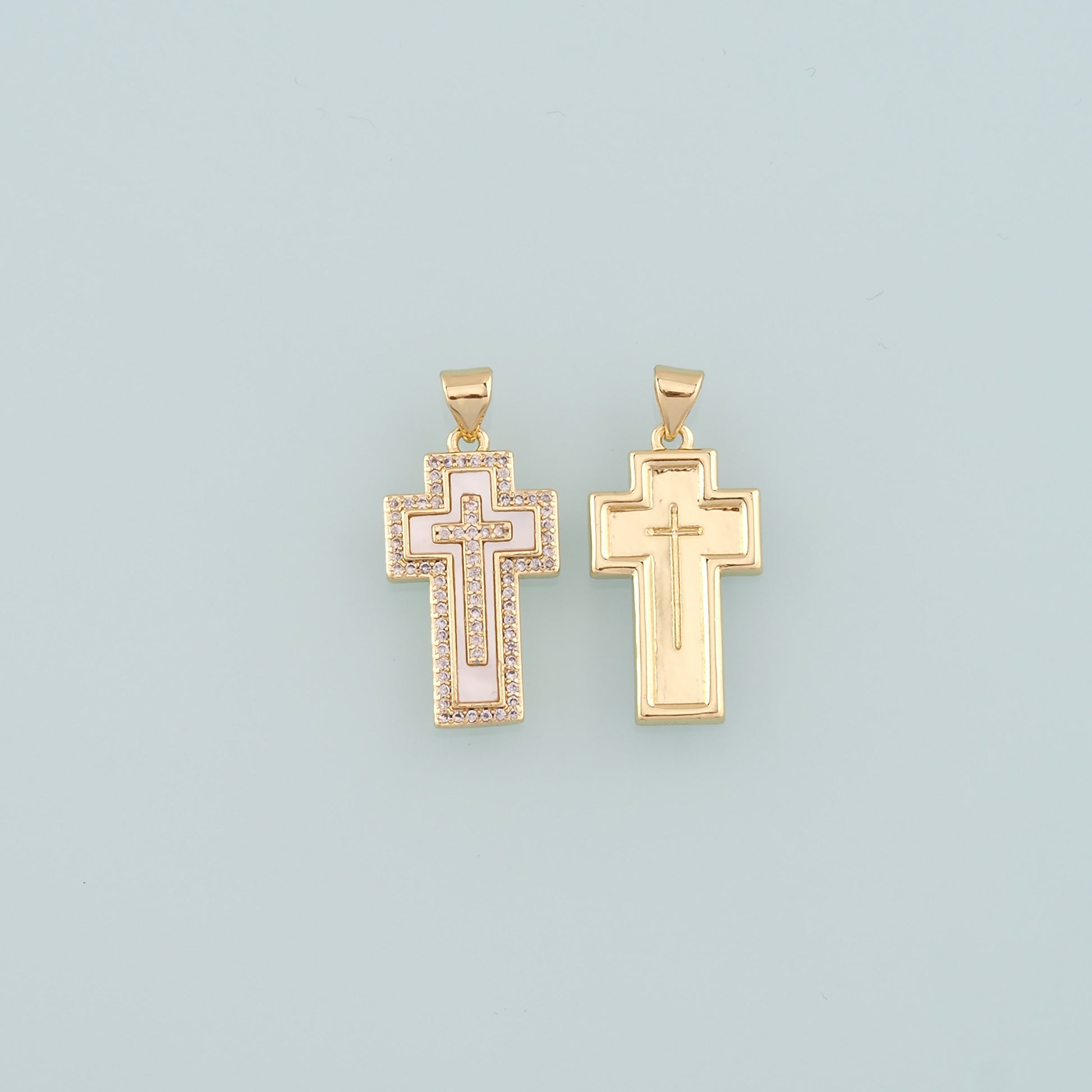 Gold Cross Charms,18K Gold Filled Shell Cross Pendant,CZ Micro Pave Religion Charm Bracelet Necklace for DIY Jewelry Making Supply