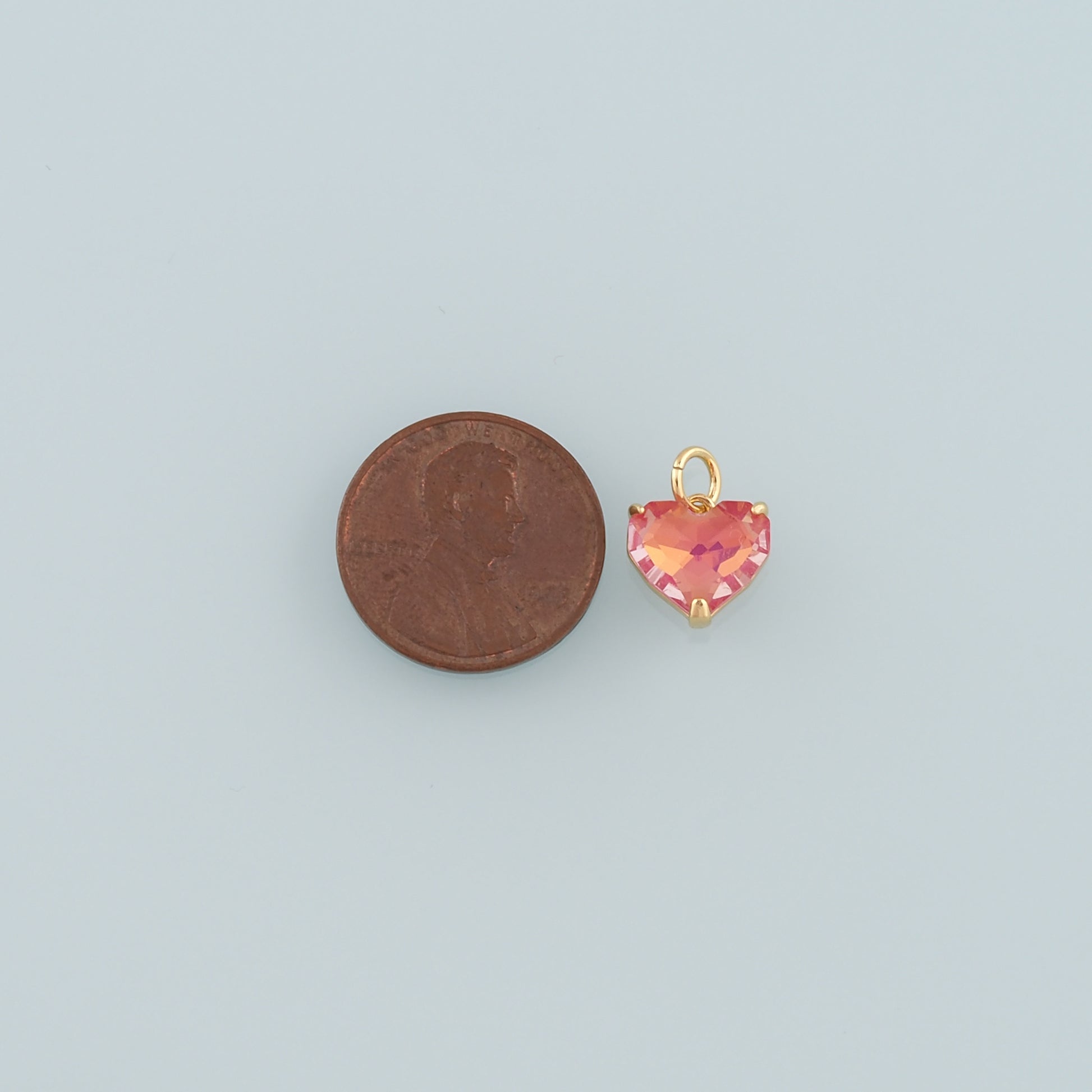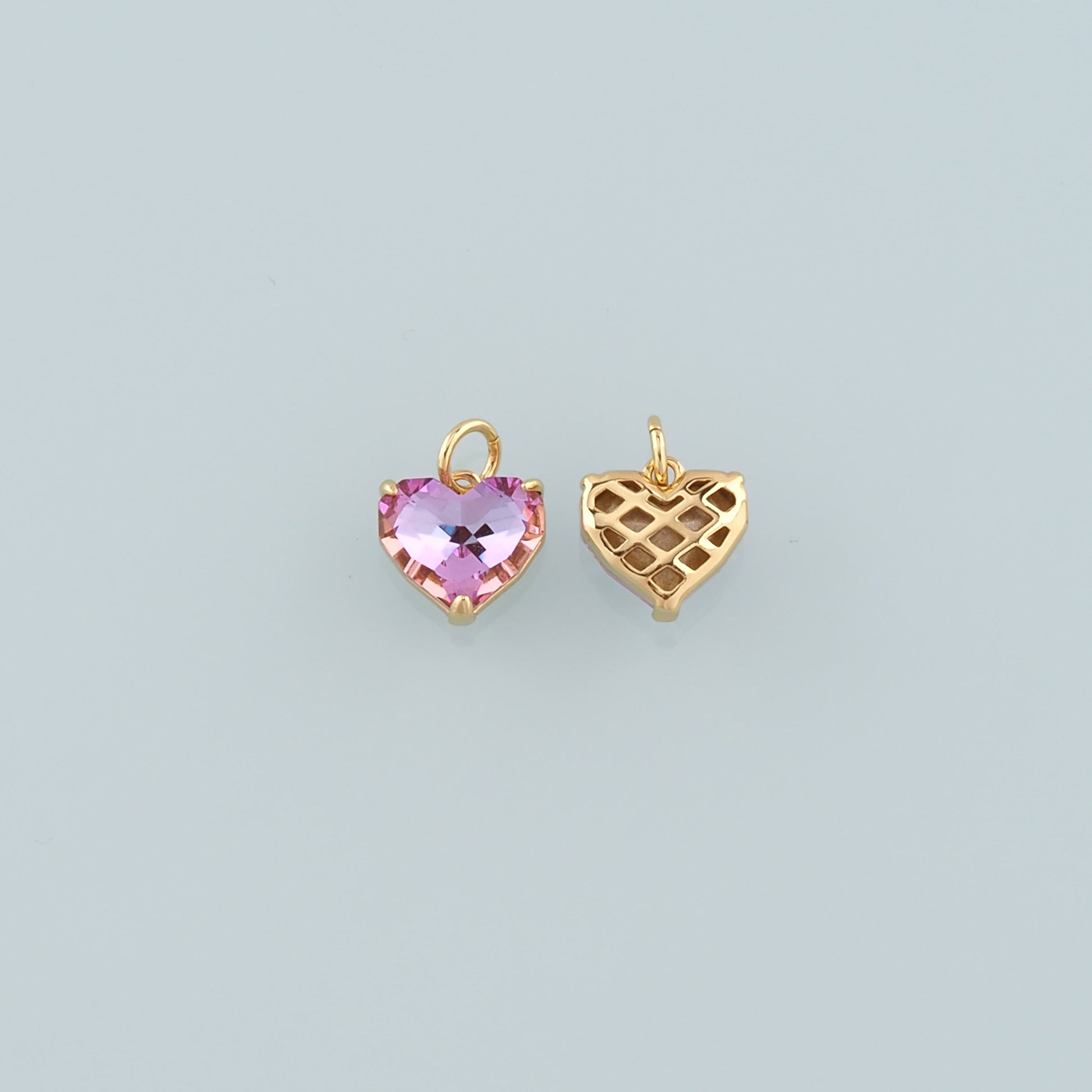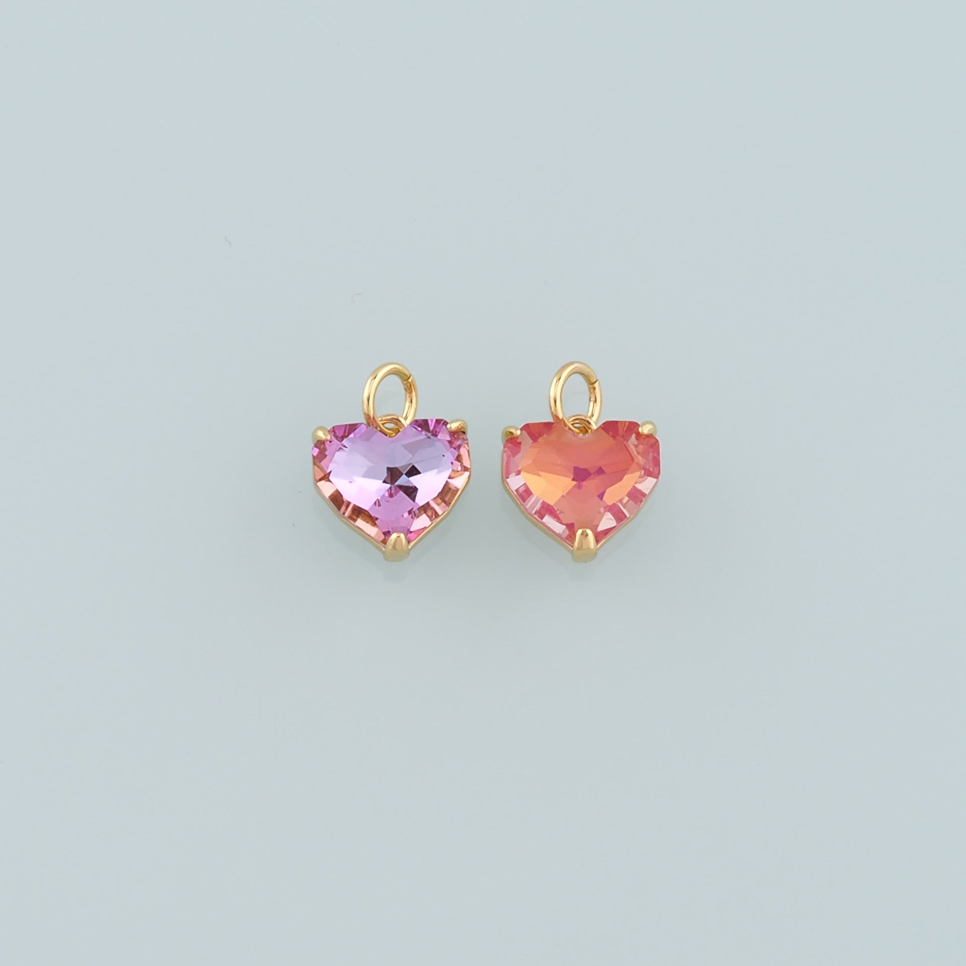 Gold Crystal Charms,18K Gold Filled Heart Pendant,Heart Crystal Charm Bracelet Necklace for DIY Jewelry Making Supply