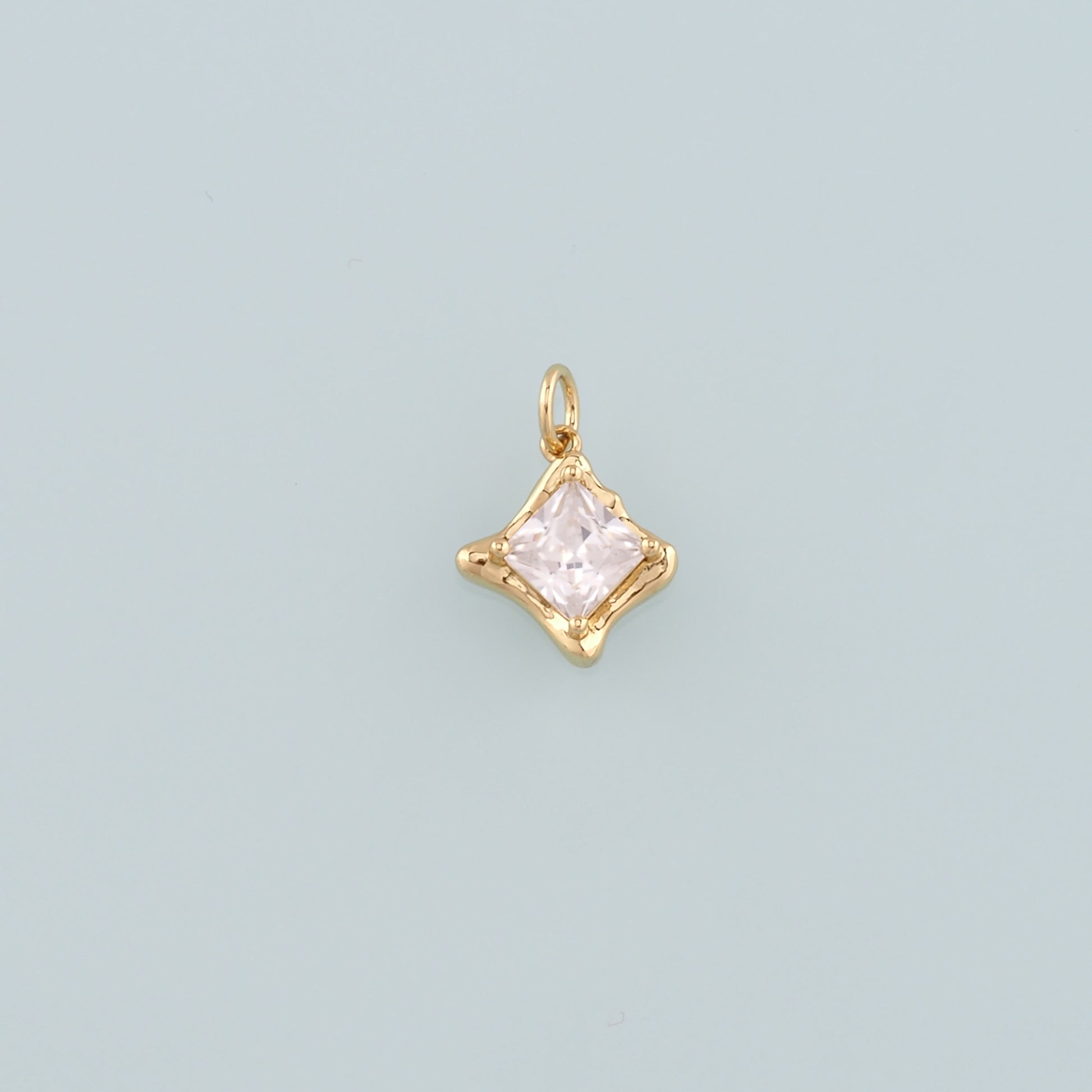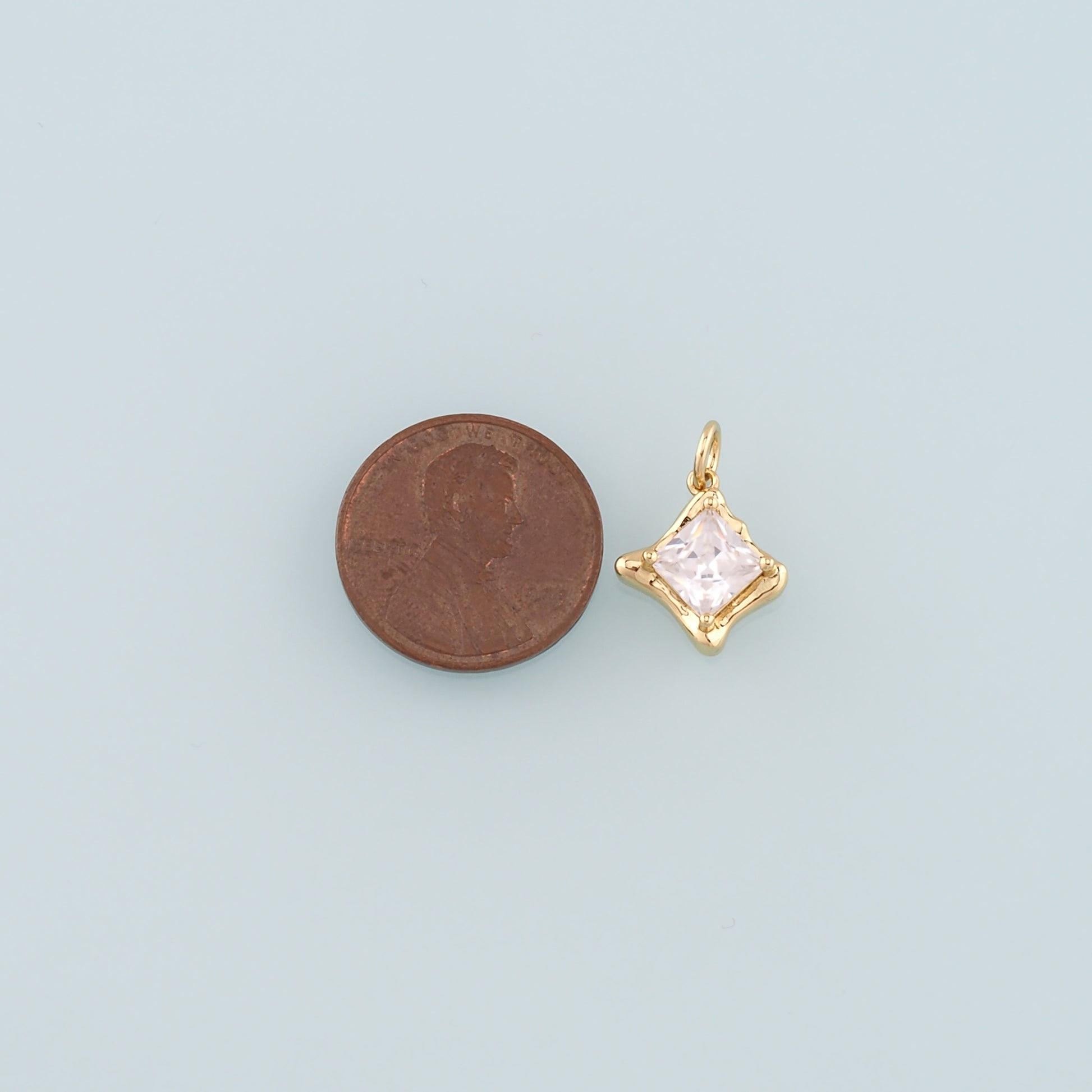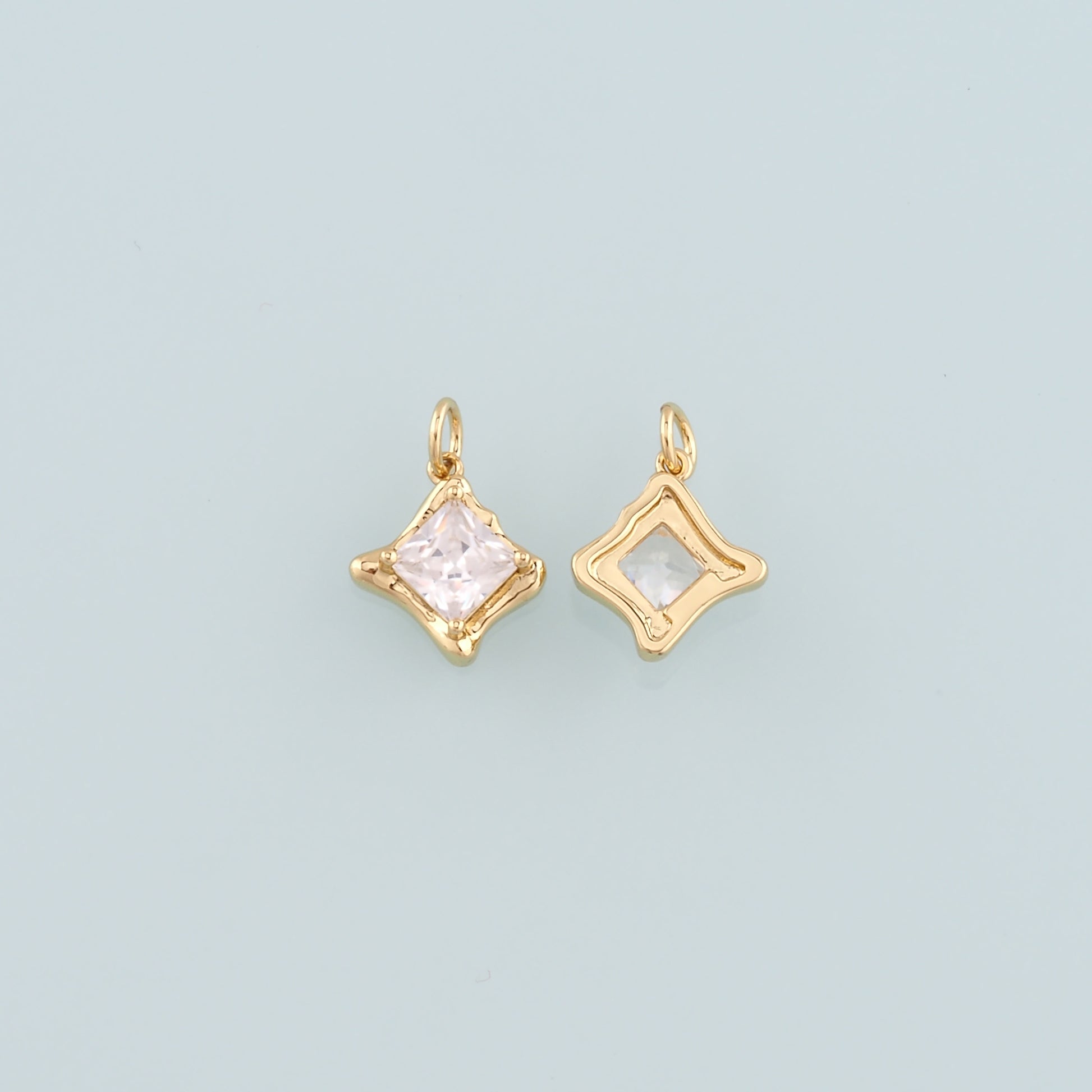 Gold Crystal Charms,18K Gold Filled Rhombus Pendant,Rhombus Crystal Charm Bracelet Necklace for DIY Jewelry Making Supply