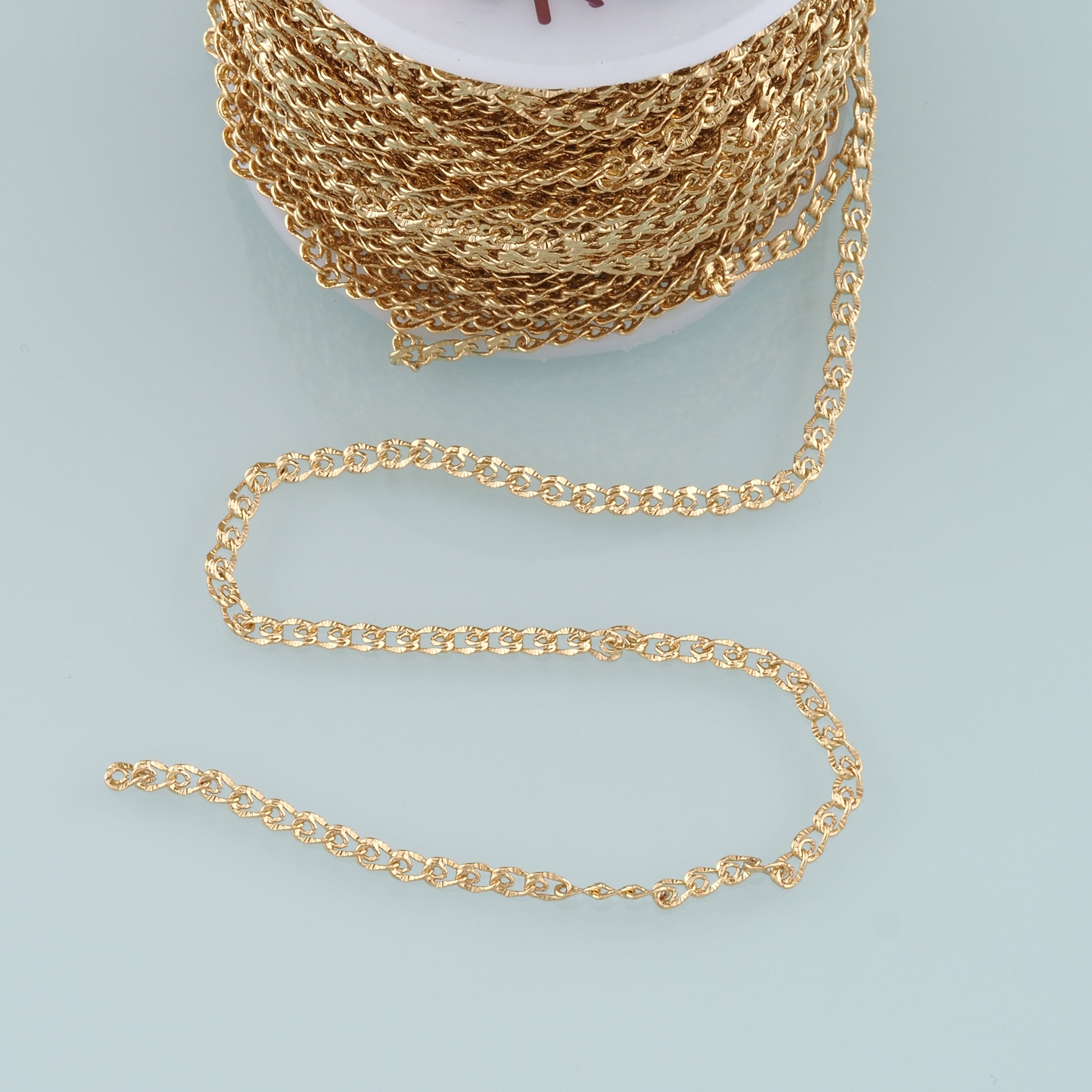 Gold Curb Chain,18K Gold Filled Texture Chain for Necklace Bracelet DIY Jewelry Making Supply