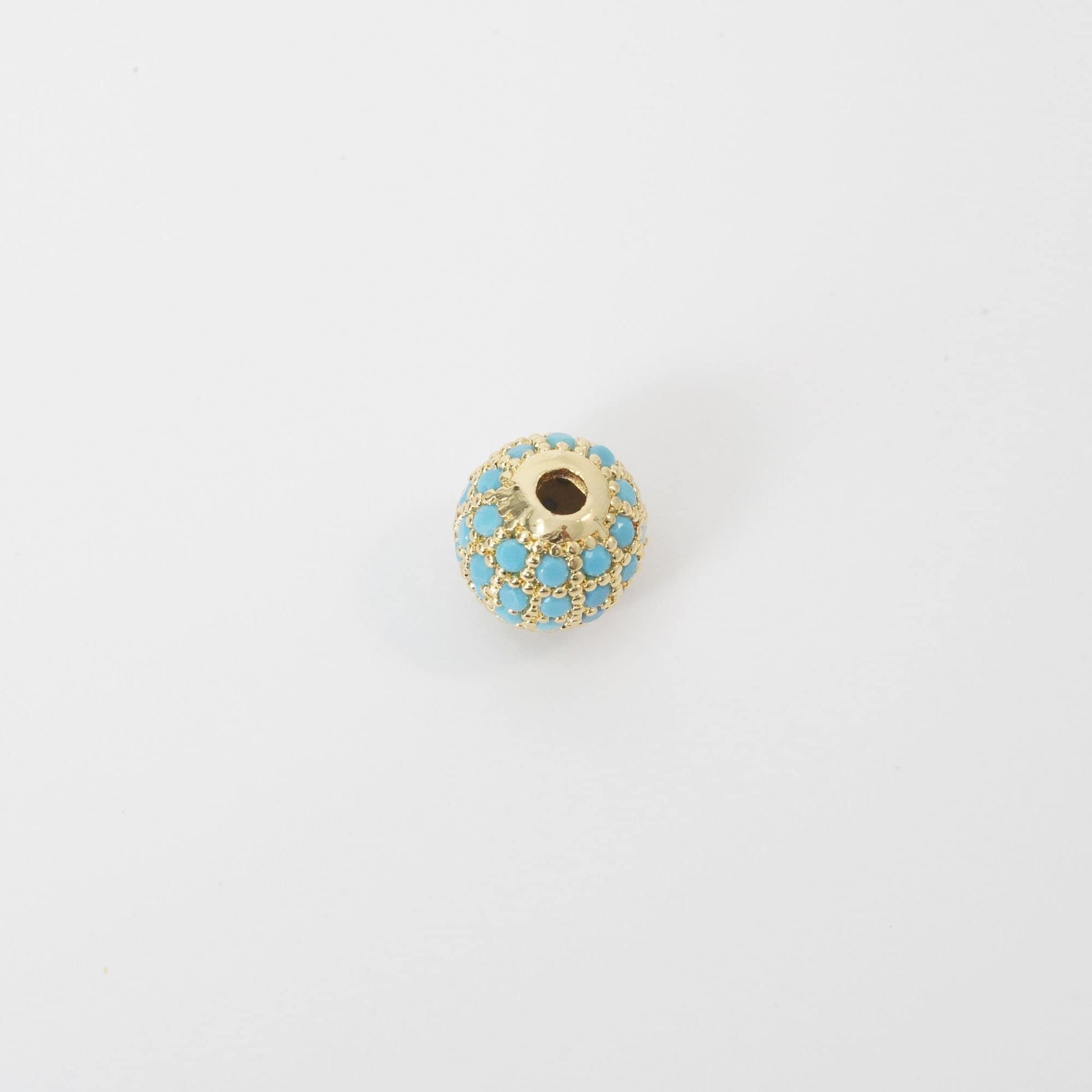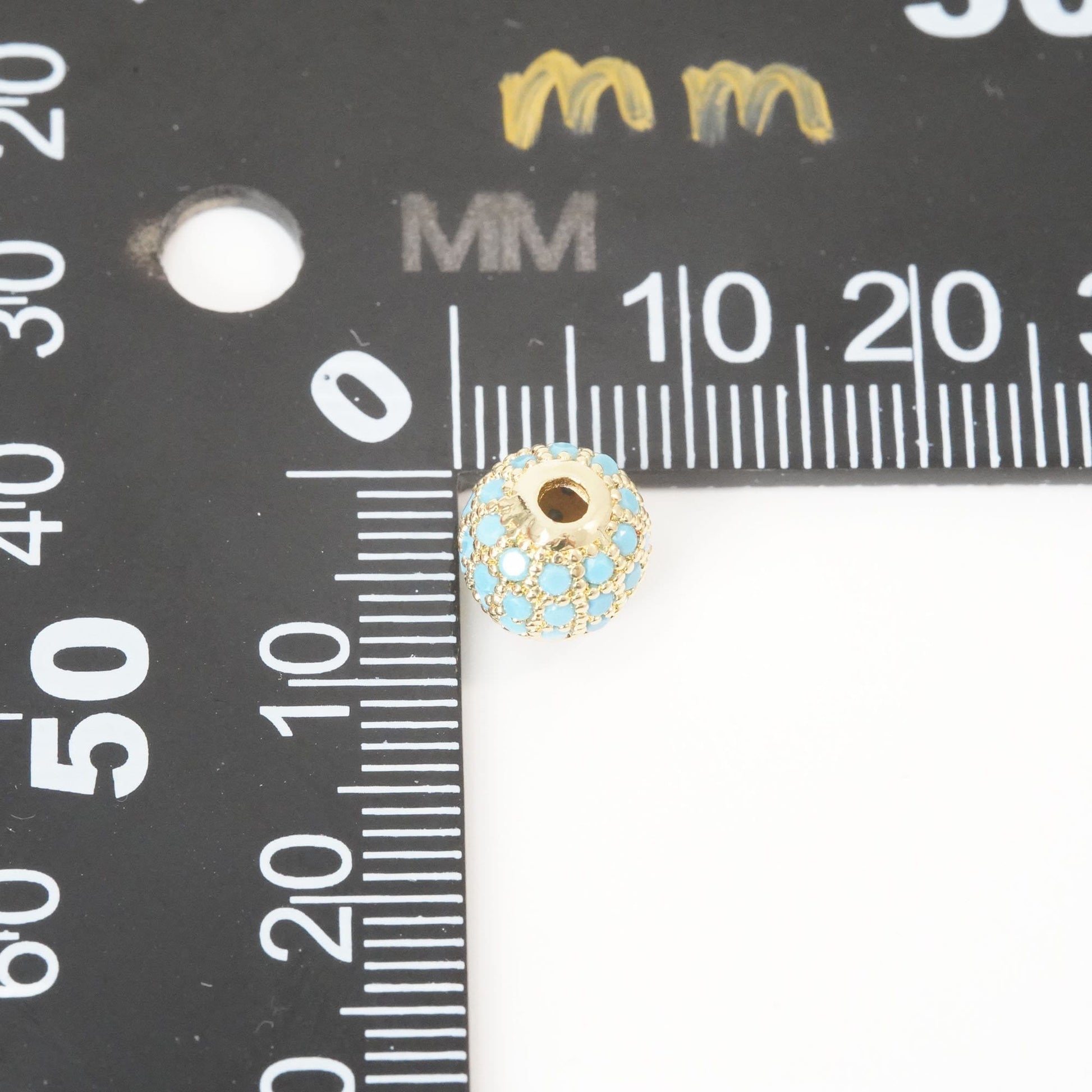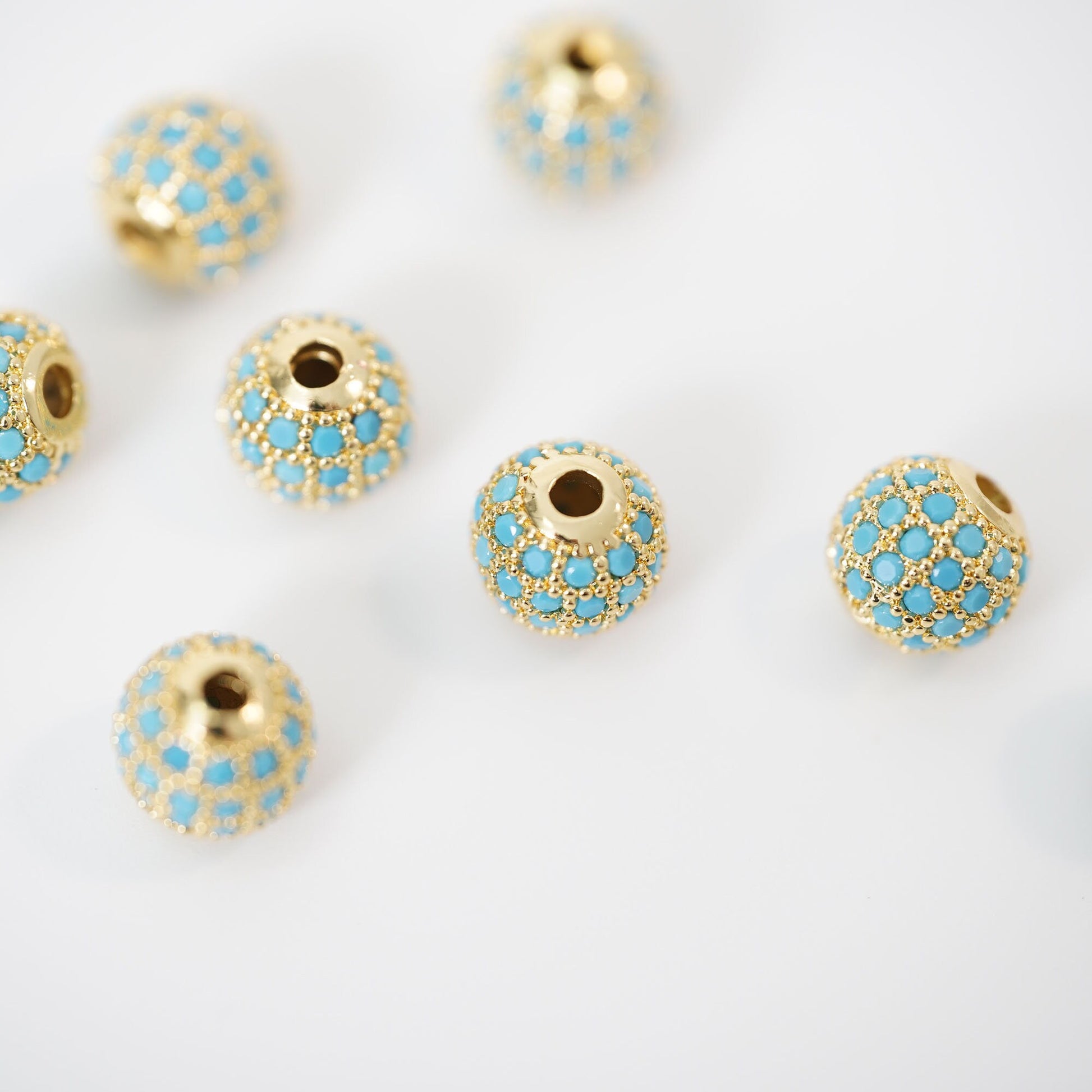 Gold CZ Spacer Beads Charms,18K Gold turquoise Round Beads Bracelet Necklace for DIY Jewelry Making Supply 8mm
