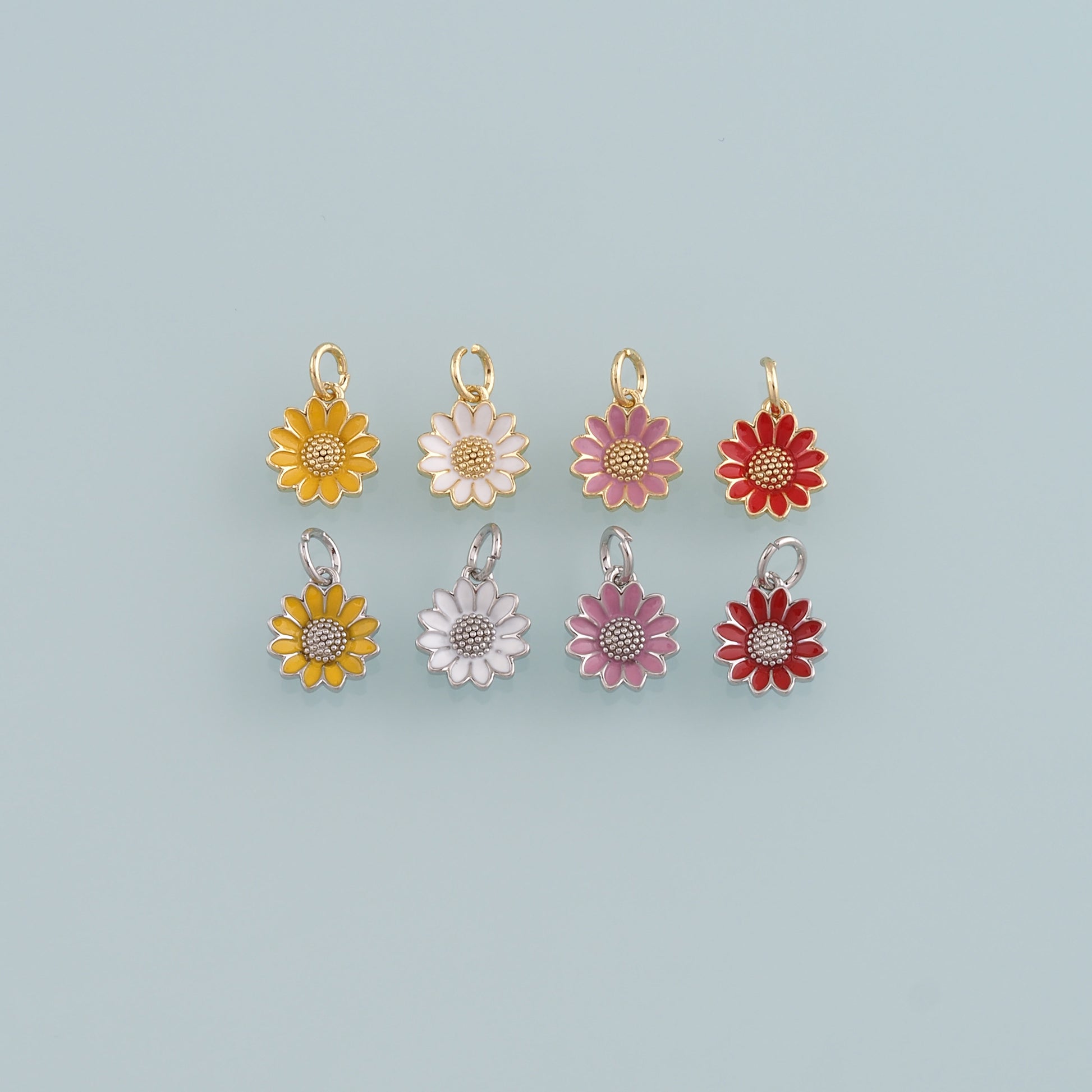 Gold Daisy Charms,18K Gold Filled Daisy Pendant,Enamel Daisy Charm Bracelet Necklace for DIY Jewelry Making Supply
