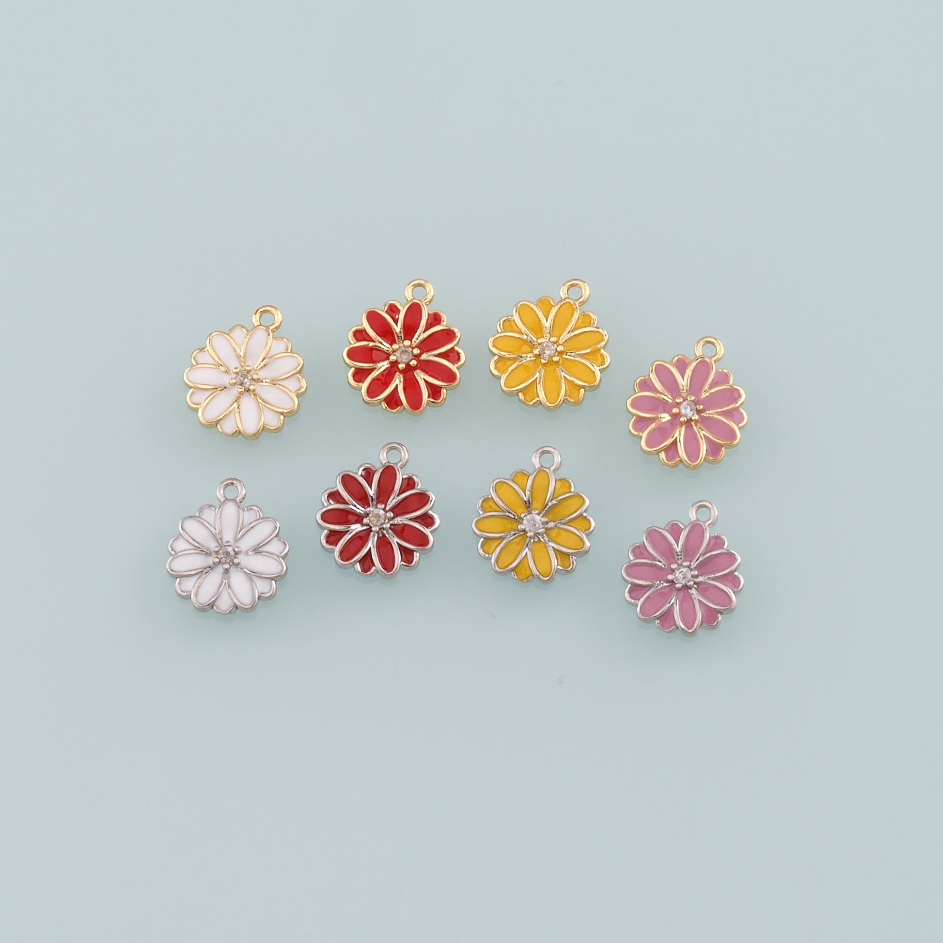 Gold Daisy Charms,18K Gold Filled Daisy Pendant,Enamel Daisy Charm Bracelet Necklace for DIY Jewelry Making Supply