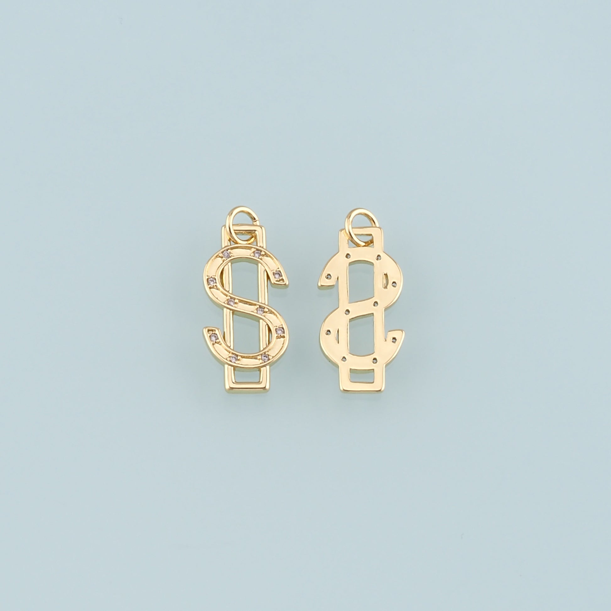 Gold Dollar Charms,18K Gold Filled Money Pendant,CZ Micro Pave Dollar Charm Bracelet Necklace for DIY Jewelry Making Supply