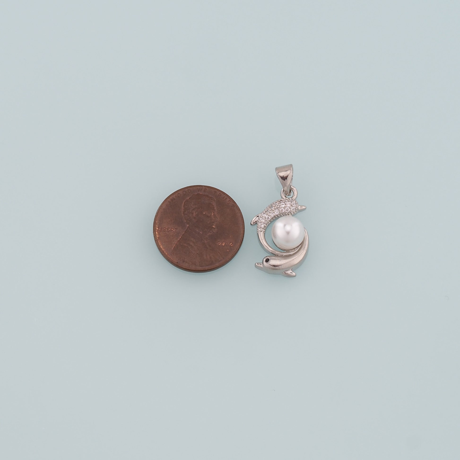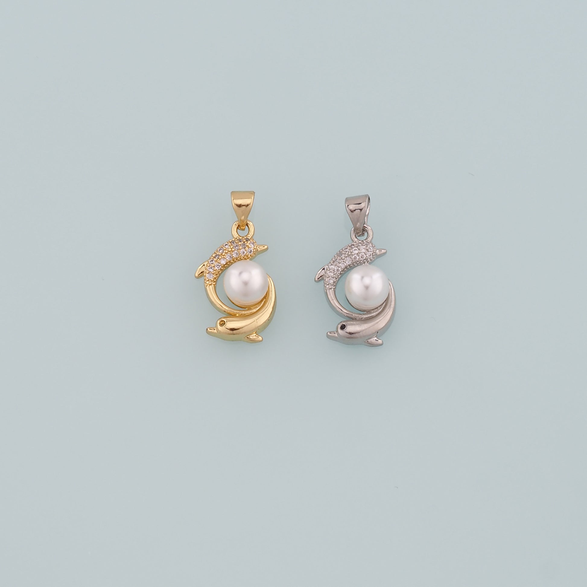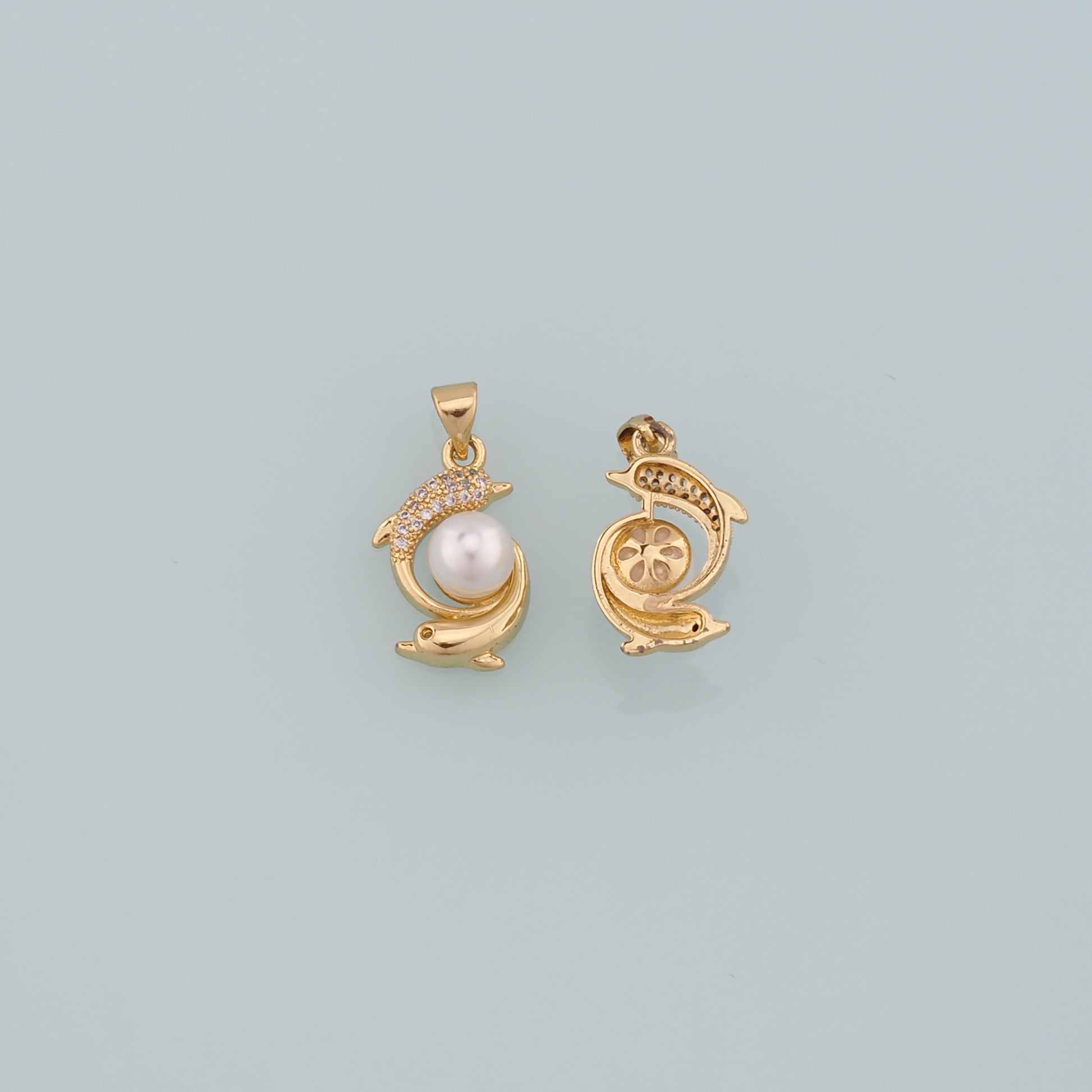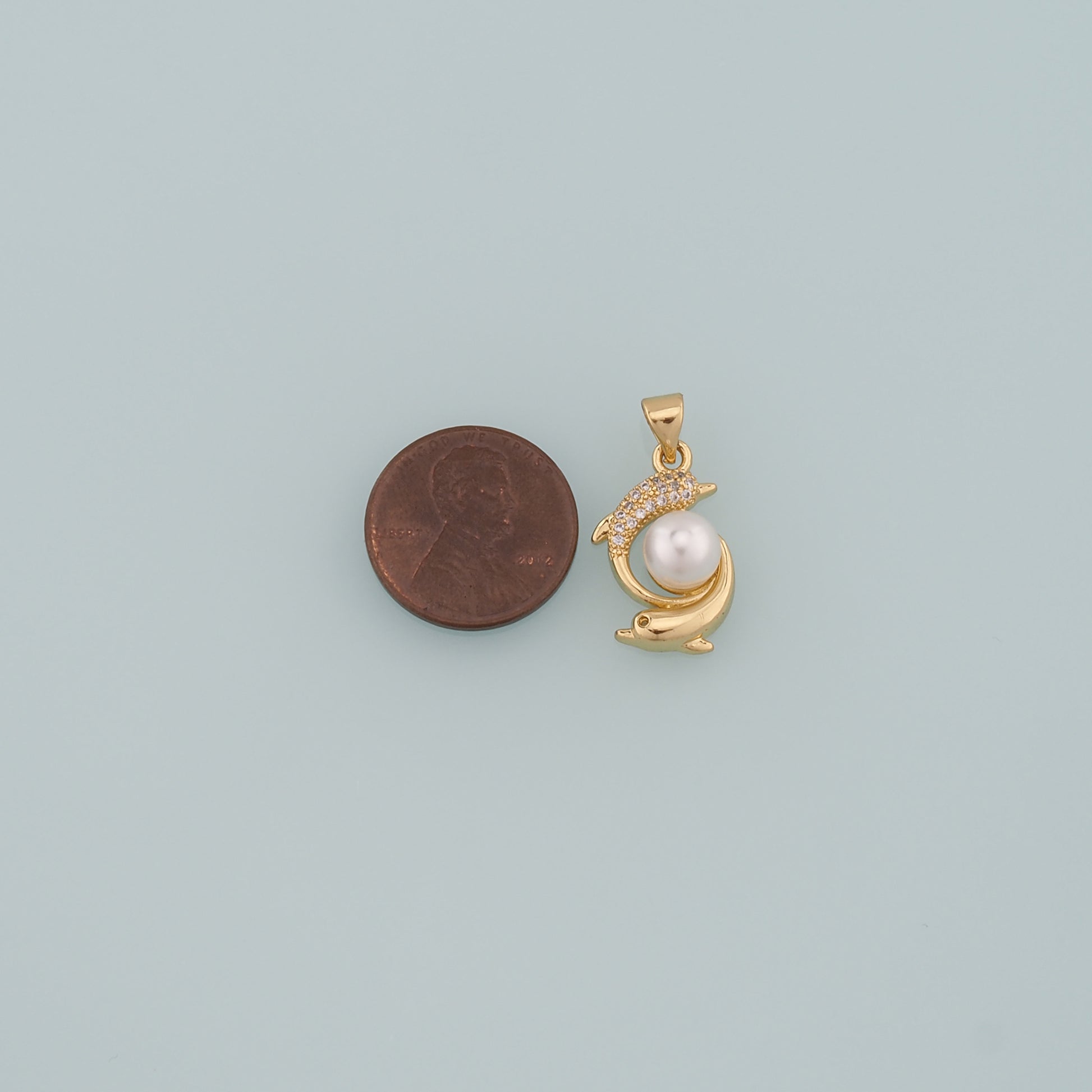 Gold Dolphin Charms,18K Gold Filled Pearl Dolphin Pendant,CZ Micro Pave Ocean Charm Bracelet Necklace for DIY Jewelry Making Supply