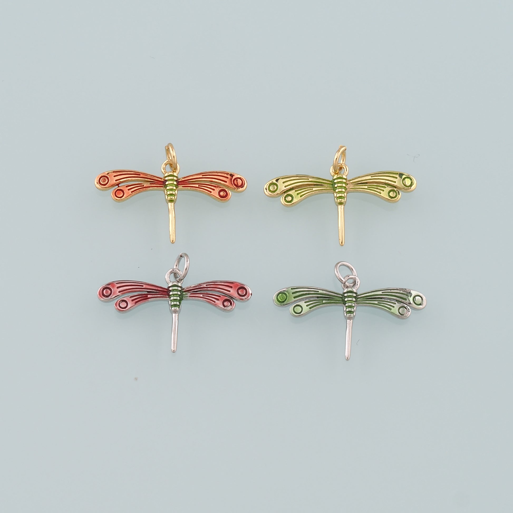 Gold Dragonfly Charms,18K Gold Filled Dragonfly Pendant,Enamel Dragonfly Charm Bracelet Necklace for DIY Jewelry Making Supply