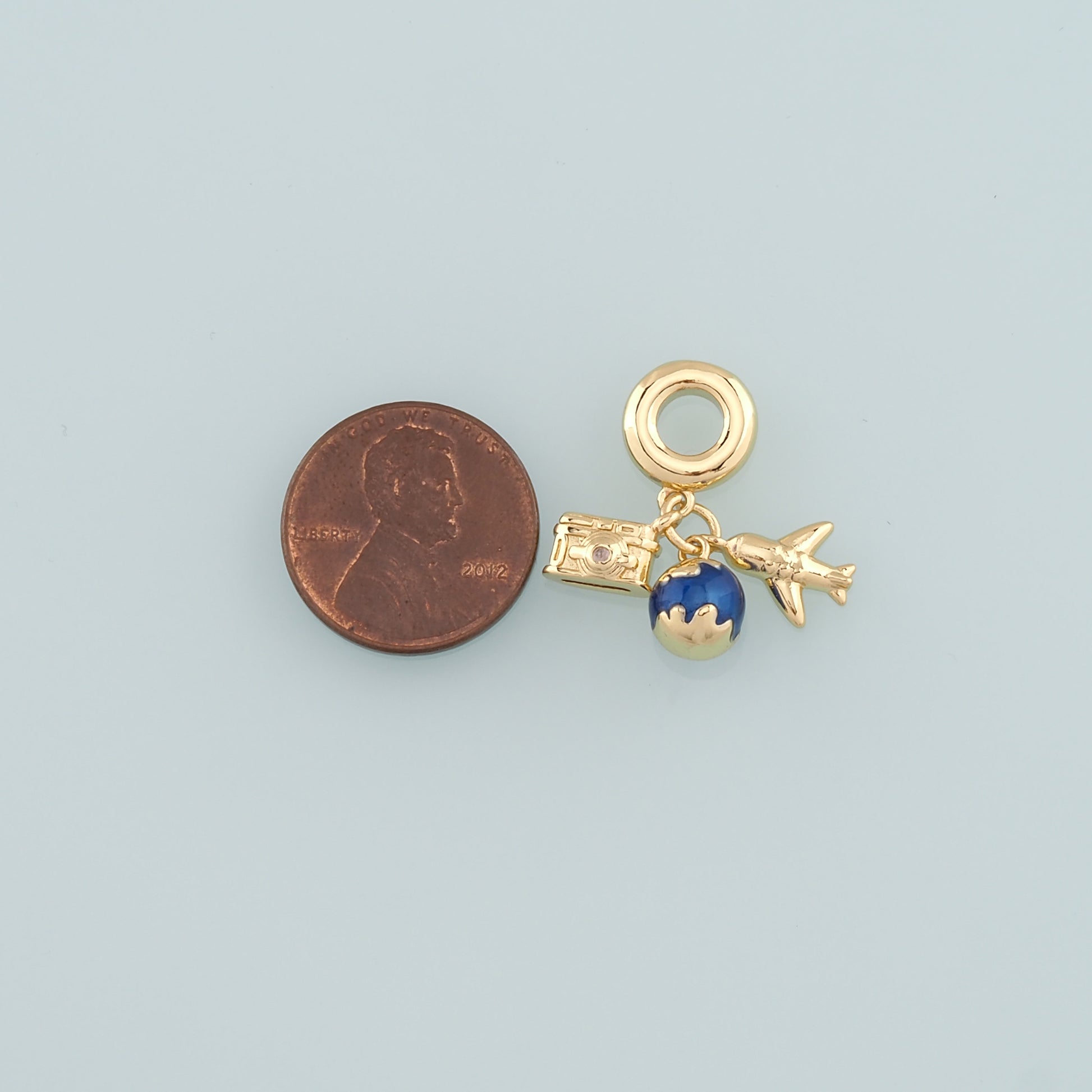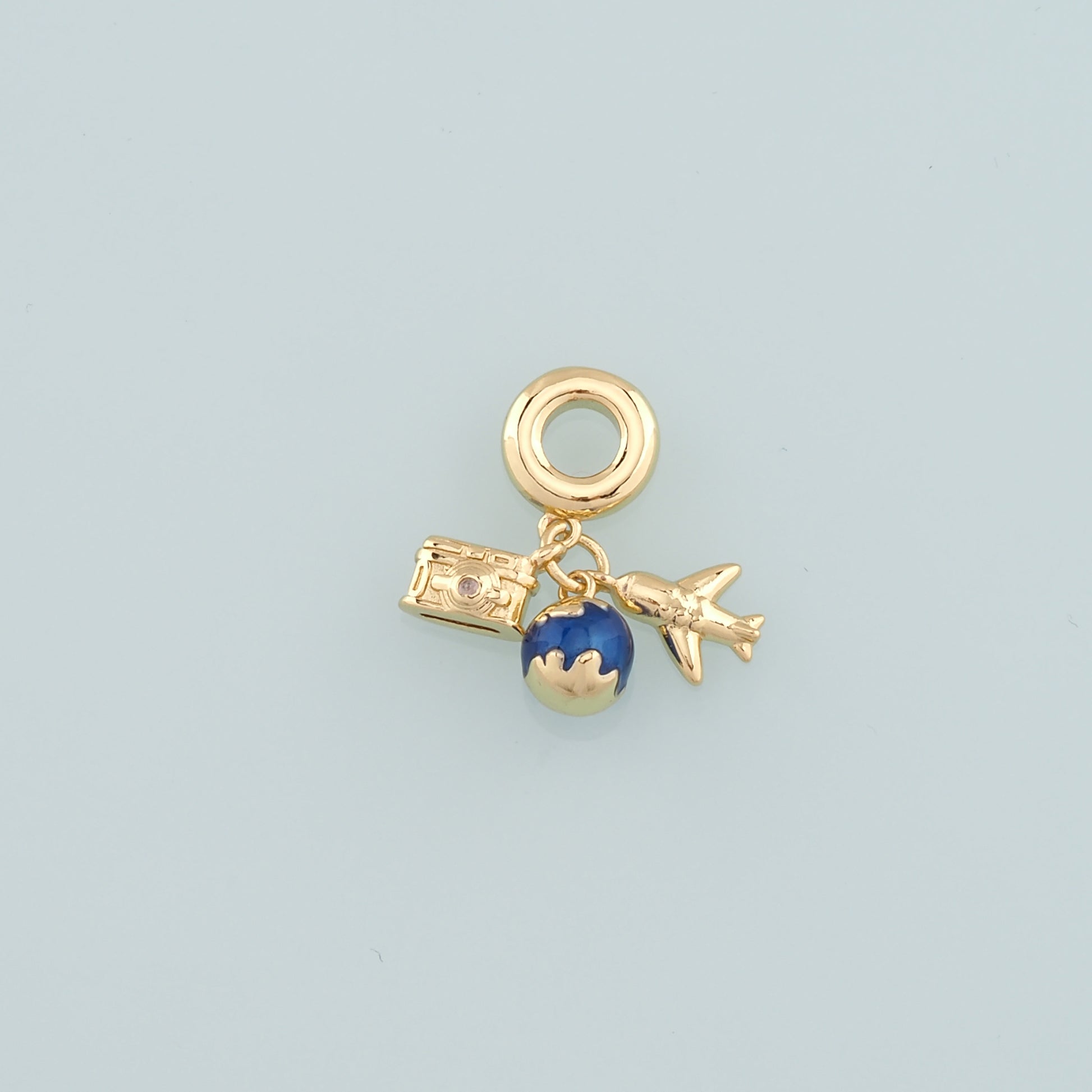 Gold Earth Charm,18K Gold Filled Airplane Pendant,Enamel Camera Charm Bracelet Necklace for DIY Jewelry Making Supply