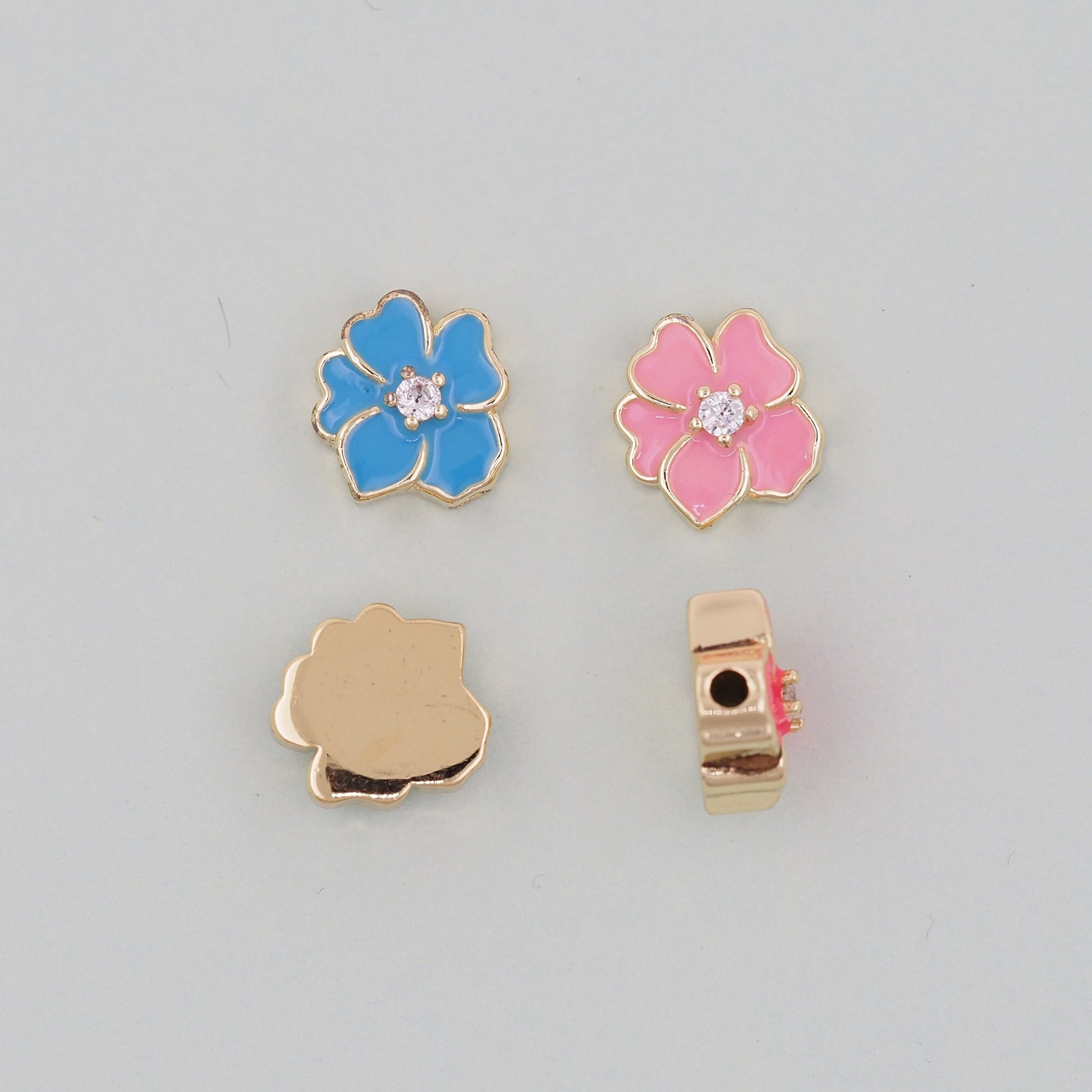 Gold enamel flower Charms,18K Gold Filled flower Pendant,Silver flower Charm Bracelet Necklace for DIY Jewelry Making Supply