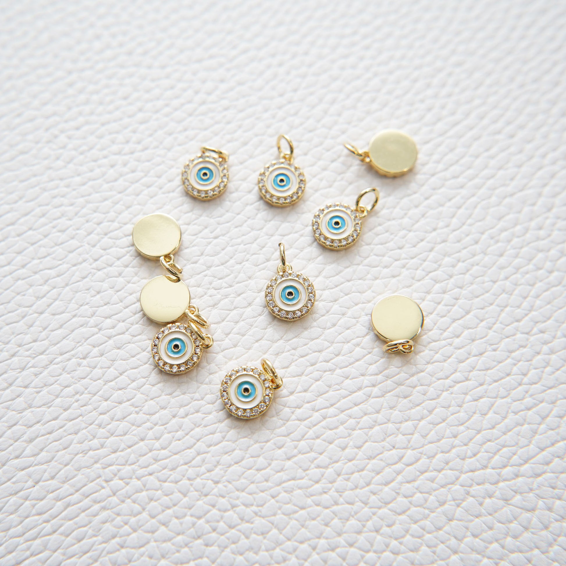 Gold Evil Eye Charms,18K Gold Filled Round Evil Eye Pendant,CZ Micro Pave Silver Evil Eye Charm Bracelet Necklace for DIY Jewelry Making Supply