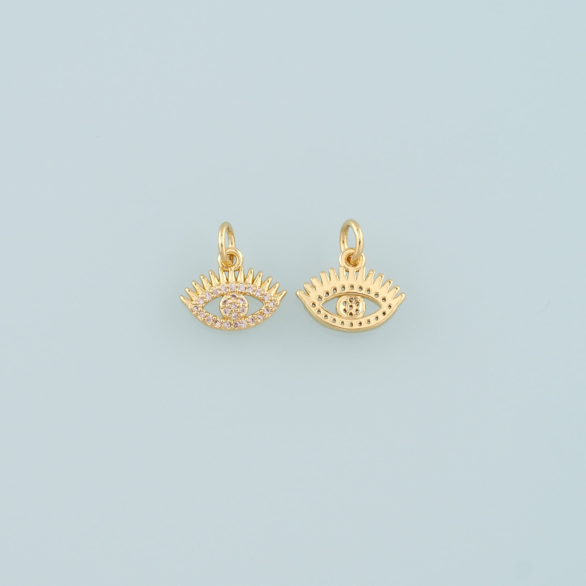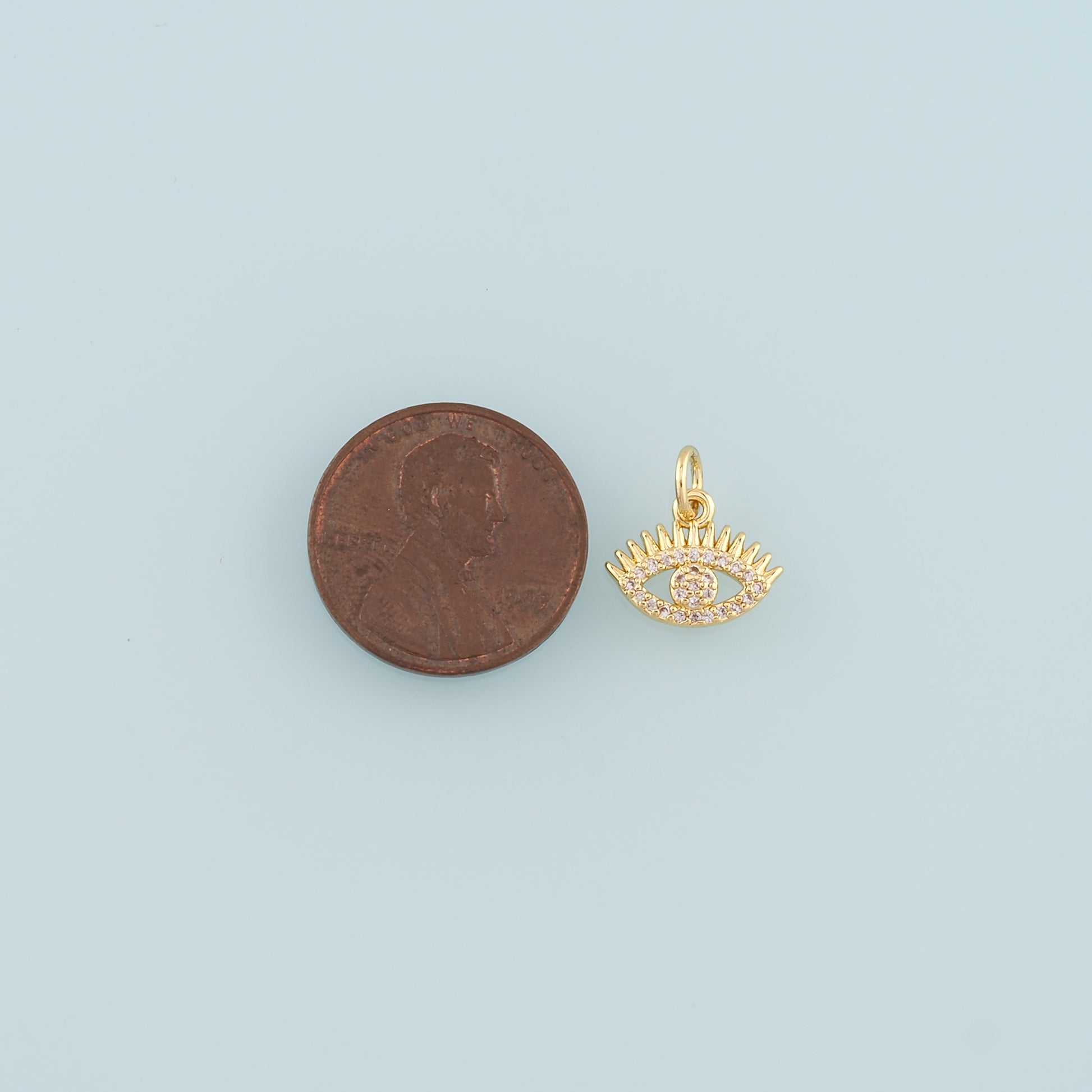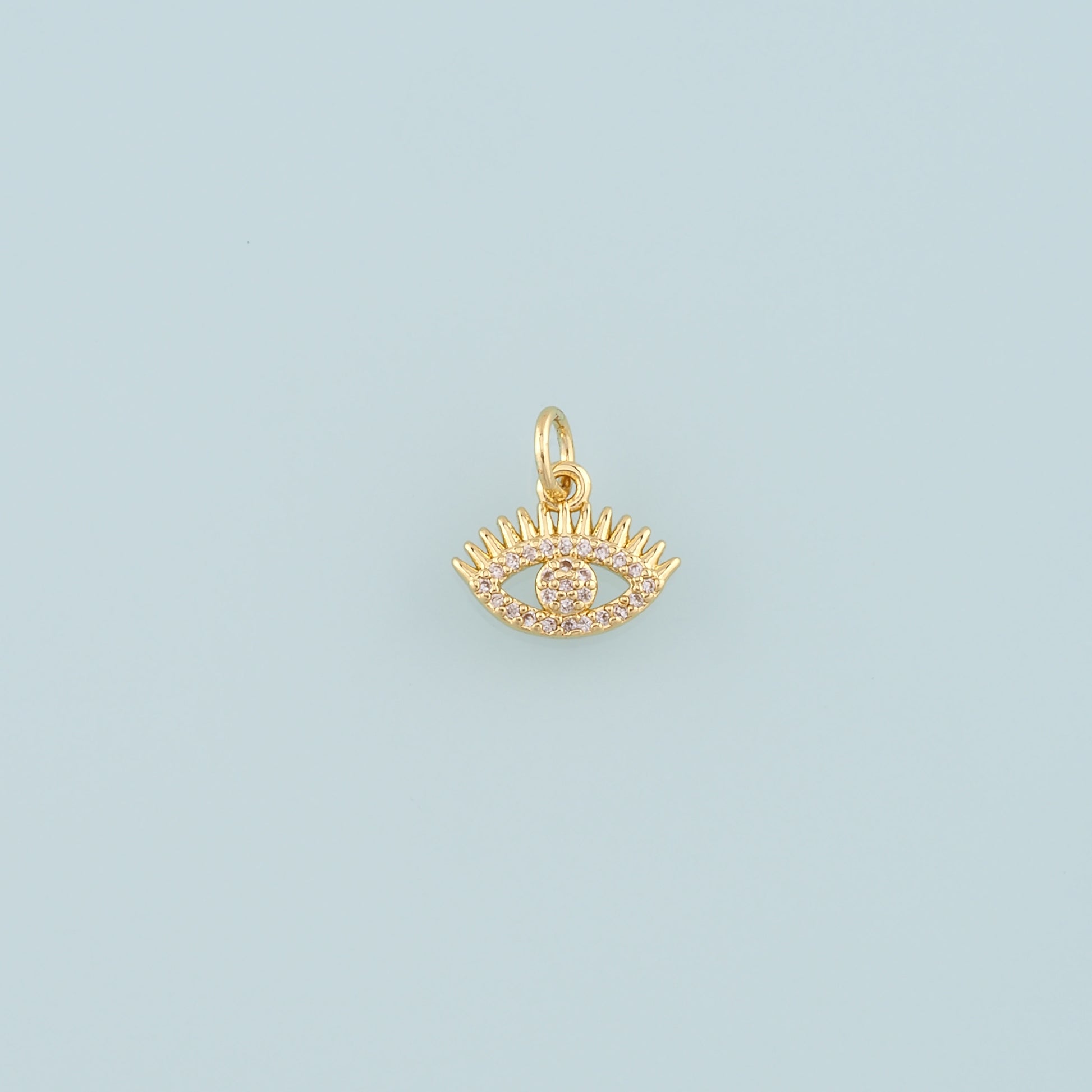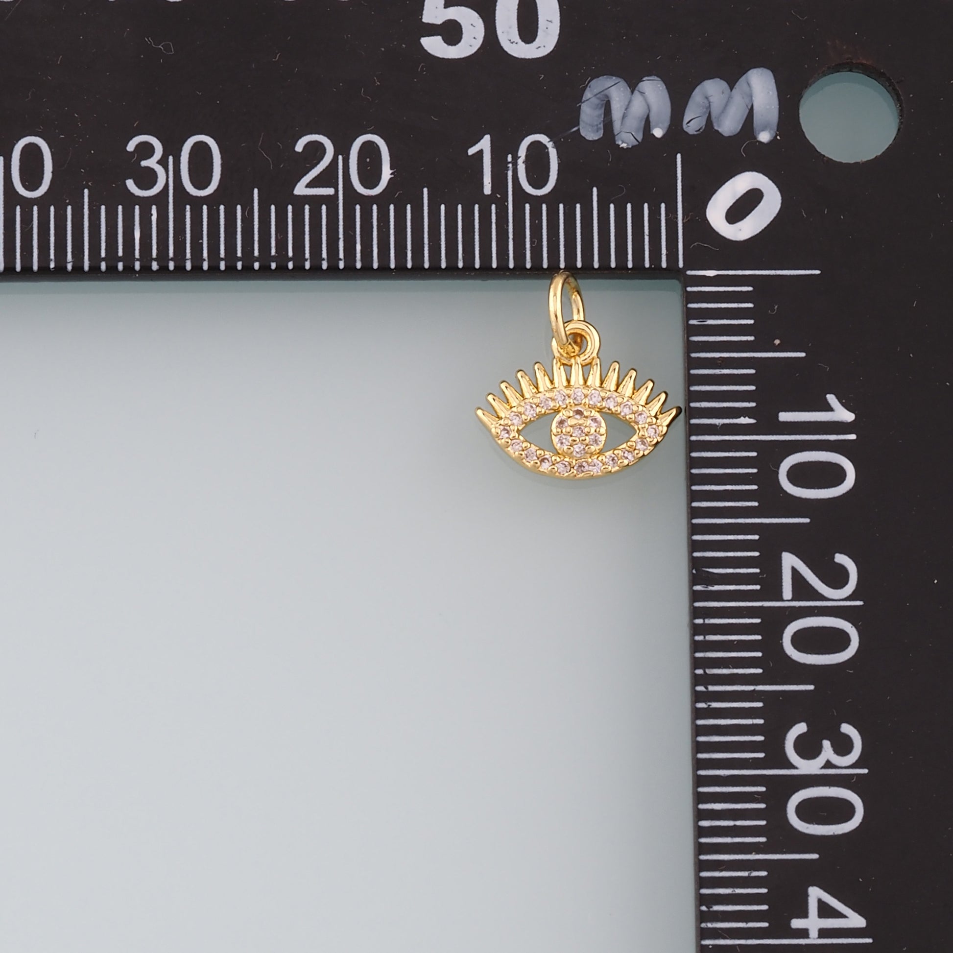 Gold Eye Charm,18K Gold Filled Evil Eye Pendant,CZ Micro Pave Eyelash Charm Bracelet Necklace for DIY Jewelry Making Supply