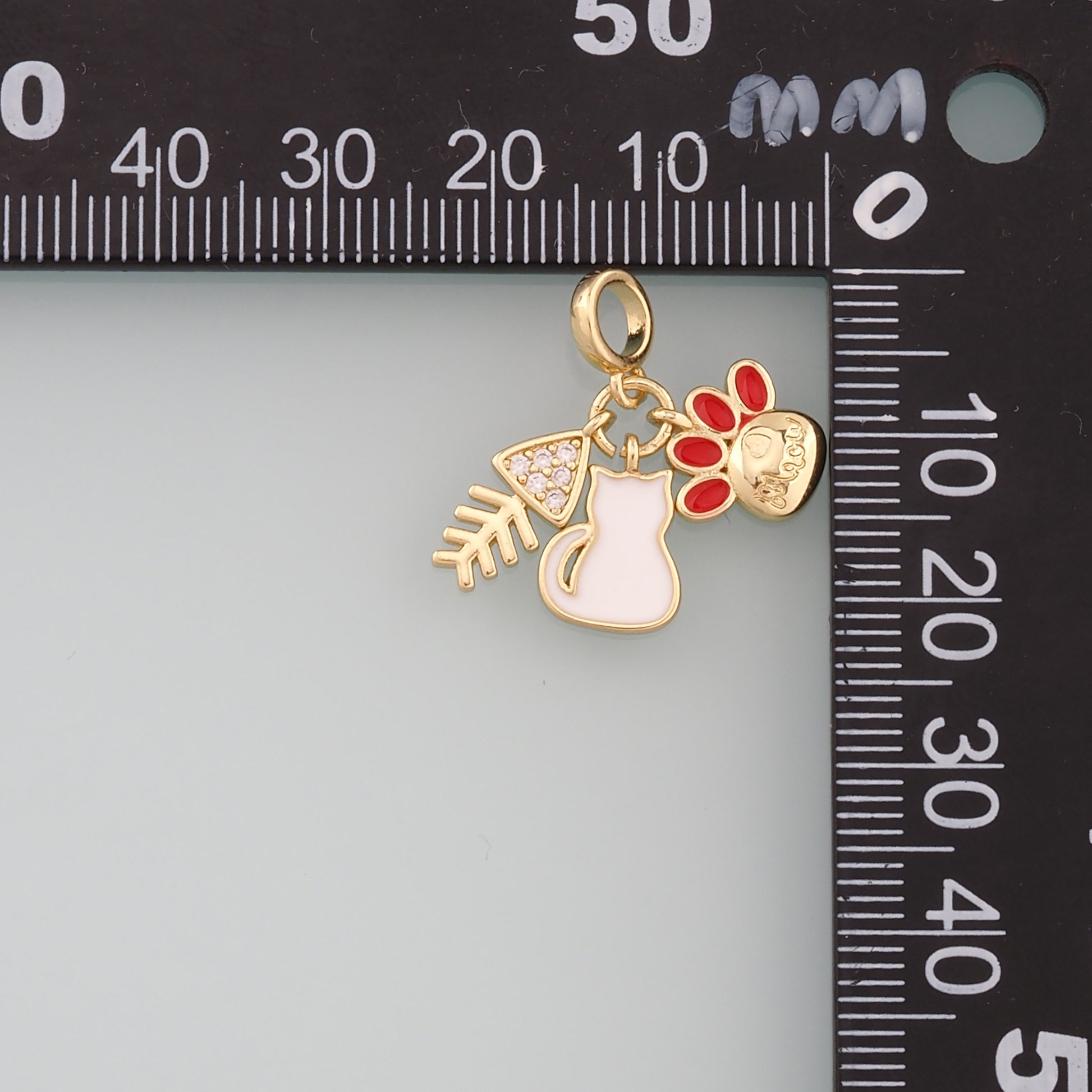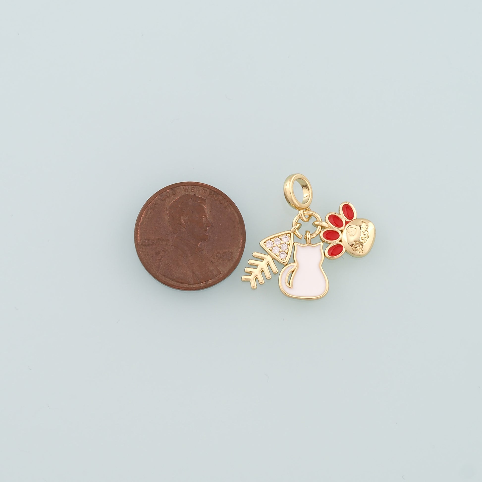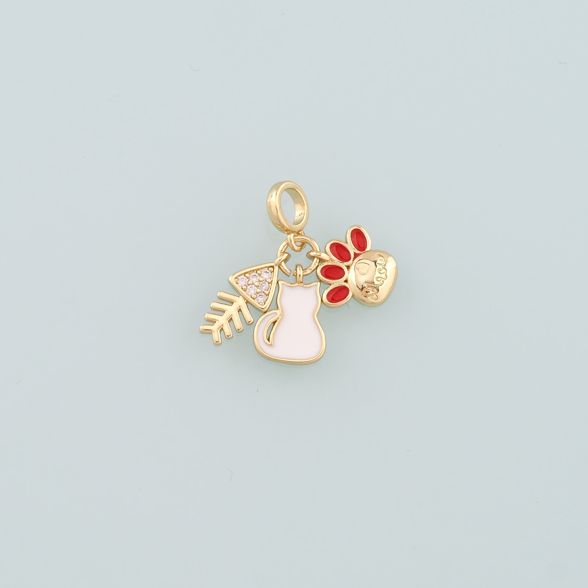 Gold Fish Charms,18K Gold Filled Cat Pendant,Enamel Cat Paw Charm Bracelet Necklace for DIY Jewelry Making Supply