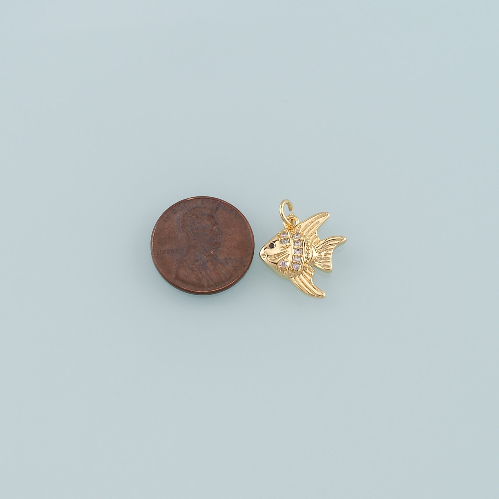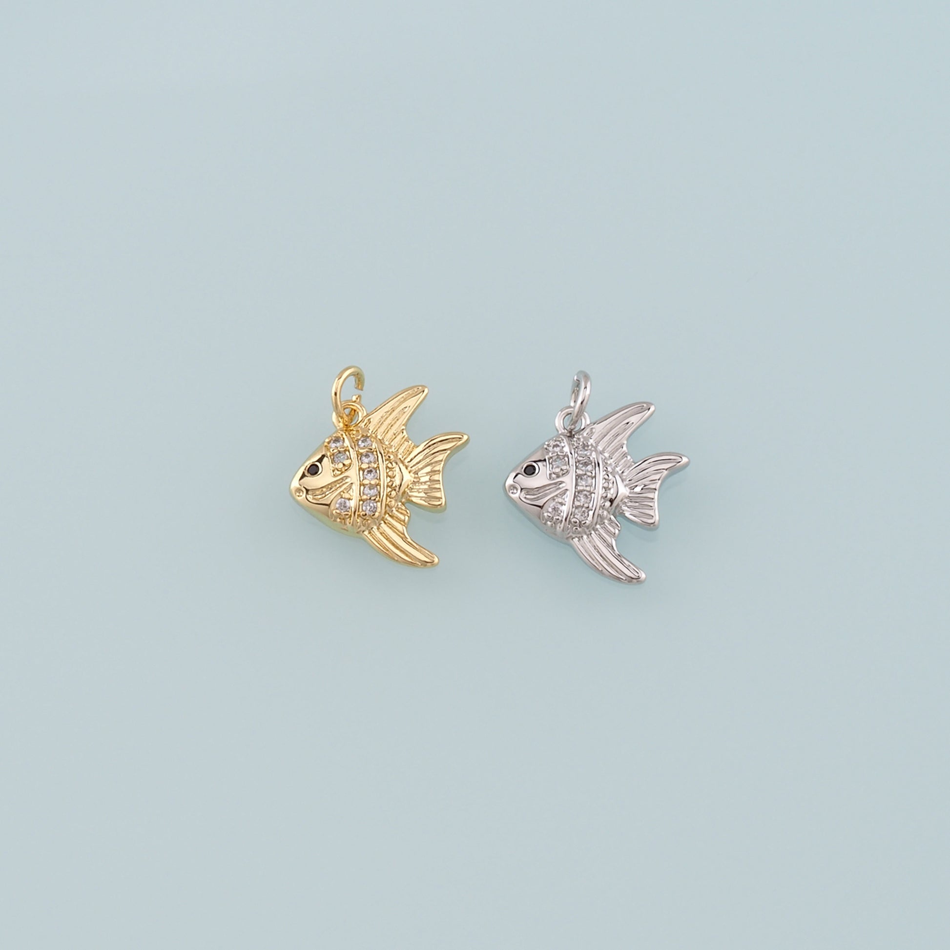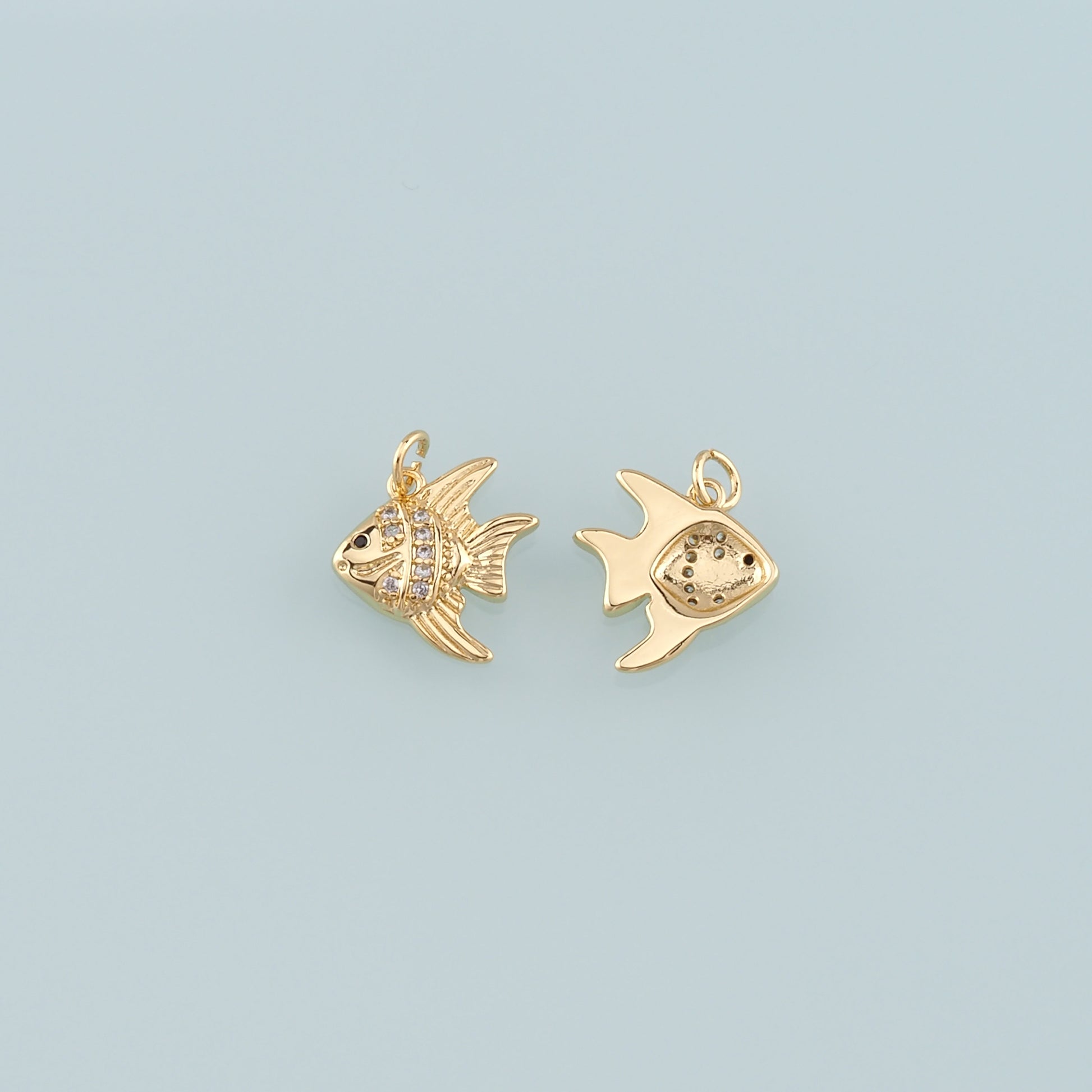 Gold Fish Charms,18K Gold Filled Fish Pendant,CZ Micro Pave Ocean Charm Bracelet Necklace for DIY Jewelry Making Supply