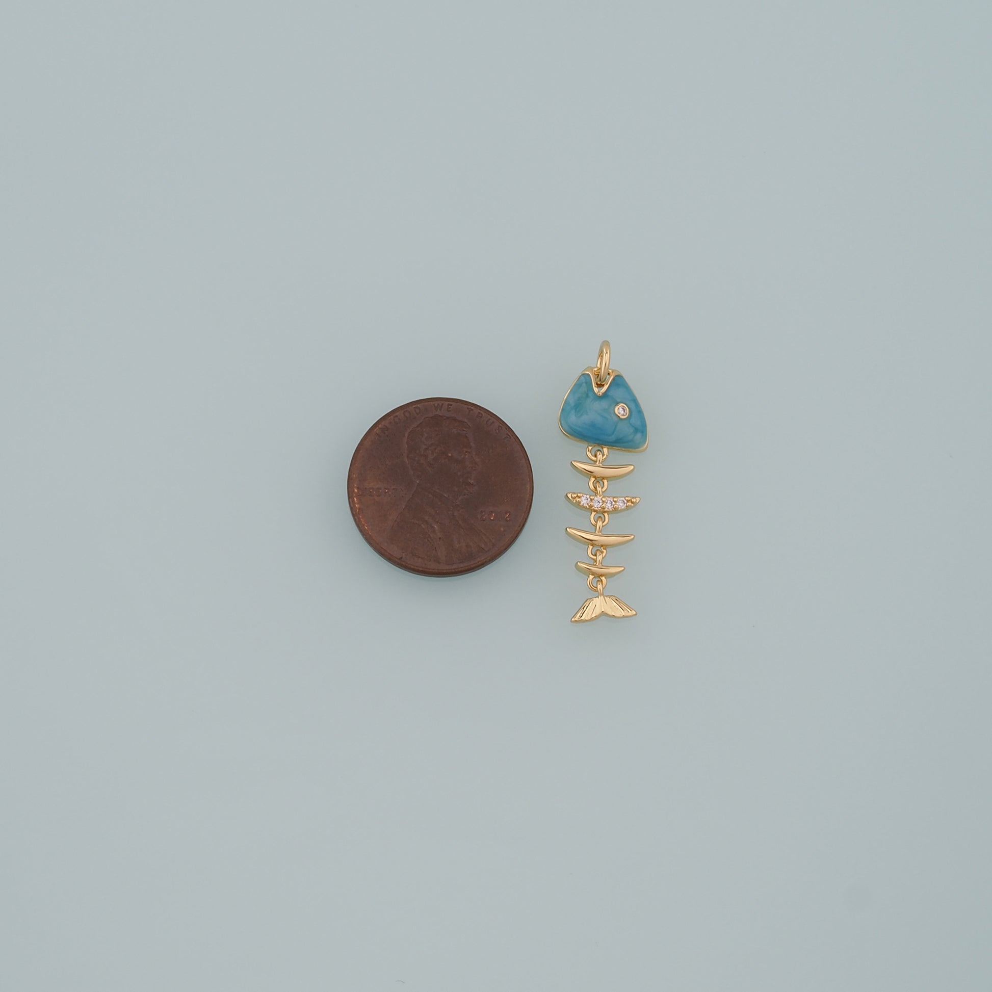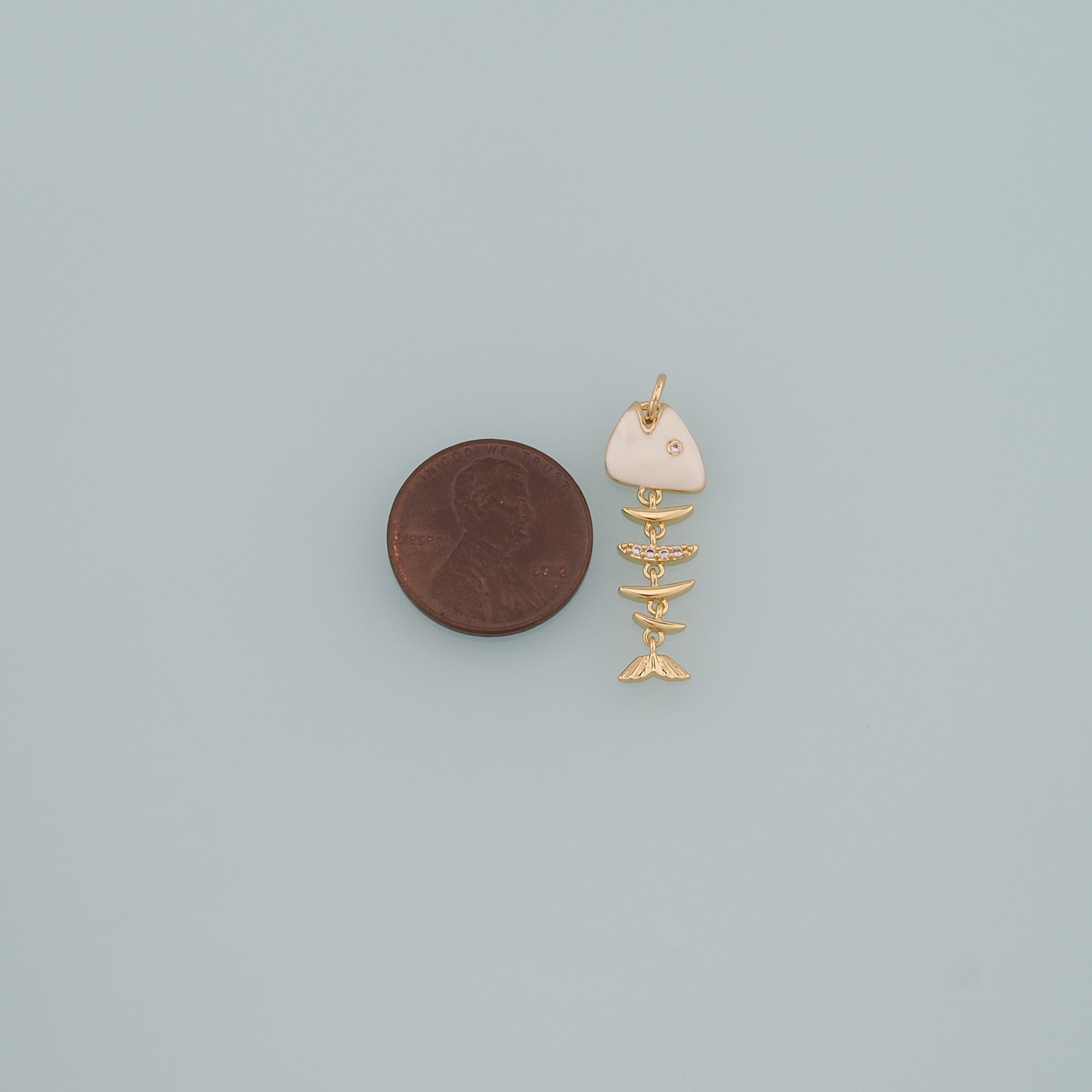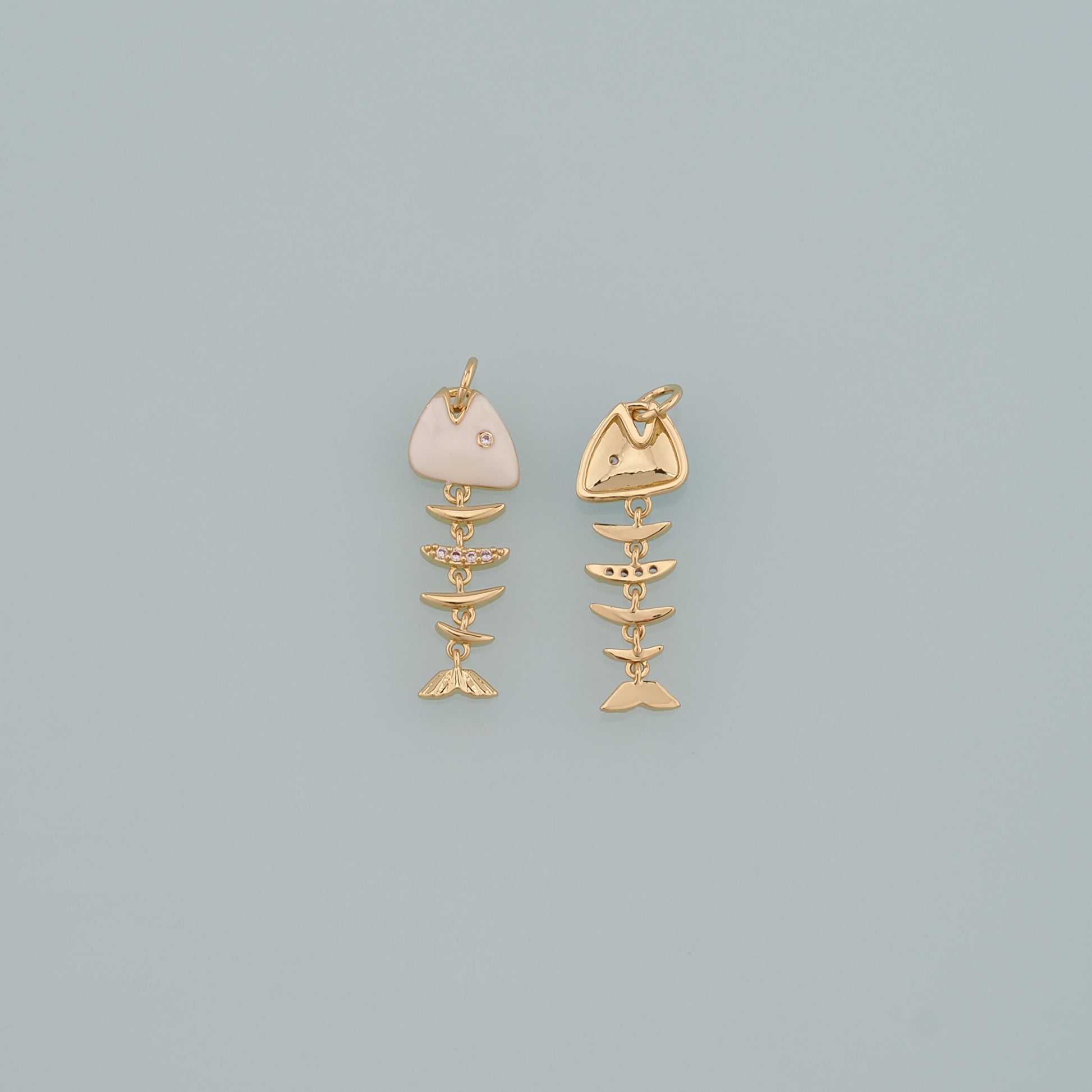 Gold Fish Charms,18K Gold Filled Fish Pendant,Enamel Fish Bones Charm Bracelet Necklace for DIY Jewelry Making Supply