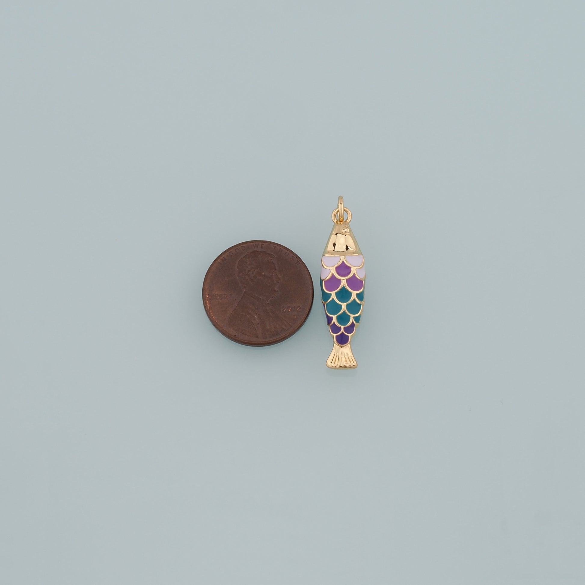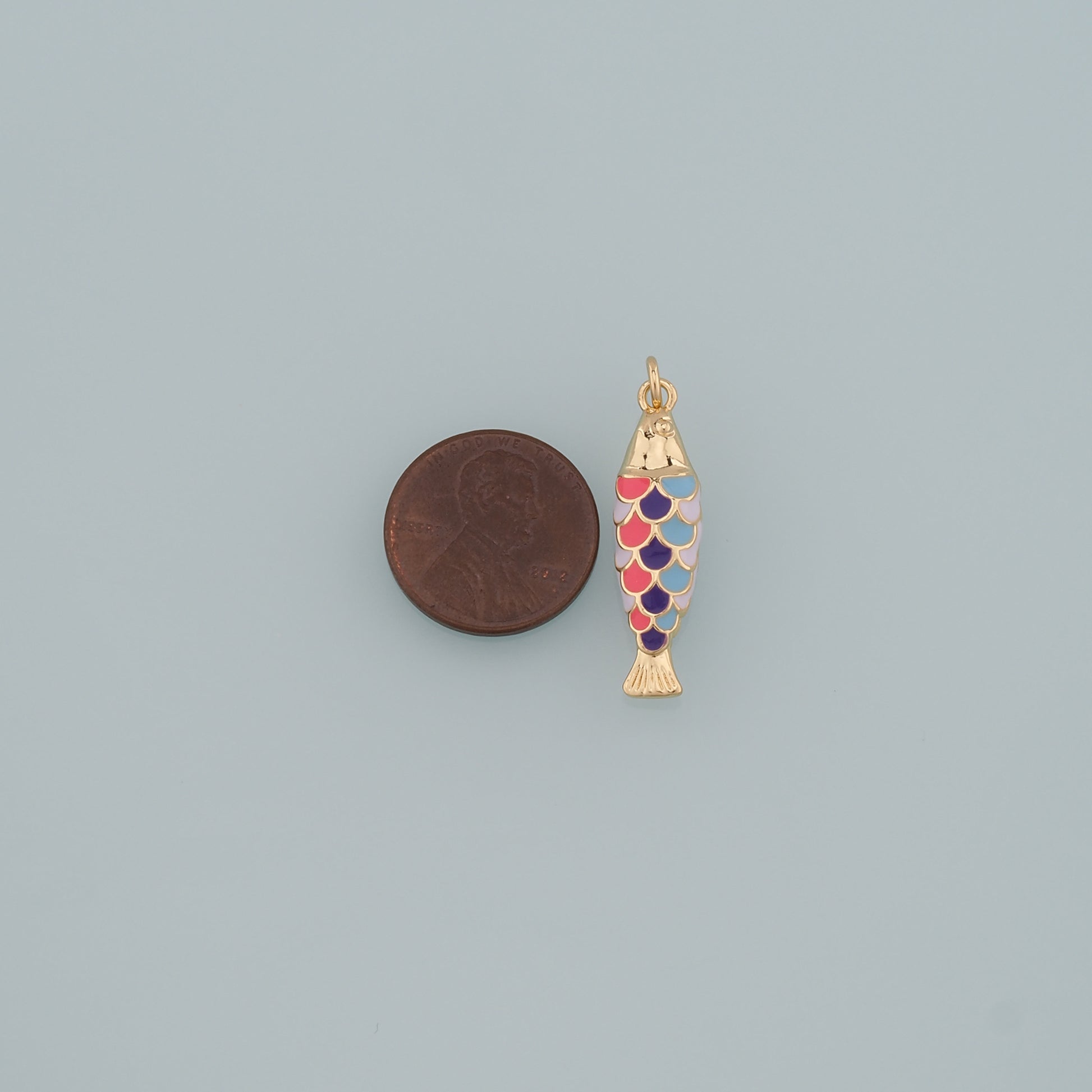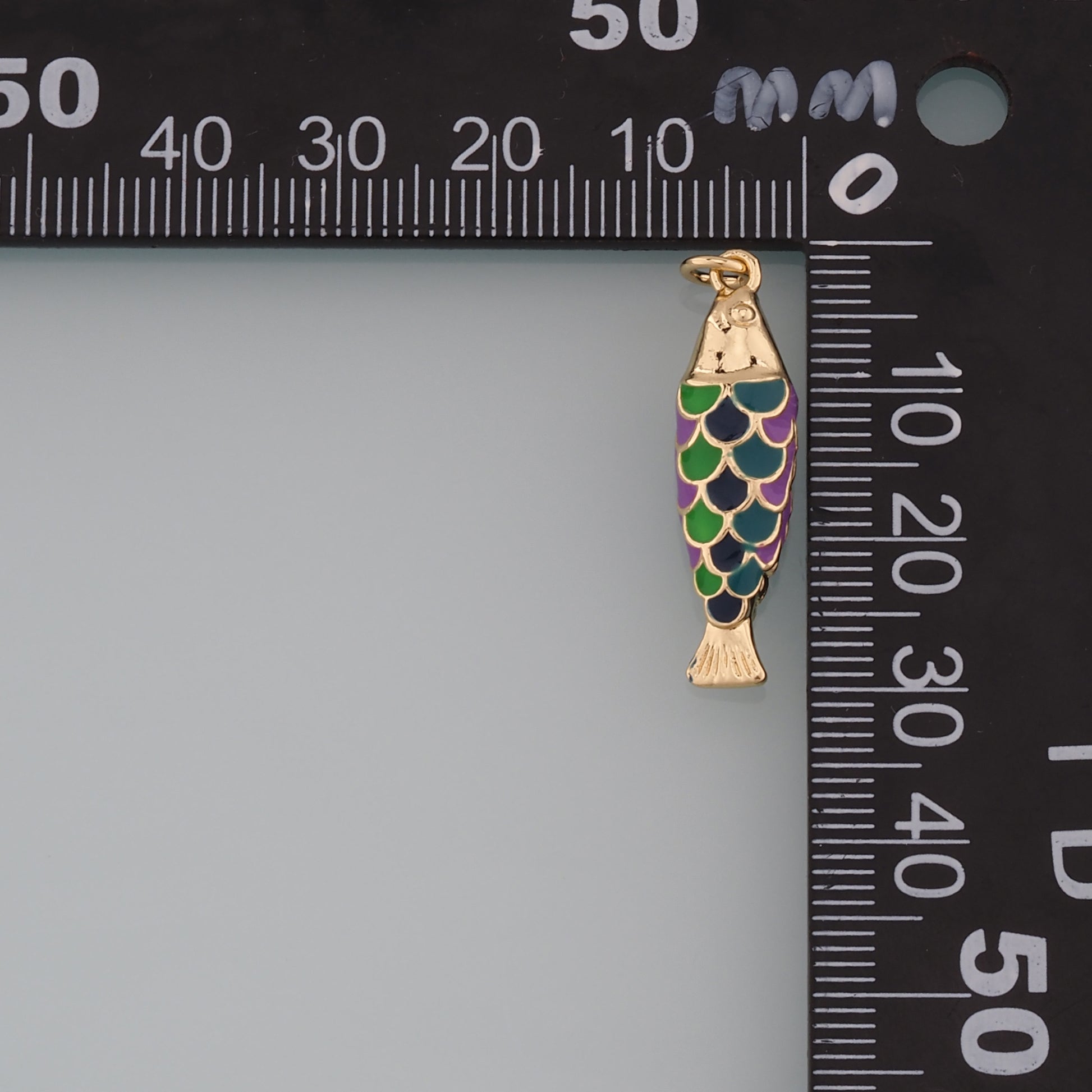 Gold Fish Charms,18K Gold Filled Fish Pendant,Enamel Ocean Charm Bracelet Necklace for DIY Jewelry Making Supply