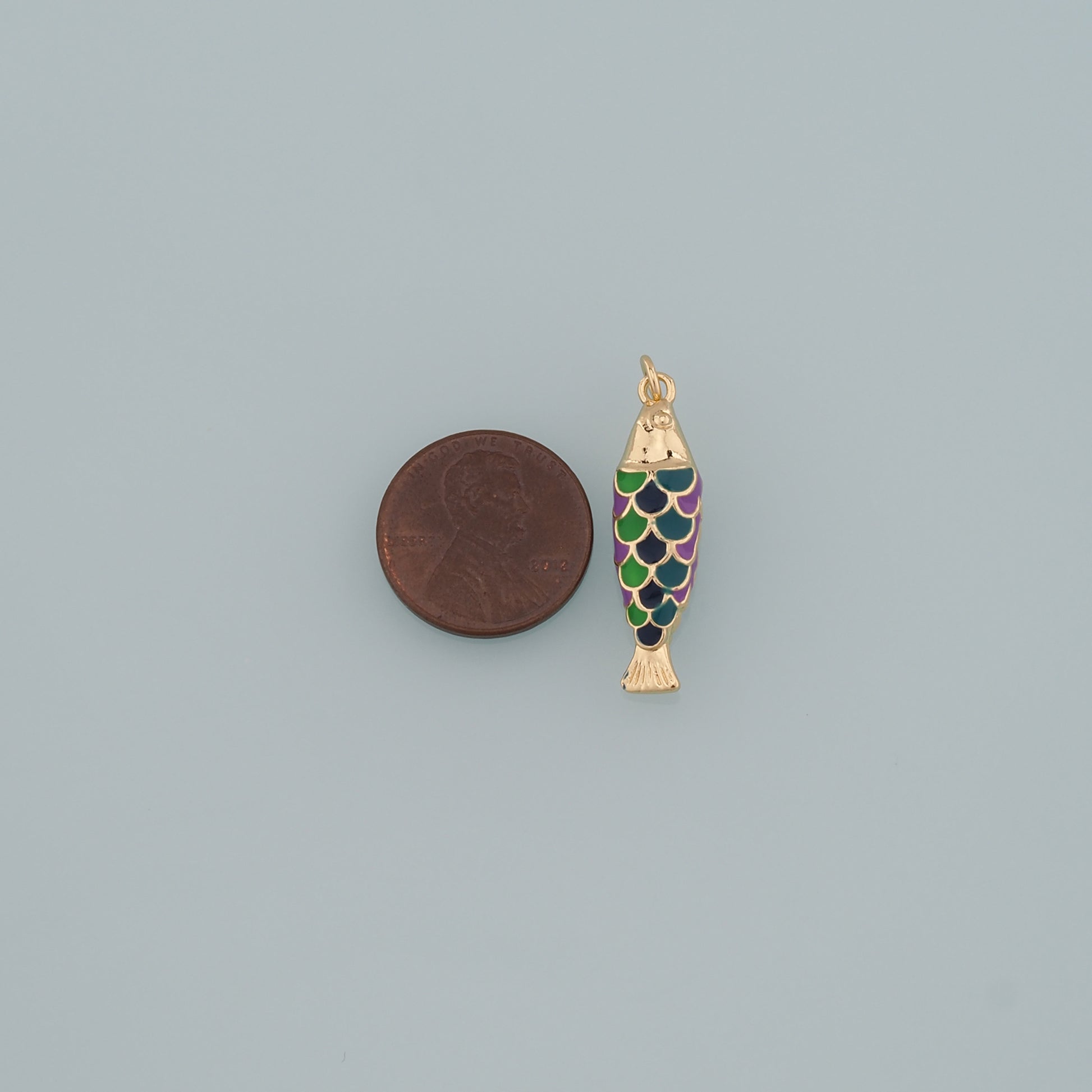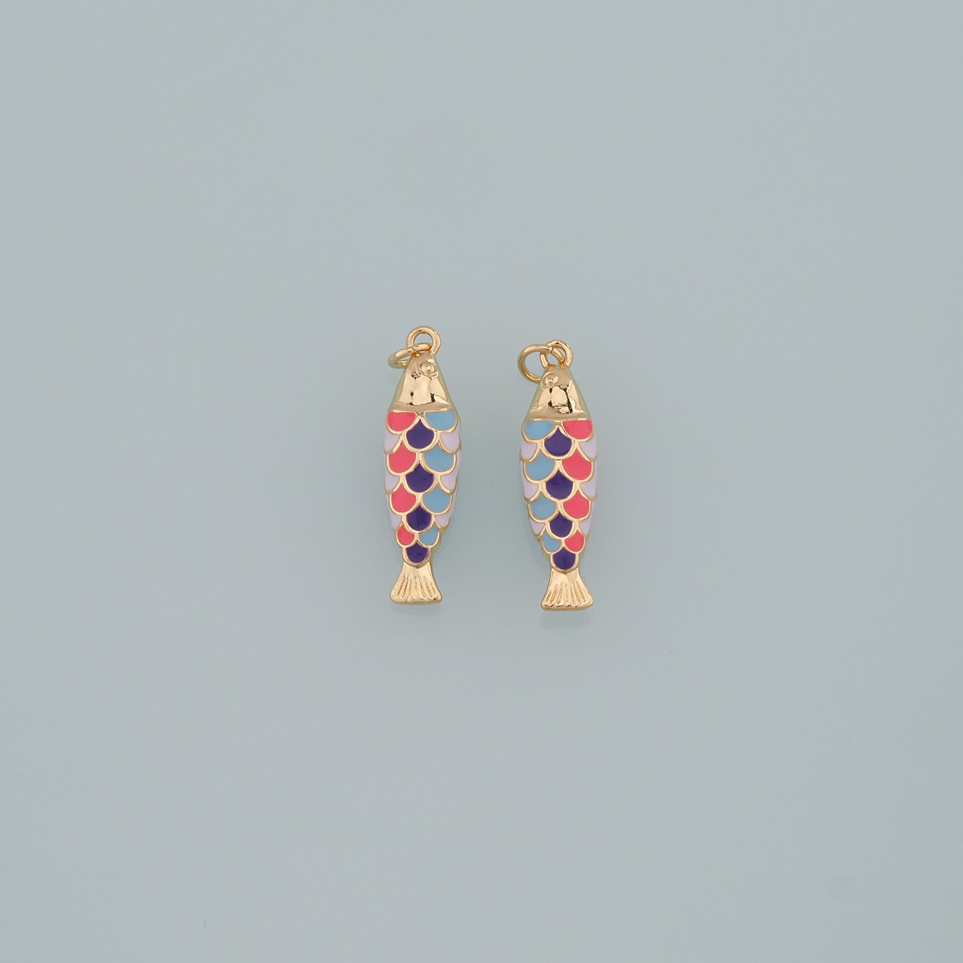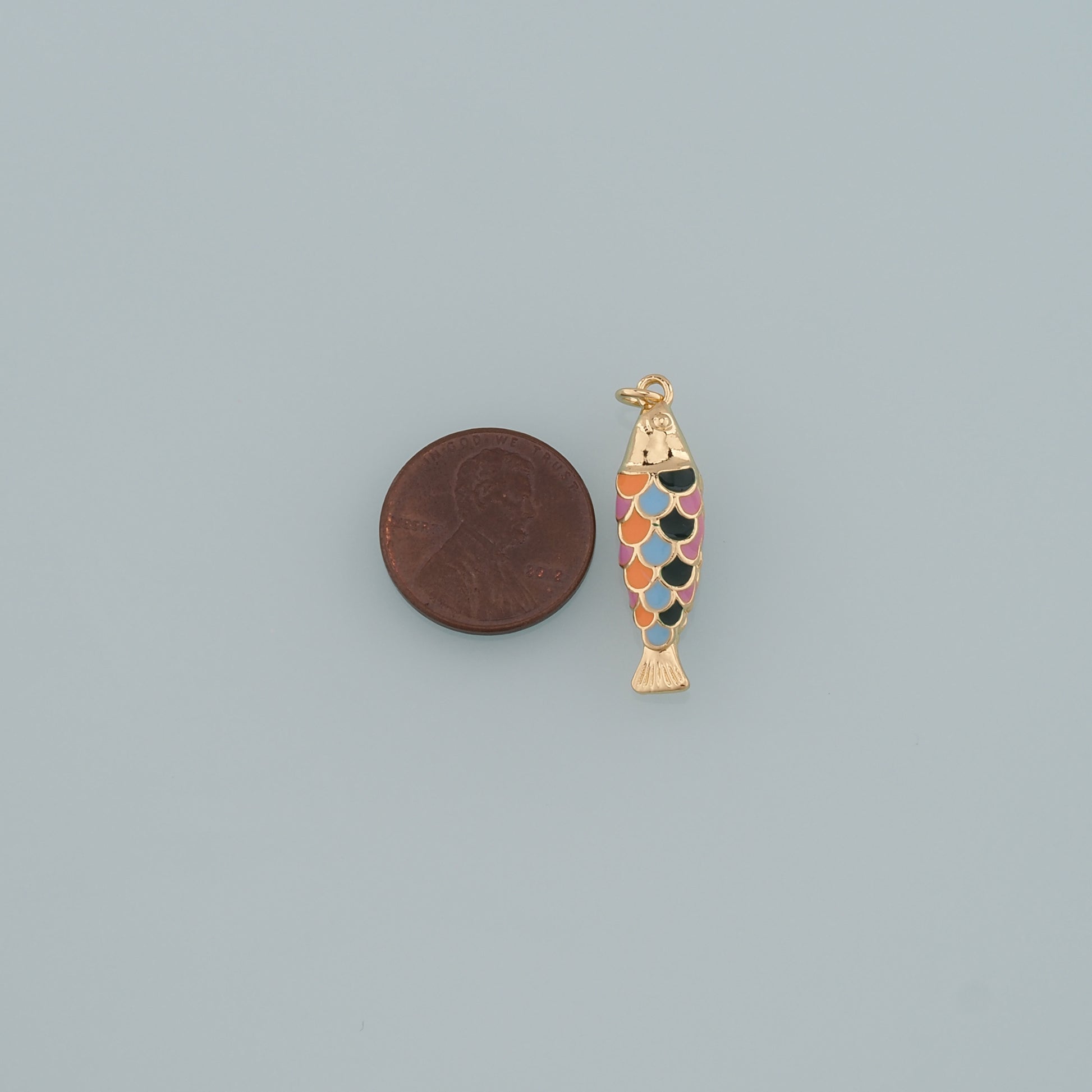 Gold Fish Charms,18K Gold Filled Fish Pendant,Enamel Ocean Charm Bracelet Necklace for DIY Jewelry Making Supply