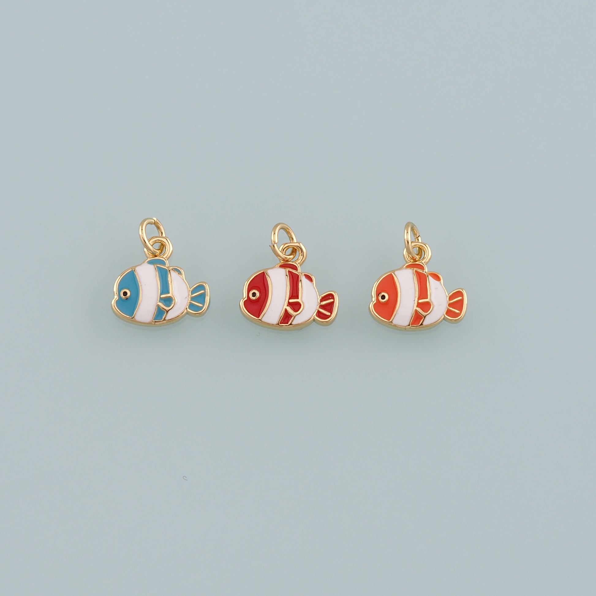 Gold Fish Charms,18K Gold Filled Clownfish Pendant,Enamel Ocean Charm Bracelet Necklace for DIY Jewelry Making Supply
