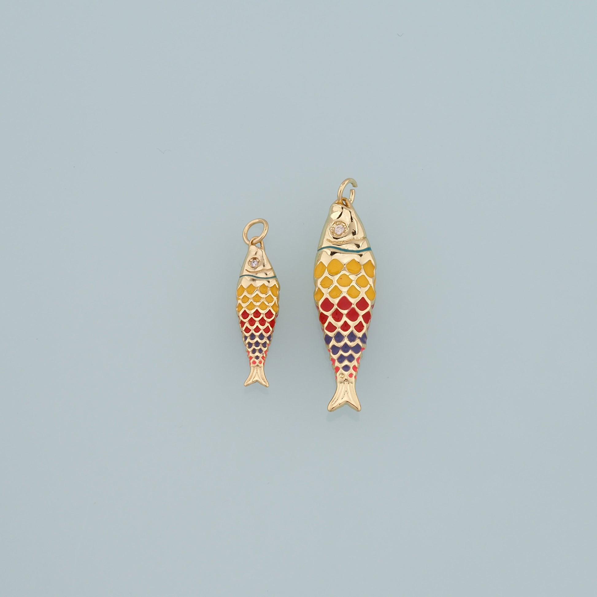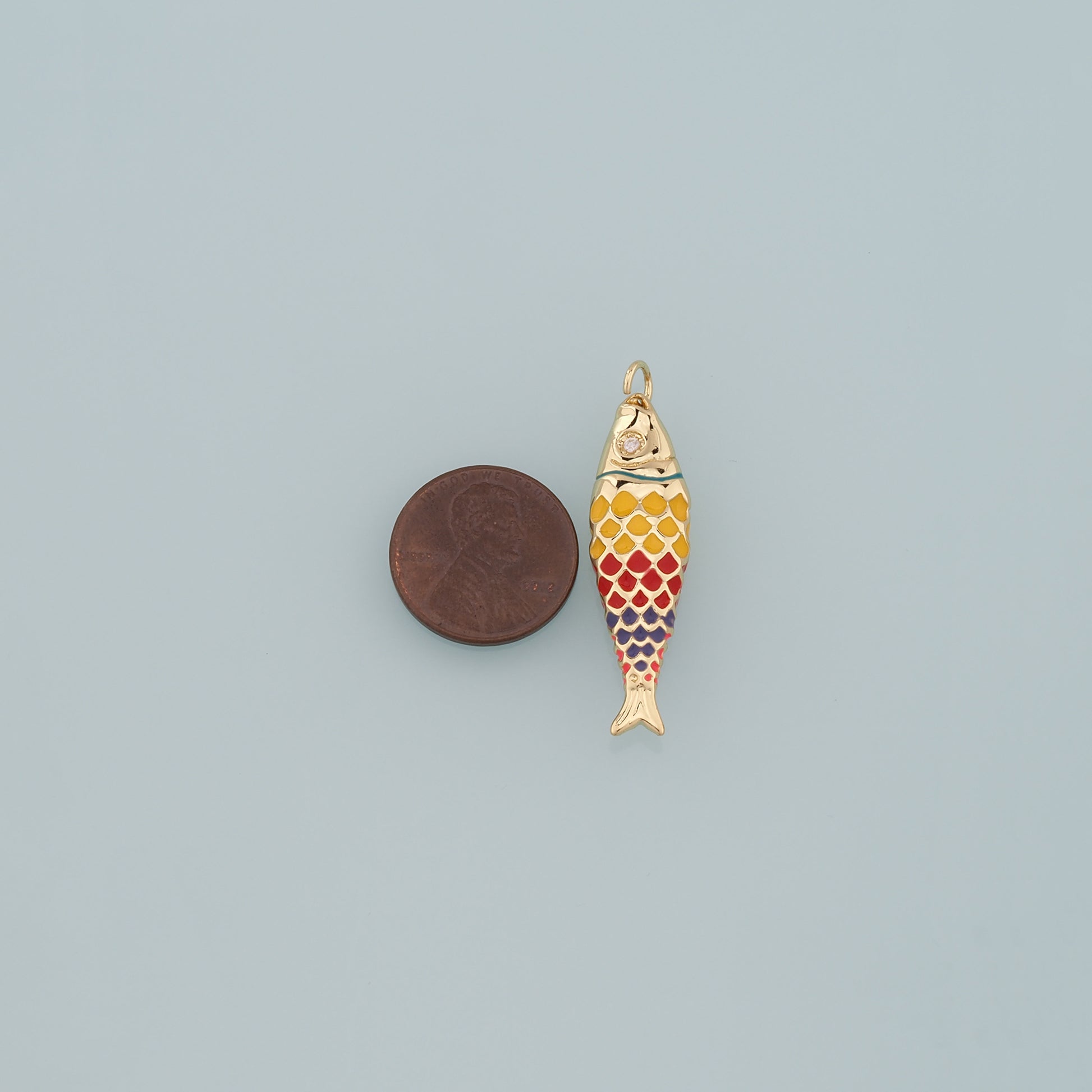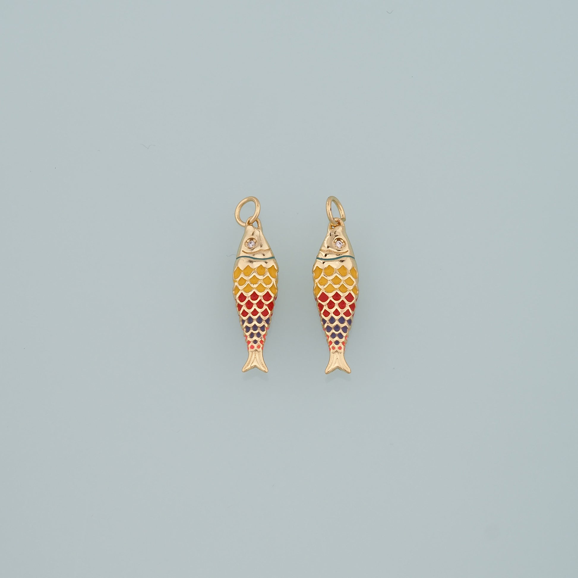 Gold Fish Charms,18K Gold Filled Fish Pendant,Enamel Ocean Charm Bracelet Necklace for DIY Jewelry Making Supply