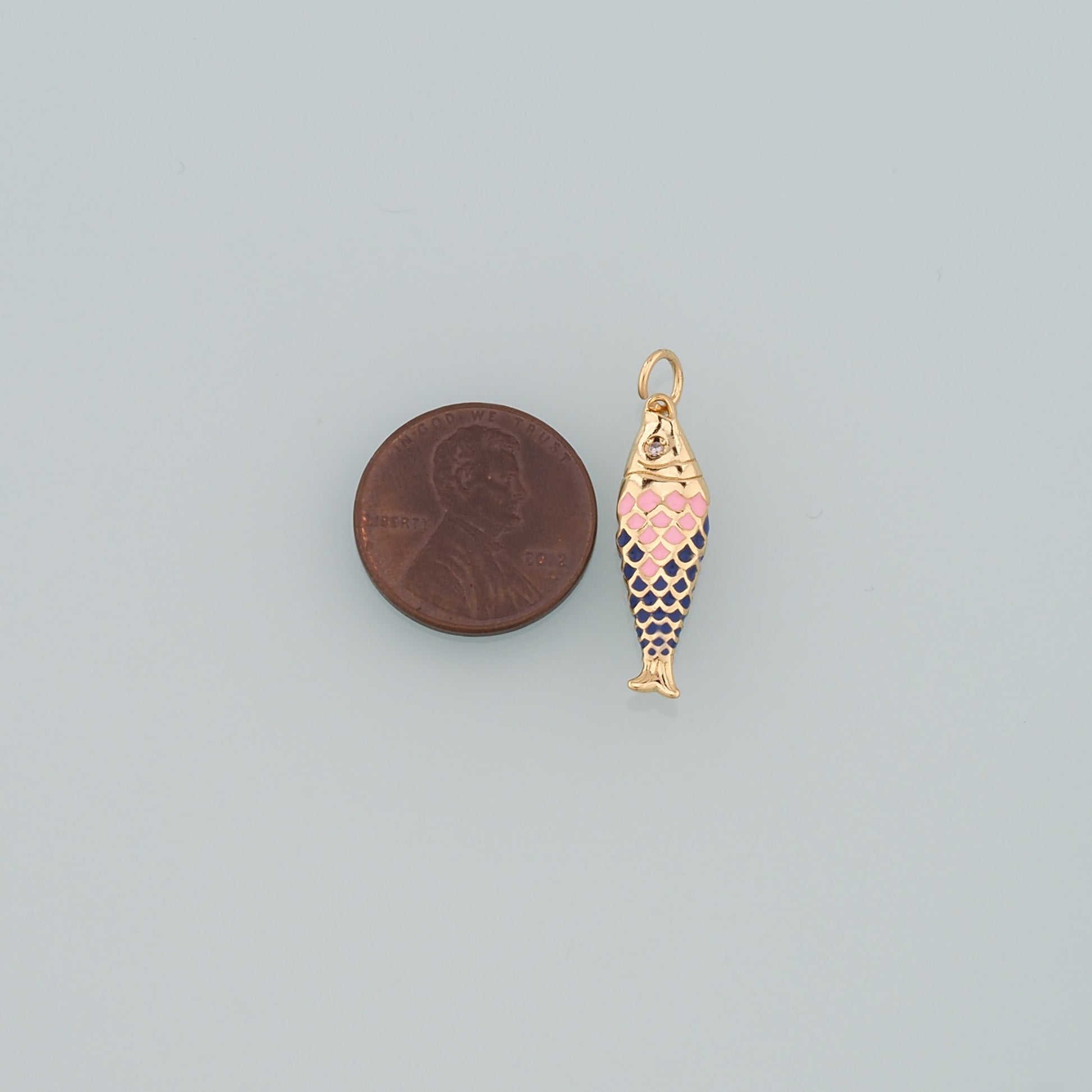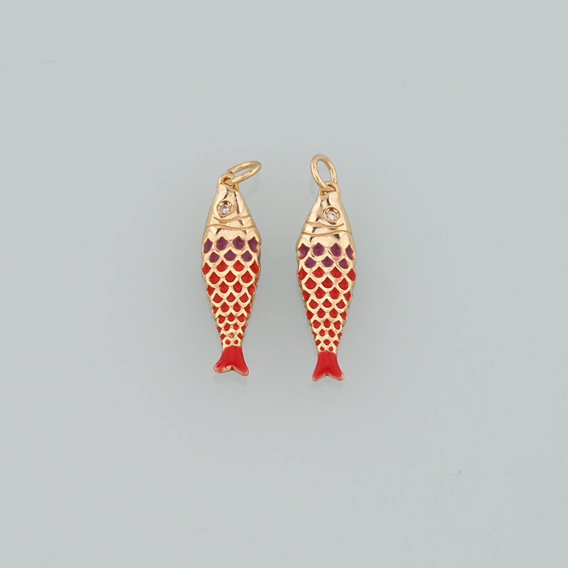 Gold Fish Charms,18K Gold Filled Fish Pendant,Enamel Ocean Charm Bracelet Necklace for DIY Jewelry Making Supply
