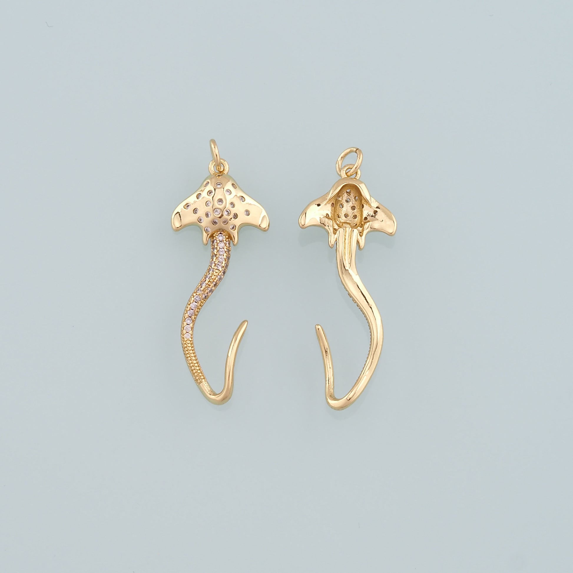 Gold Fish Charms,18K Gold Filled Manta Ray Pendant,CZ Micro Pave Manta Ray Charm Bracelet Necklace for DIY Jewelry Making Supply