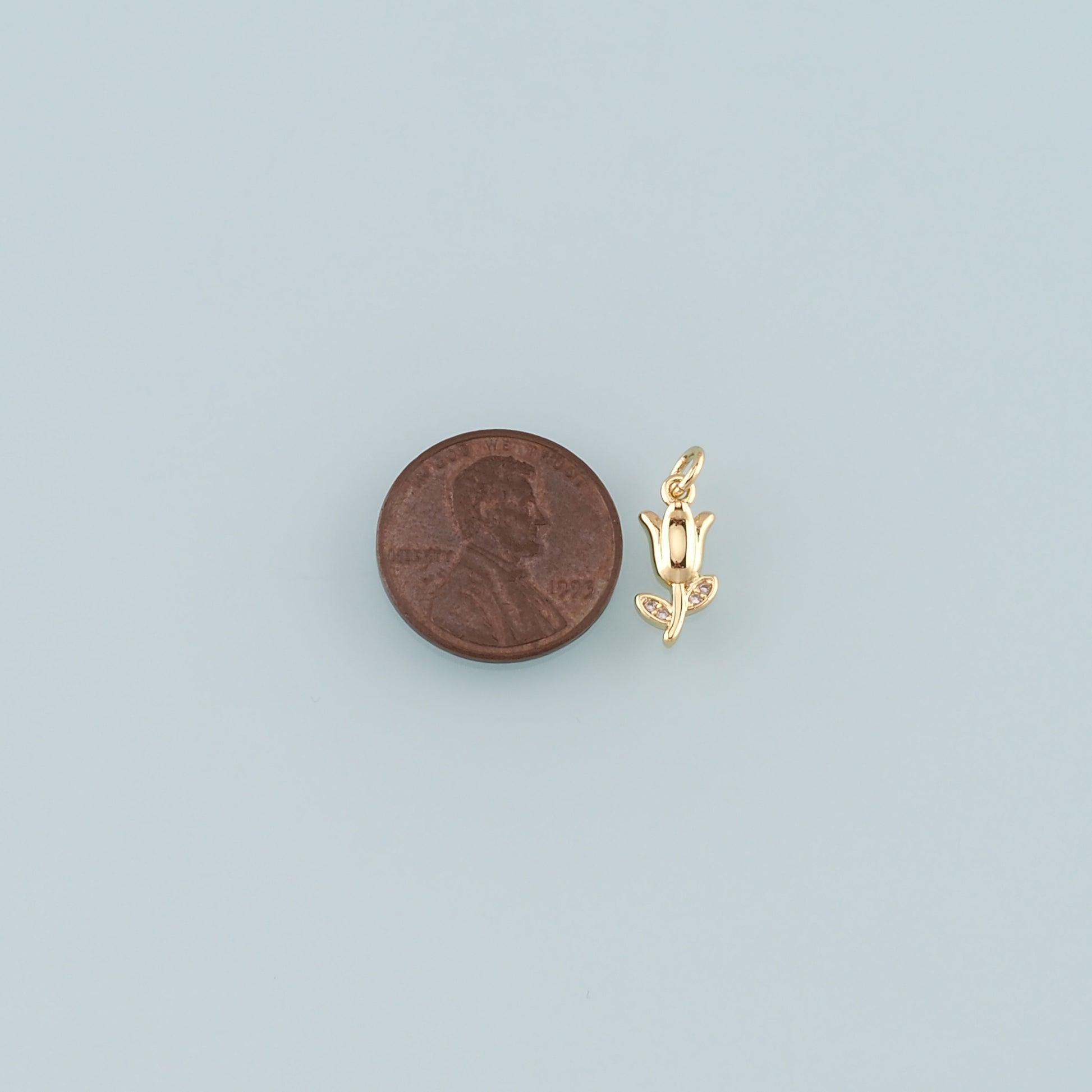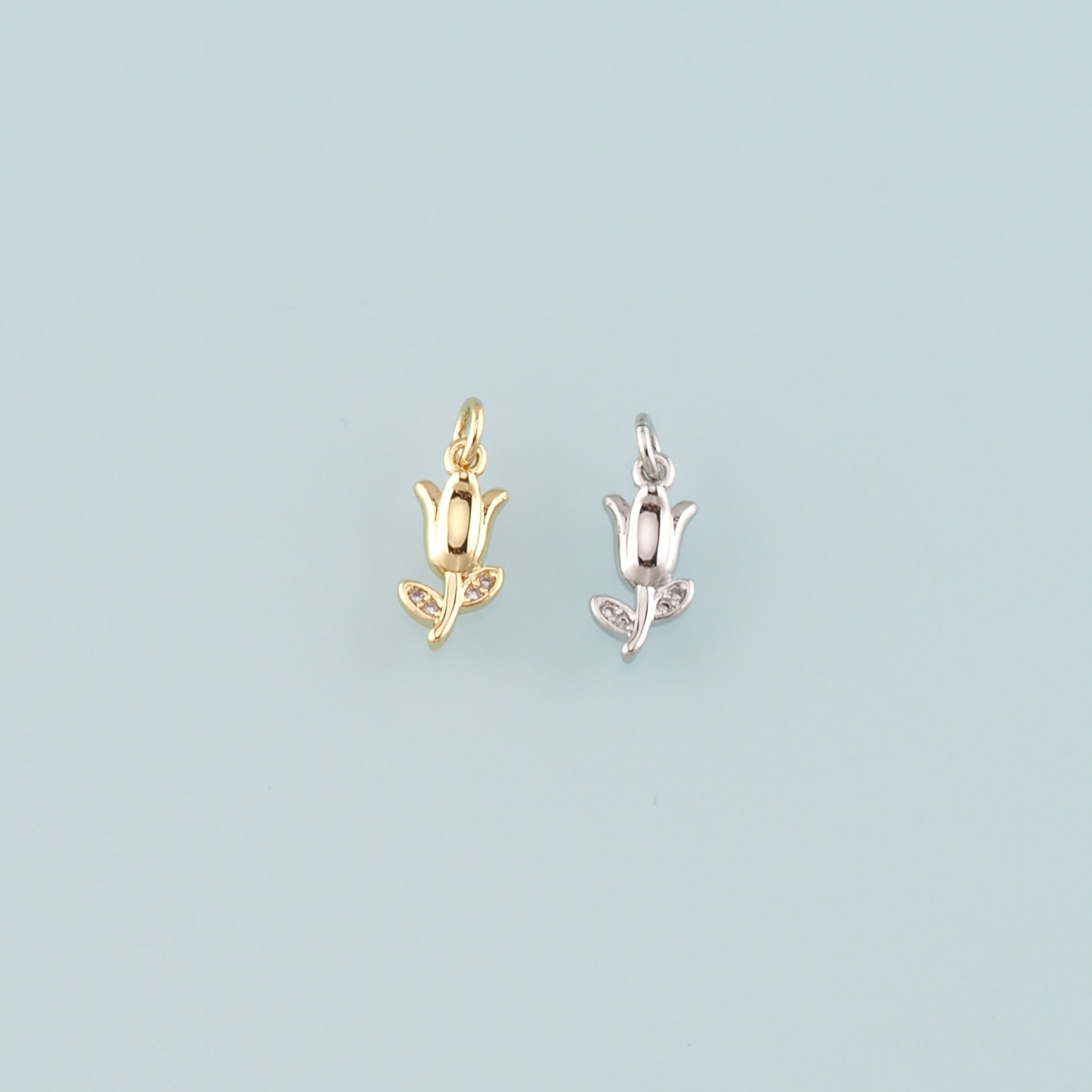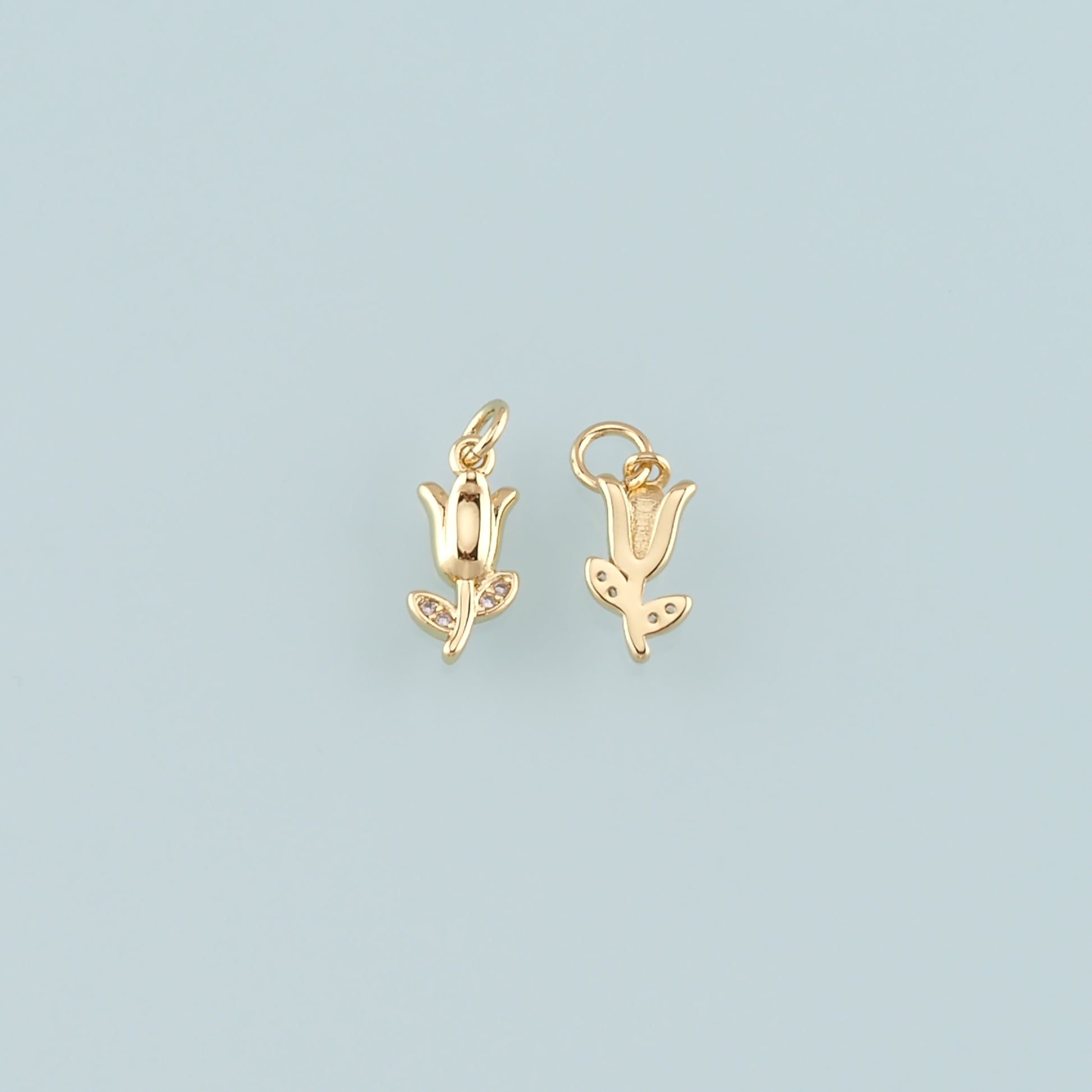 Gold Flower Charm,18K Gold Filled Tulip Pendant,CZ Micro Pave Flower Charm Bracelet Necklace for DIY Jewelry Making Supply
