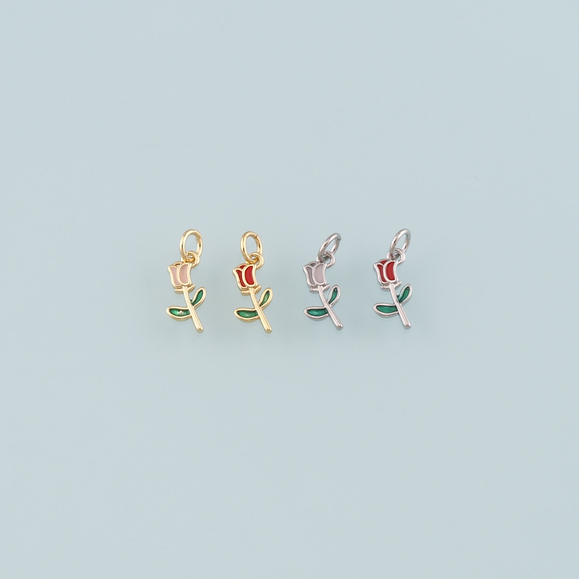 Gold Flower Charm,18K Gold Filled Tulip Pendant,Enamel Flower Charm Bracelet Necklace for DIY Jewelry Making Supply