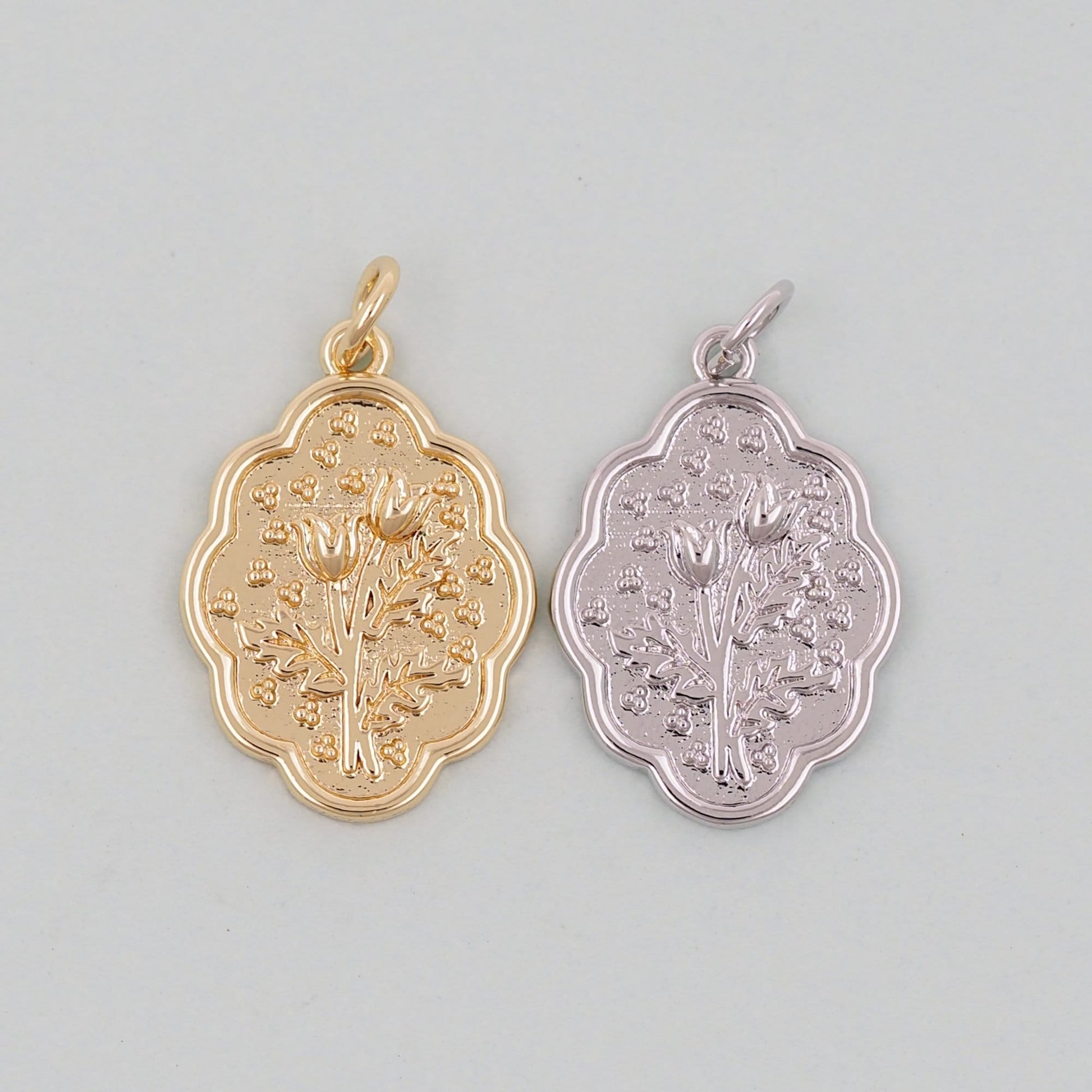 Gold flower Charms,18K Gold Filled flower Pendant,Silver flower Charm Bracelet Necklace for DIY Jewelry Making Supply