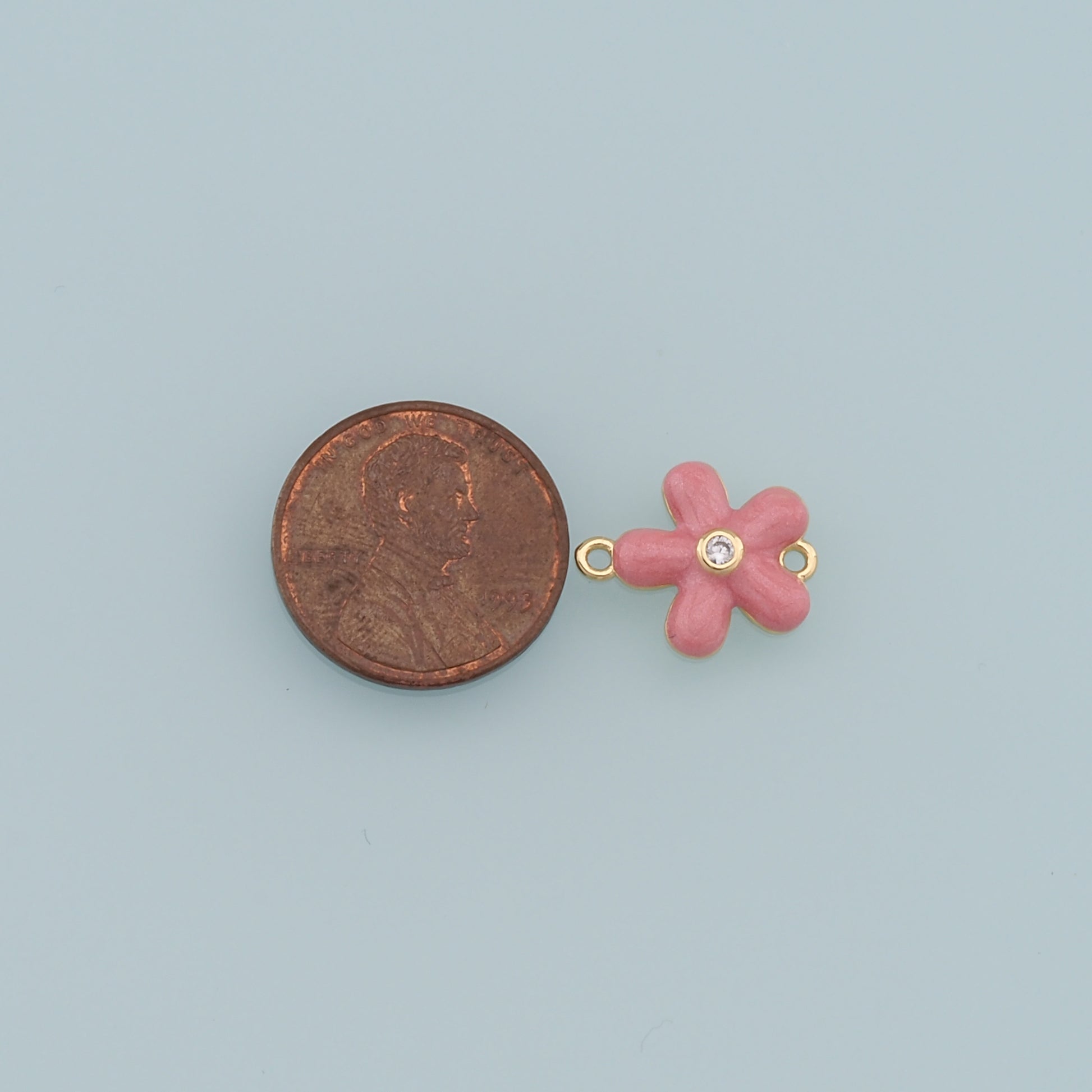 Gold Flower Charms,18K Gold Filled Enamel Flower Pendant,Silver flower Charm Bracelet Necklace for DIY Jewelry Making Supply