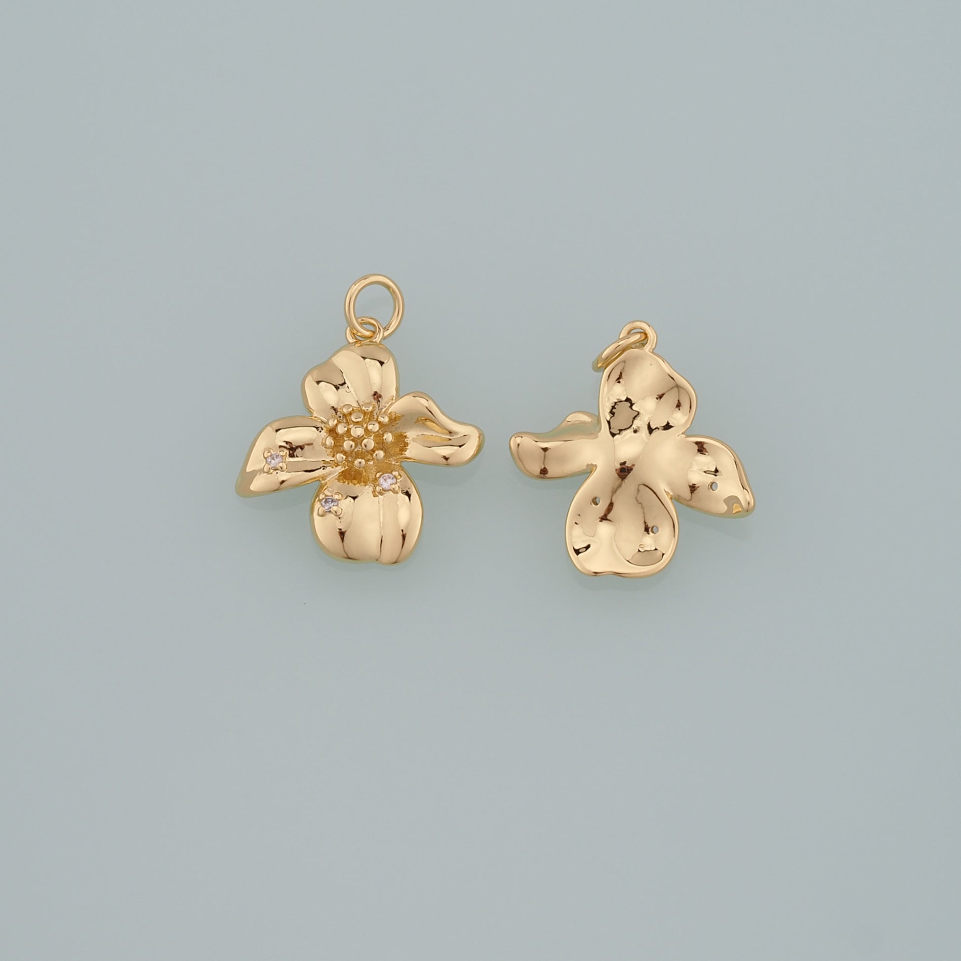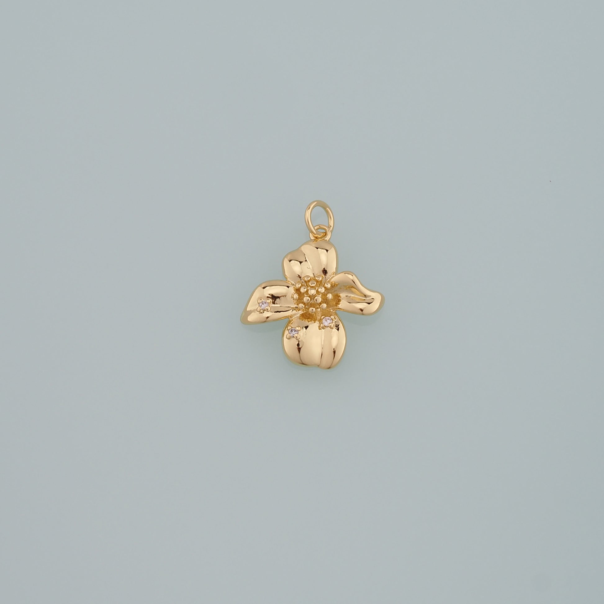 Gold Flower Charms,18K Gold Filled Flower Pendant,CZ Micro Pave Flower Charm Bracelet Necklace for DIY Jewelry Making Supply
