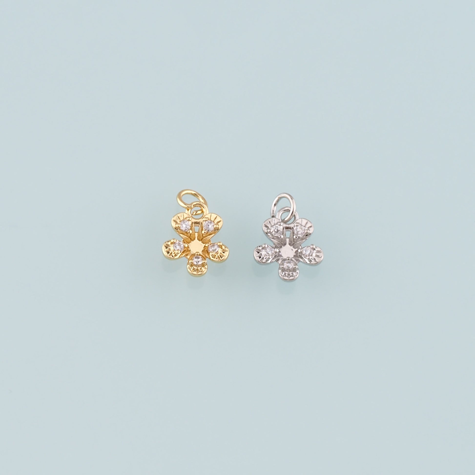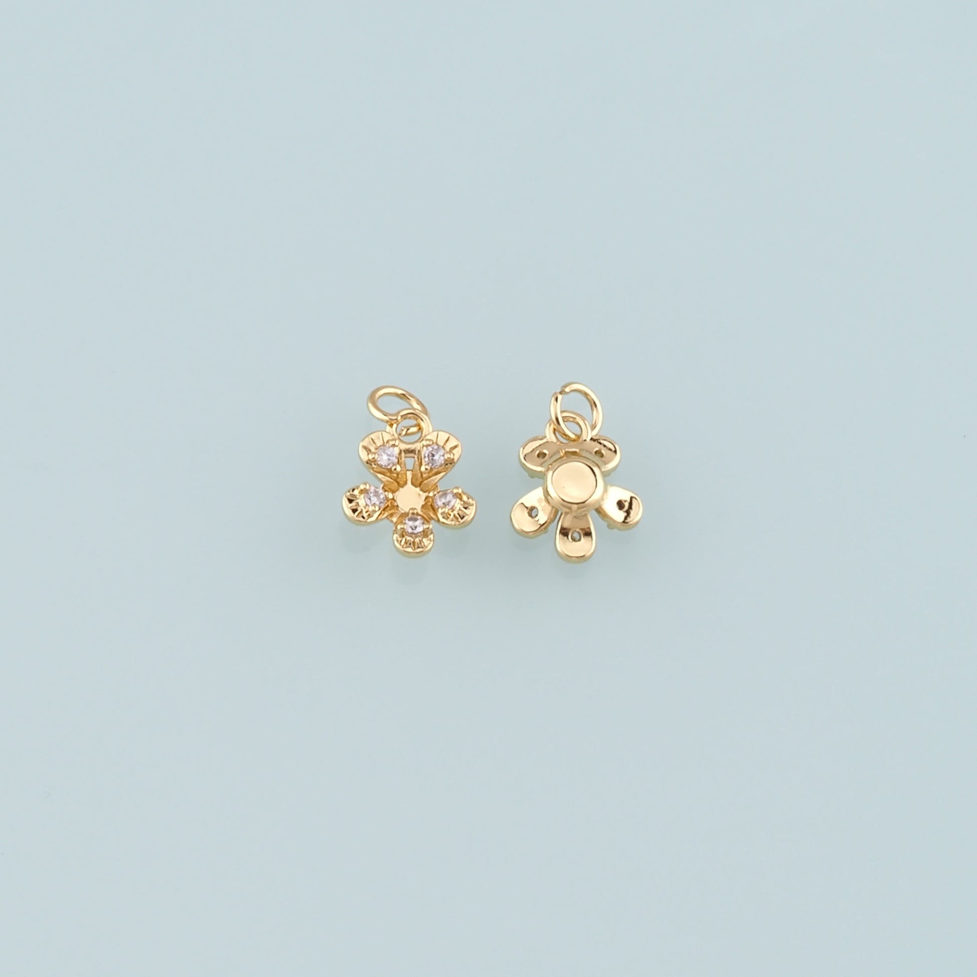 Gold Flower Charms,18K Gold Filled Flower Pendant,CZ Micro Pave Flower Charm Bracelet Necklace for DIY Jewelry Making Supply