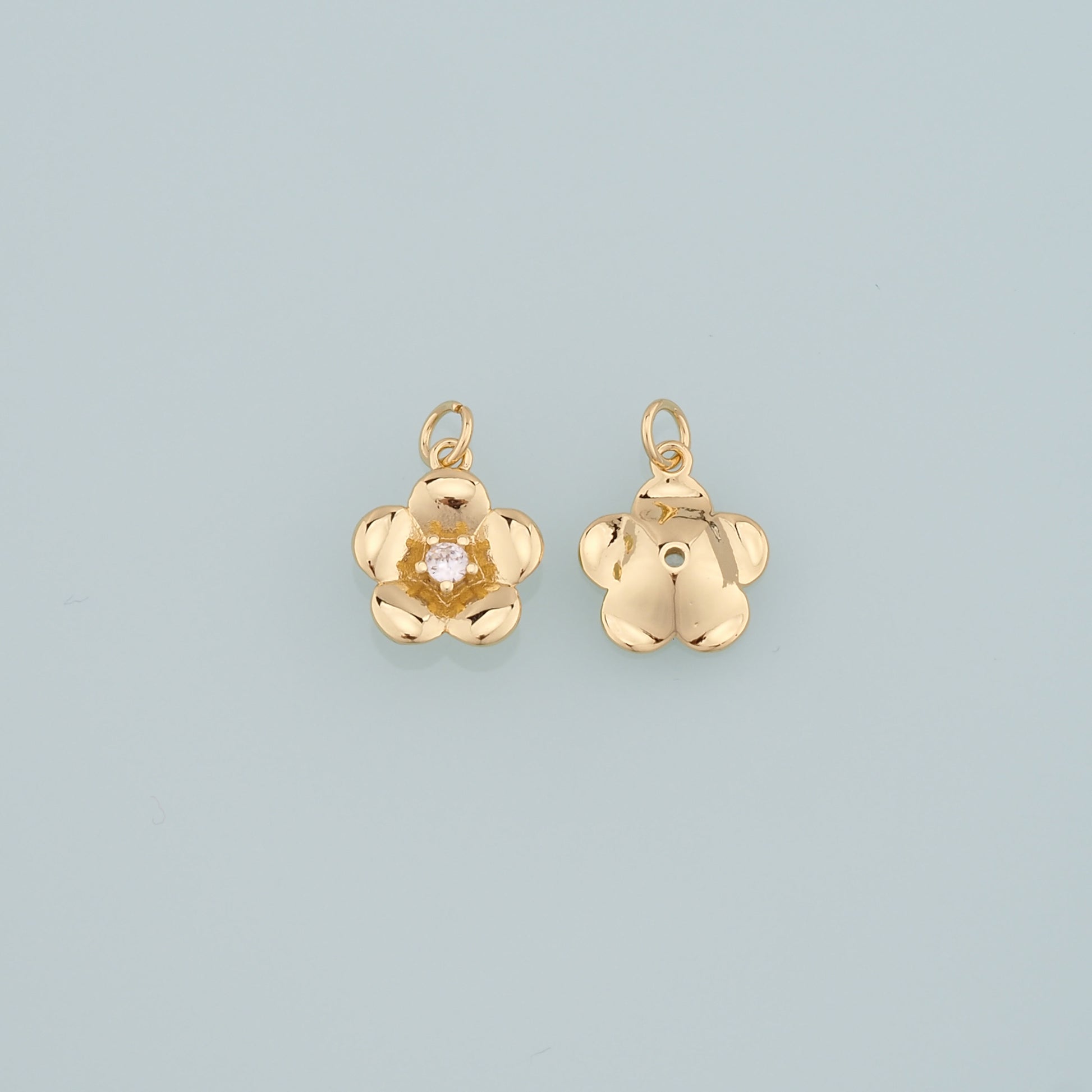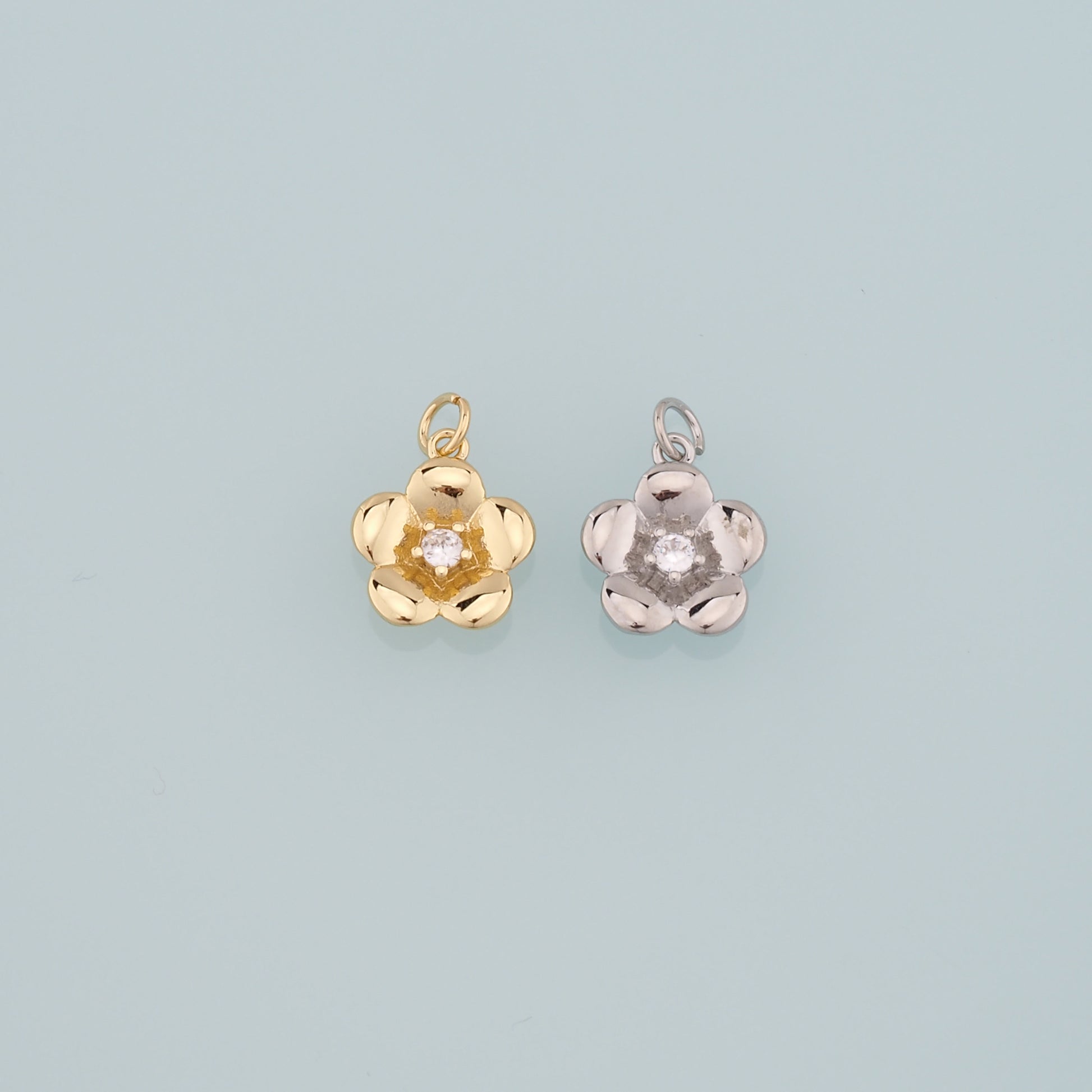 Gold Flower Charms,18K Gold Filled Flower Pendant,CZ Micro Pave Flower Charm Bracelet Necklace for DIY Jewelry Making Supply