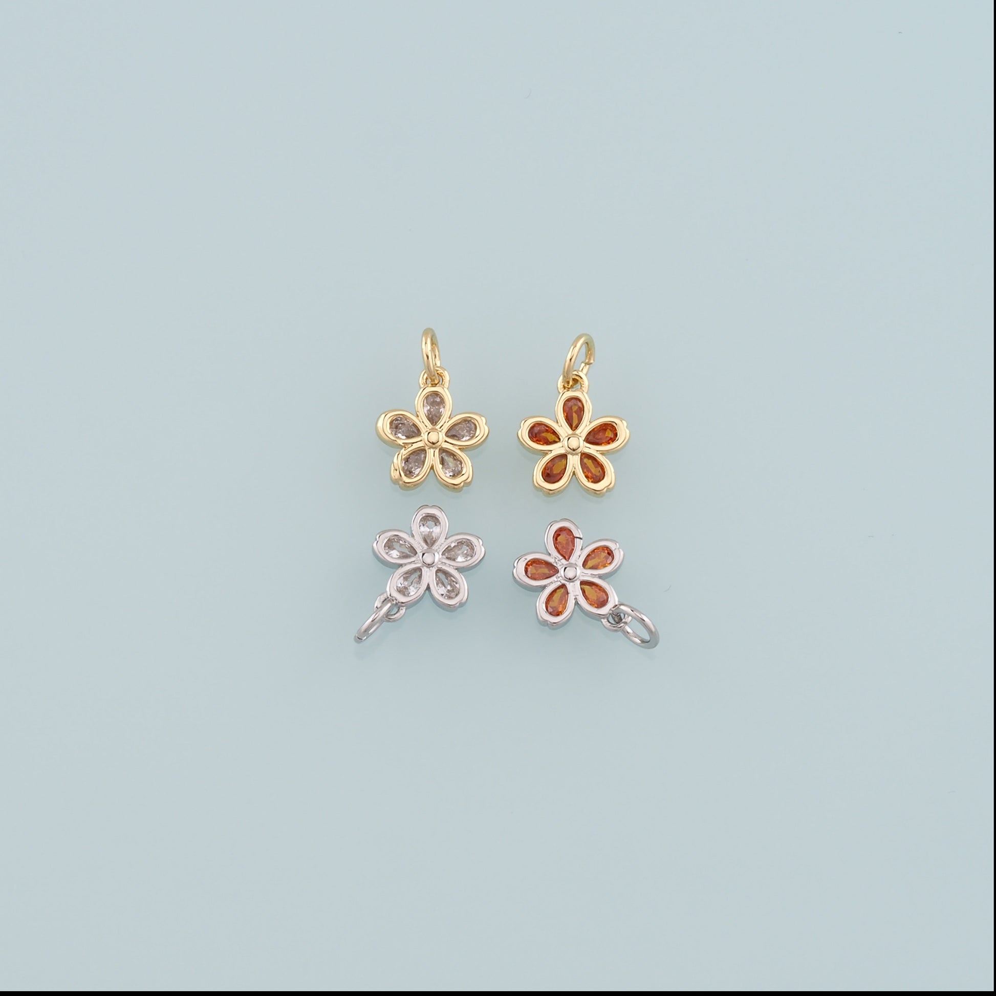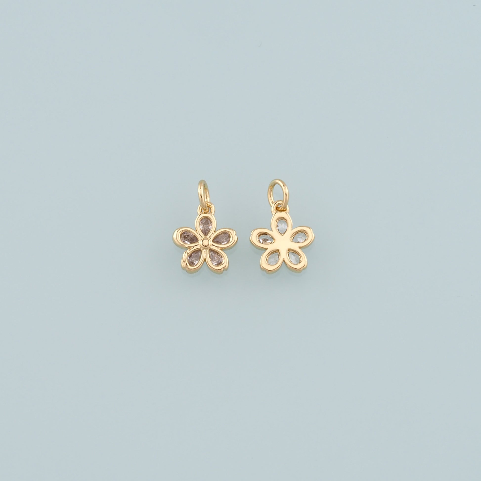 Gold Flower Charms,18K Gold Filled Flower Pendant,CZ Micro Pave Flower Charm Bracelet Necklace for DIY Jewelry Making Supply