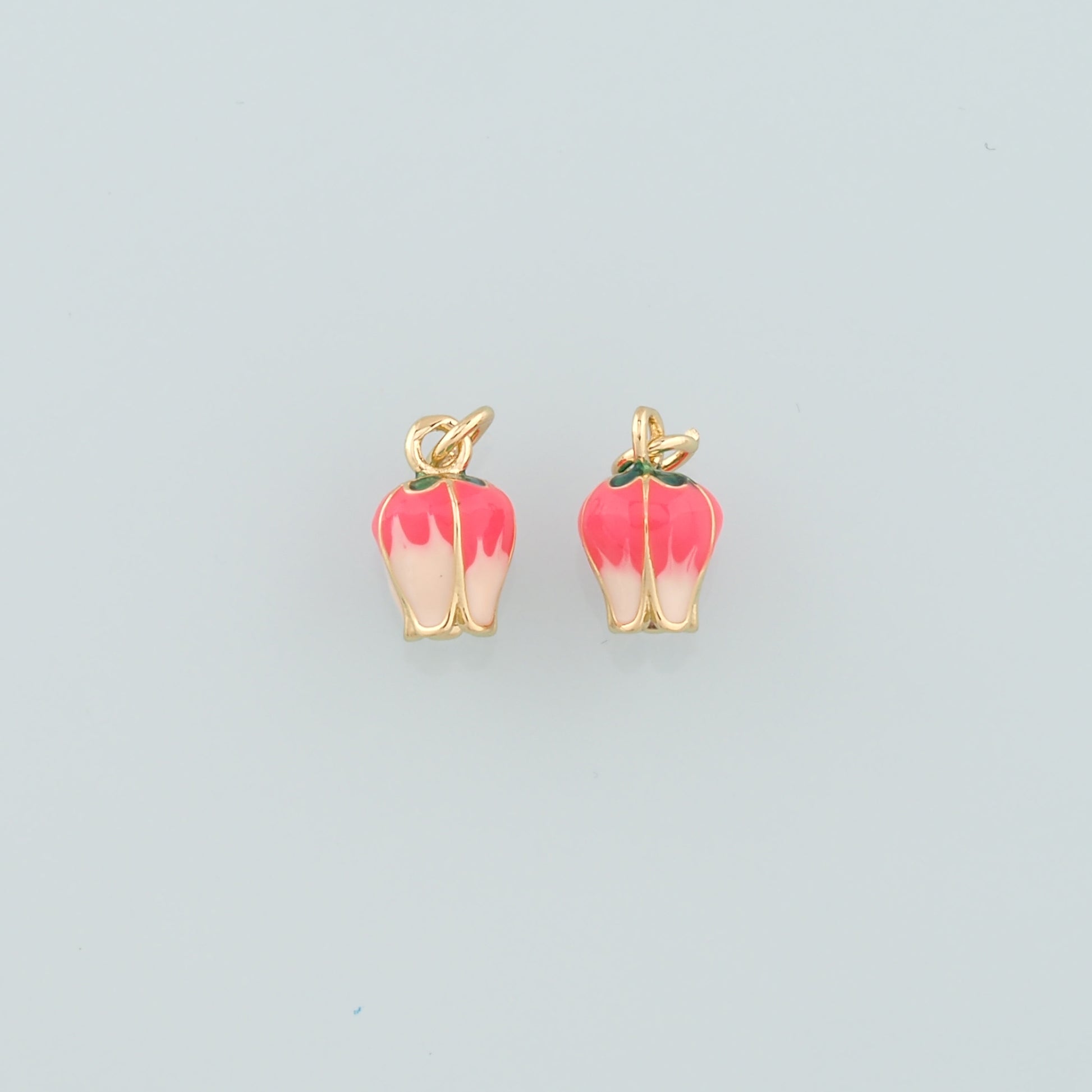 Gold Flower Charms,18K Gold Filled Flower Pendant,Enamel Bud Charm Bracelet Necklace for DIY Jewelry Making Supply