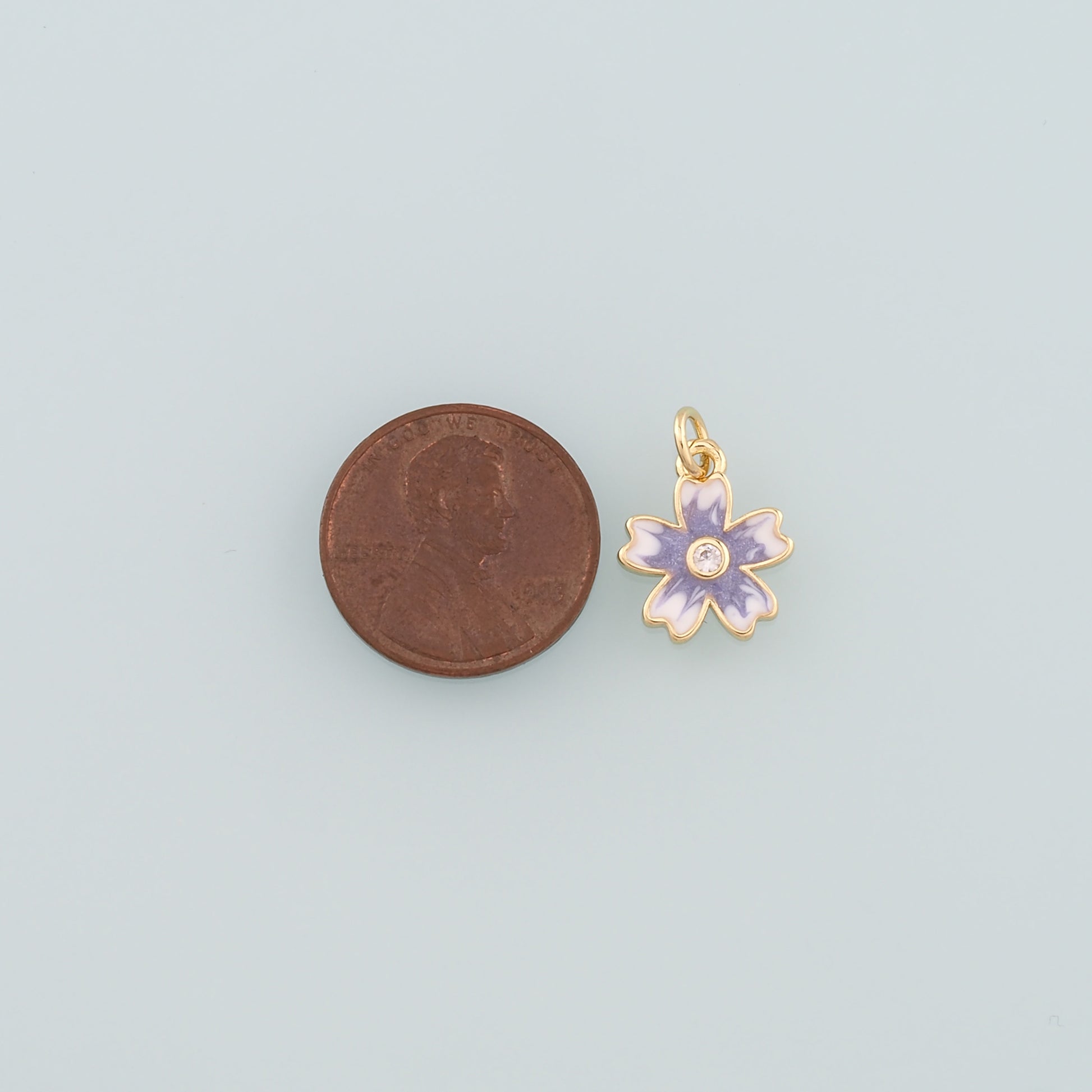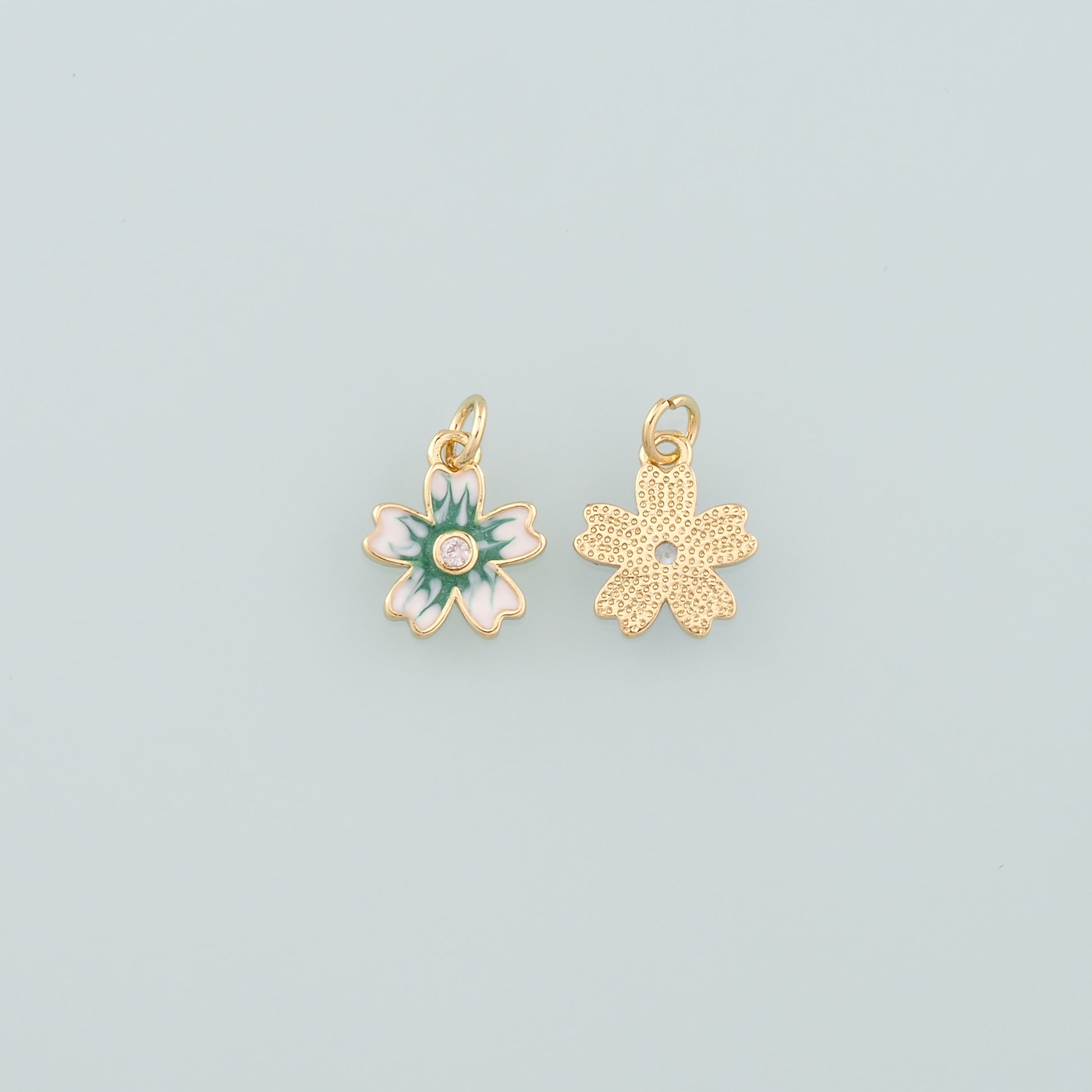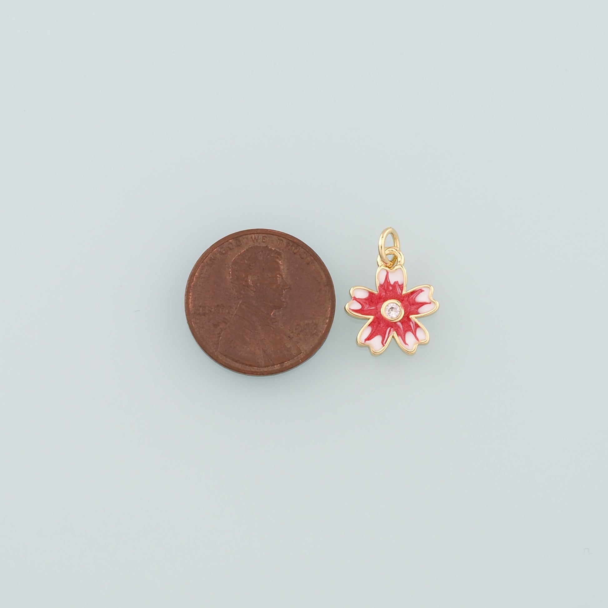 Gold Flower Charms,18K Gold Filled Flower Pendant,Enamel Flower Charm Bracelet Necklace for DIY Jewelry Making Supply
