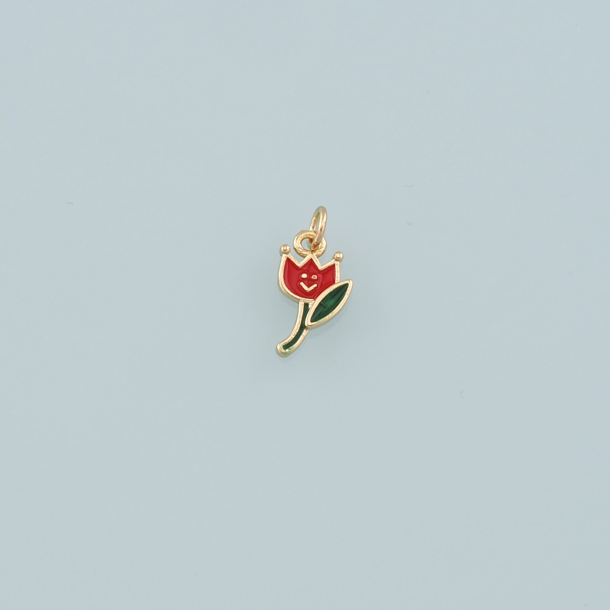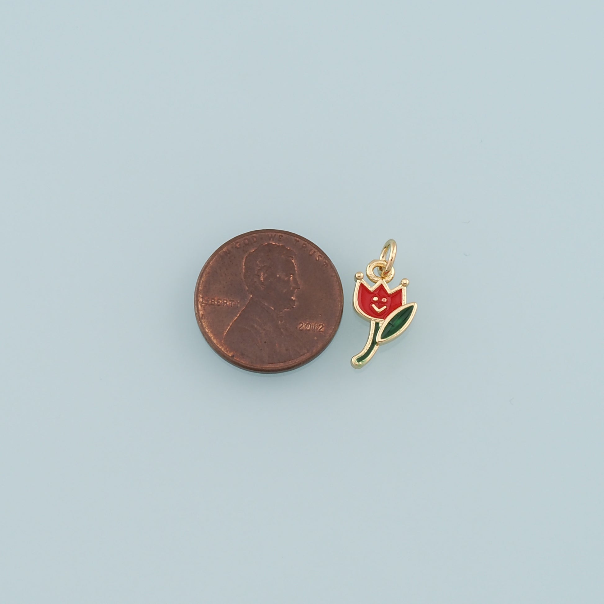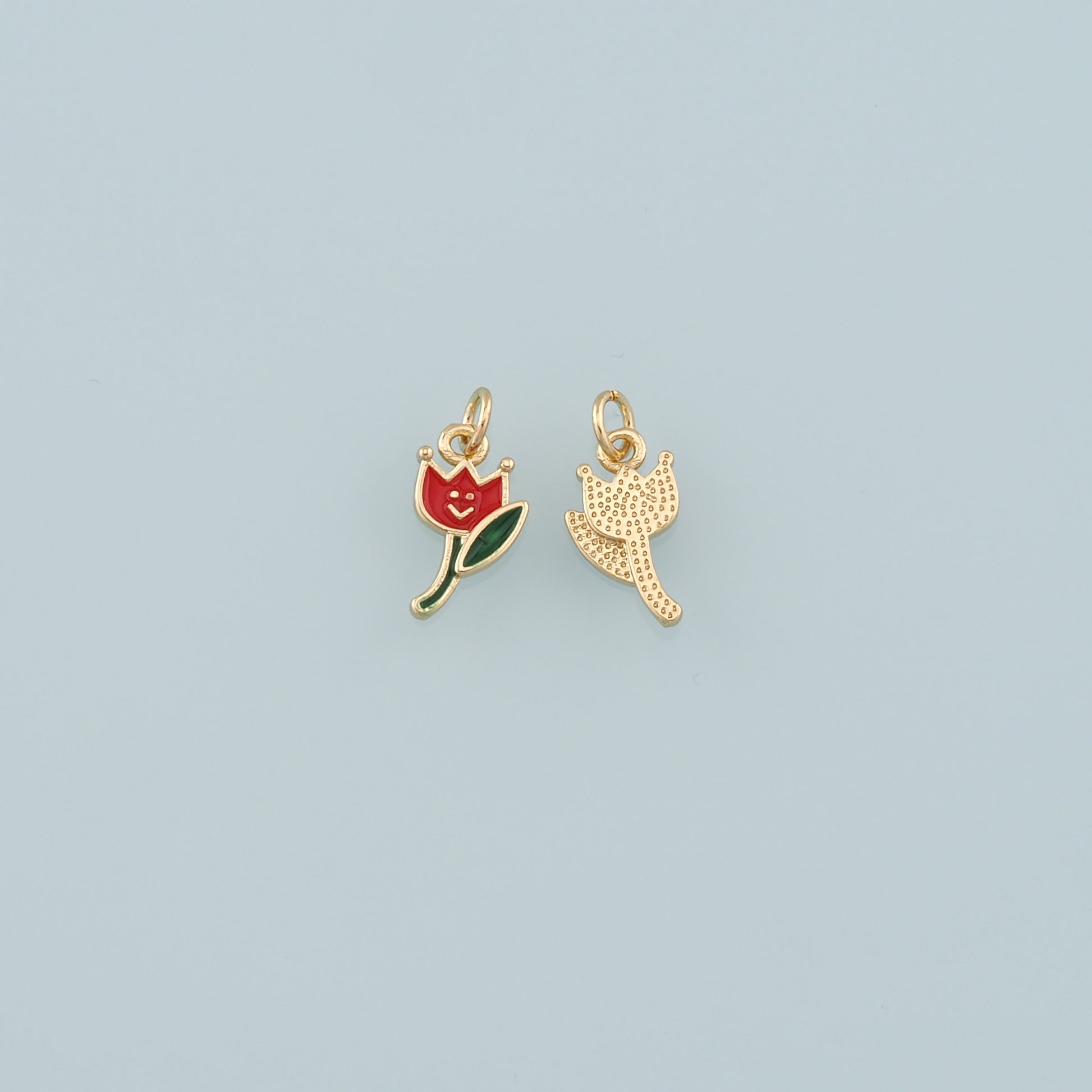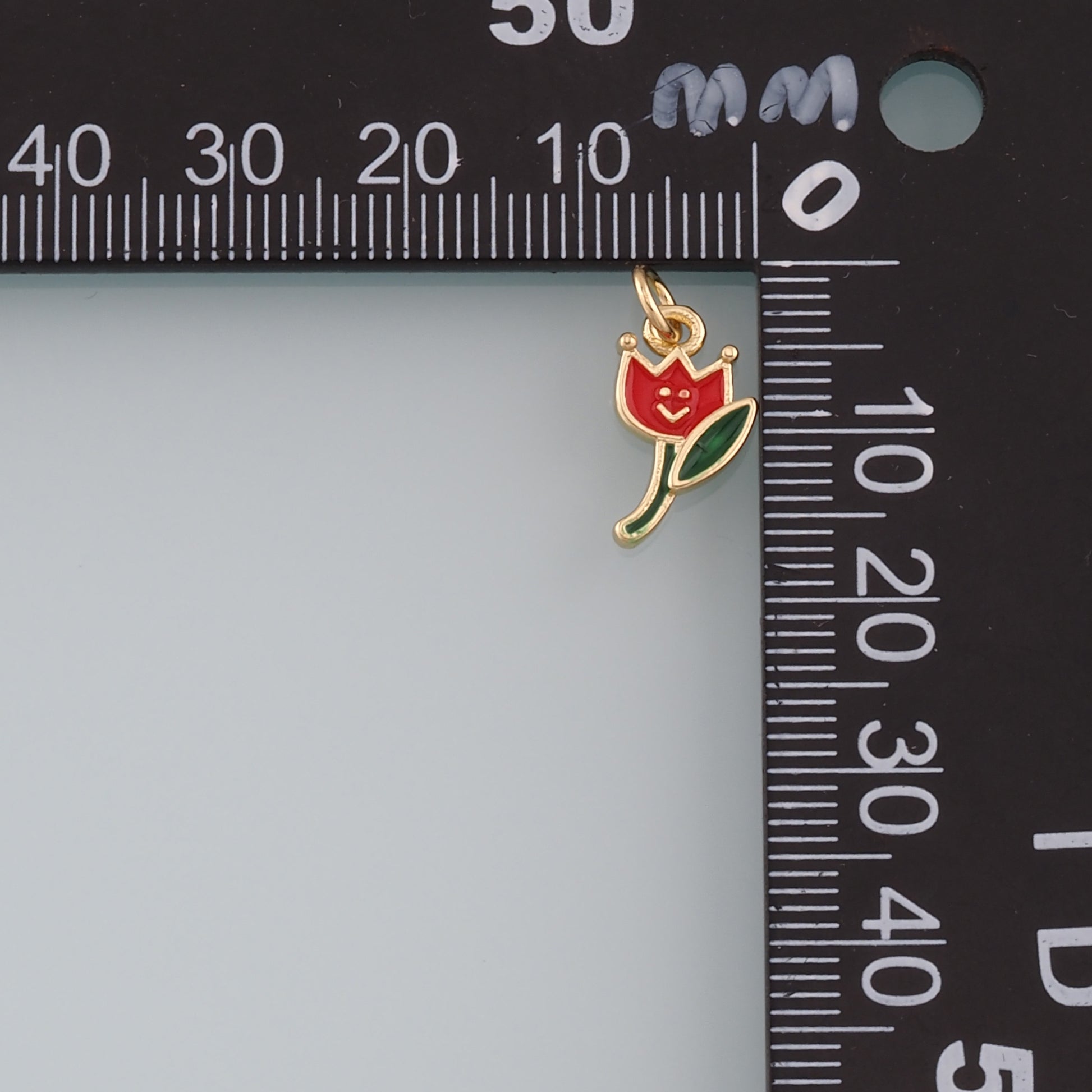Gold Flower Charms,18K Gold Filled Flower Pendant,Enamel Flower Charm Bracelet Necklace for DIY Jewelry Making Supply