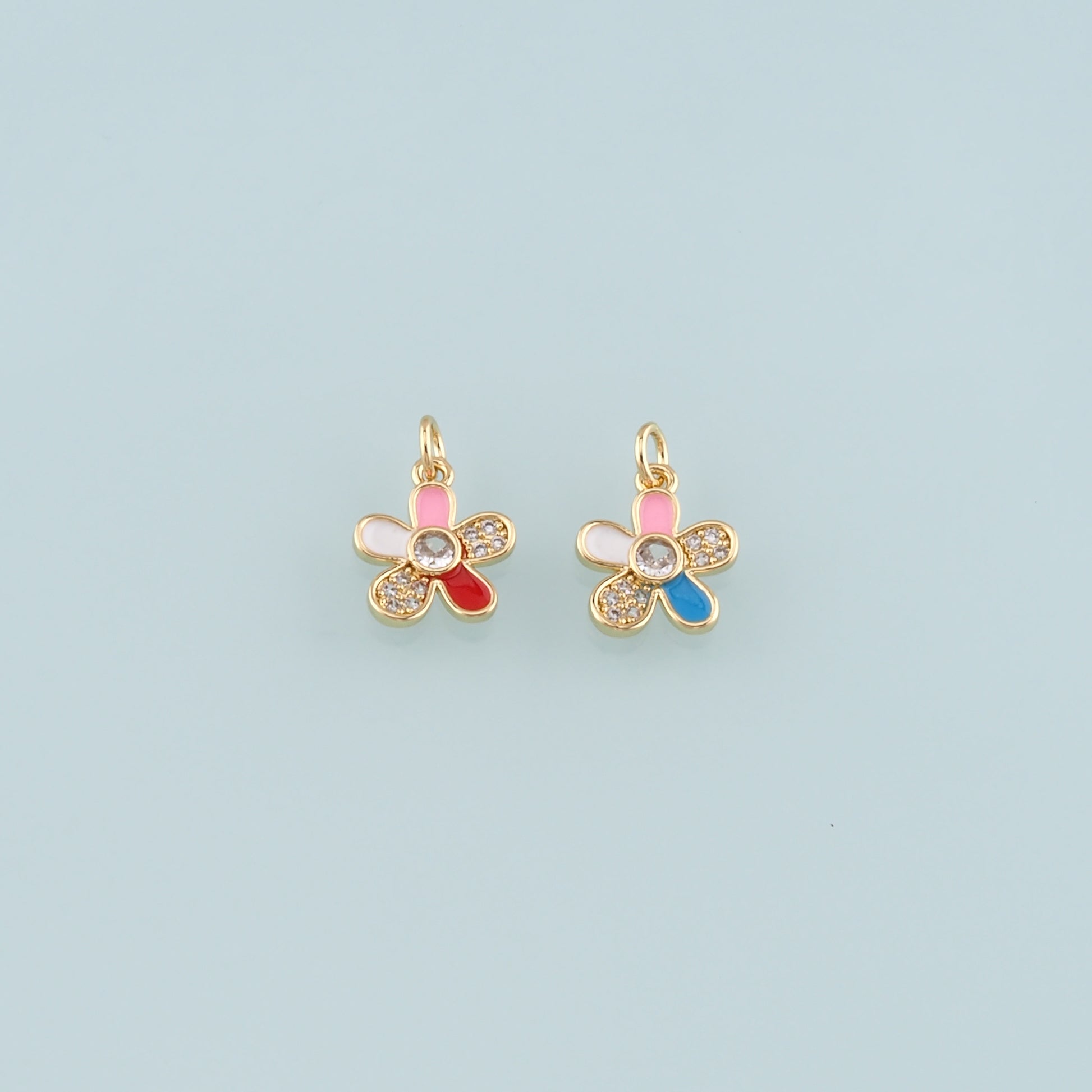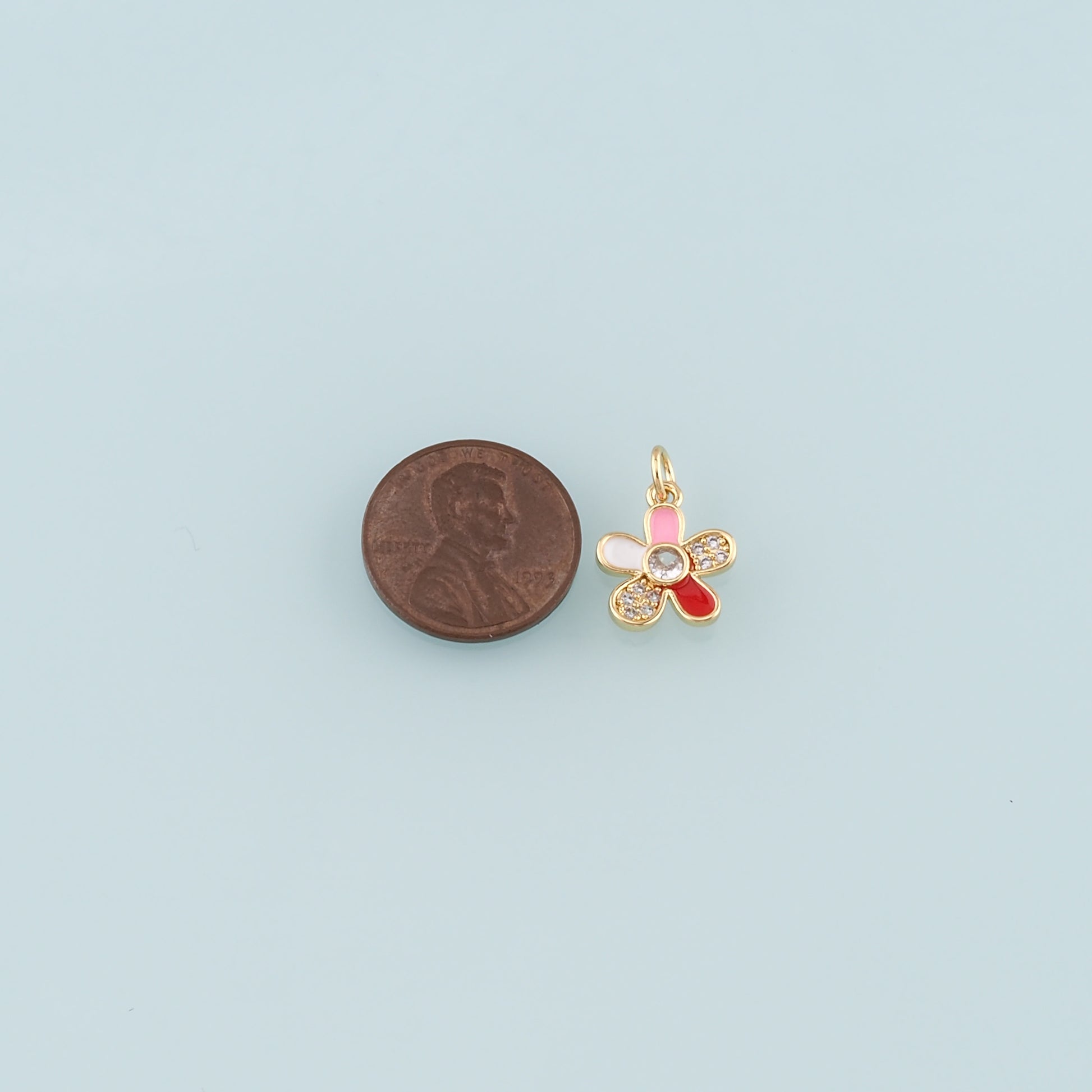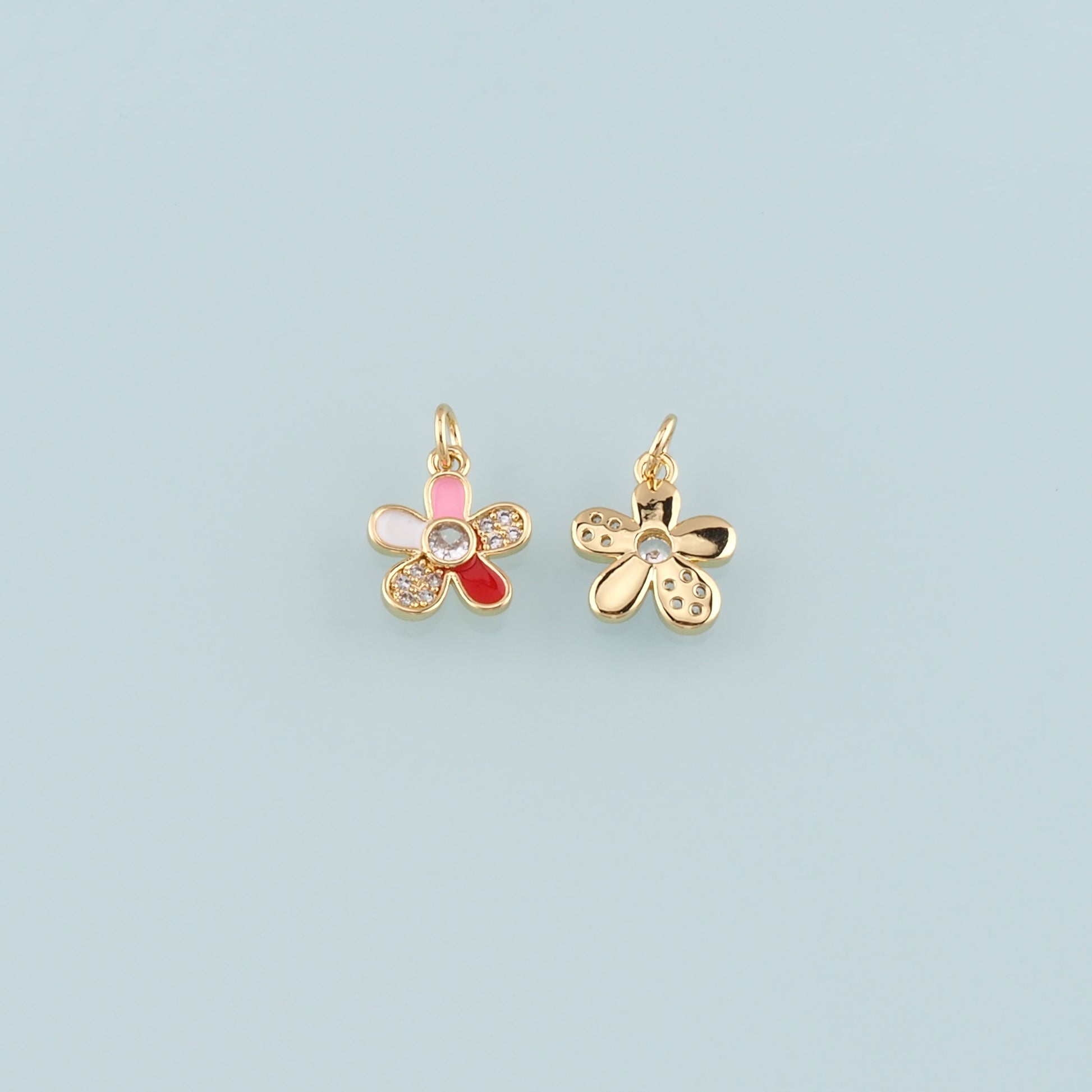 Gold Flower Charms,18K Gold Filled Flower Pendant,Enamel Flower Charm Bracelet Necklace for DIY Jewelry Making Supply