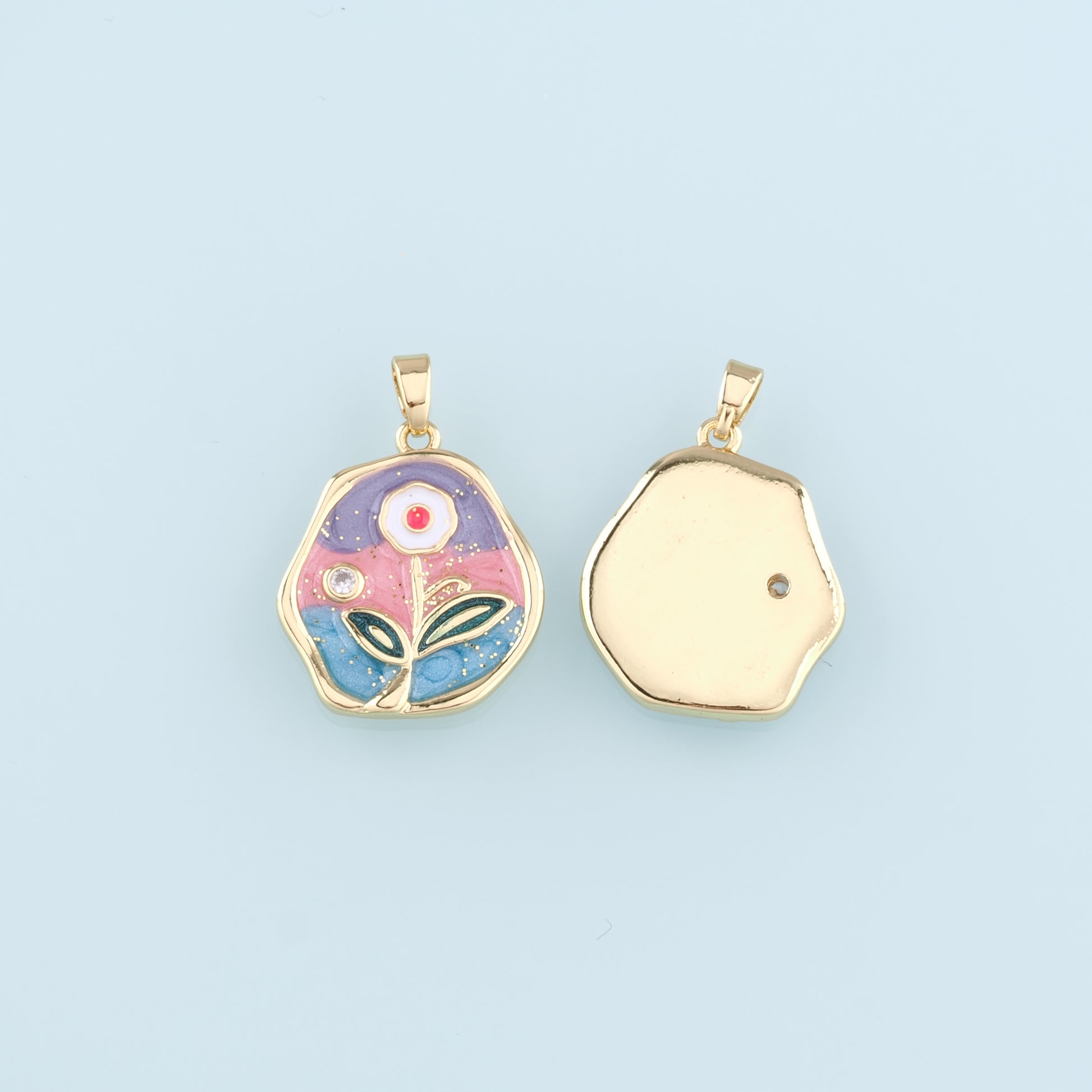 Gold Flower Charms,18K Gold Filled Flower Pendant,Enamel Flower Charm Bracelet Necklace for DIY Jewelry Making Supply