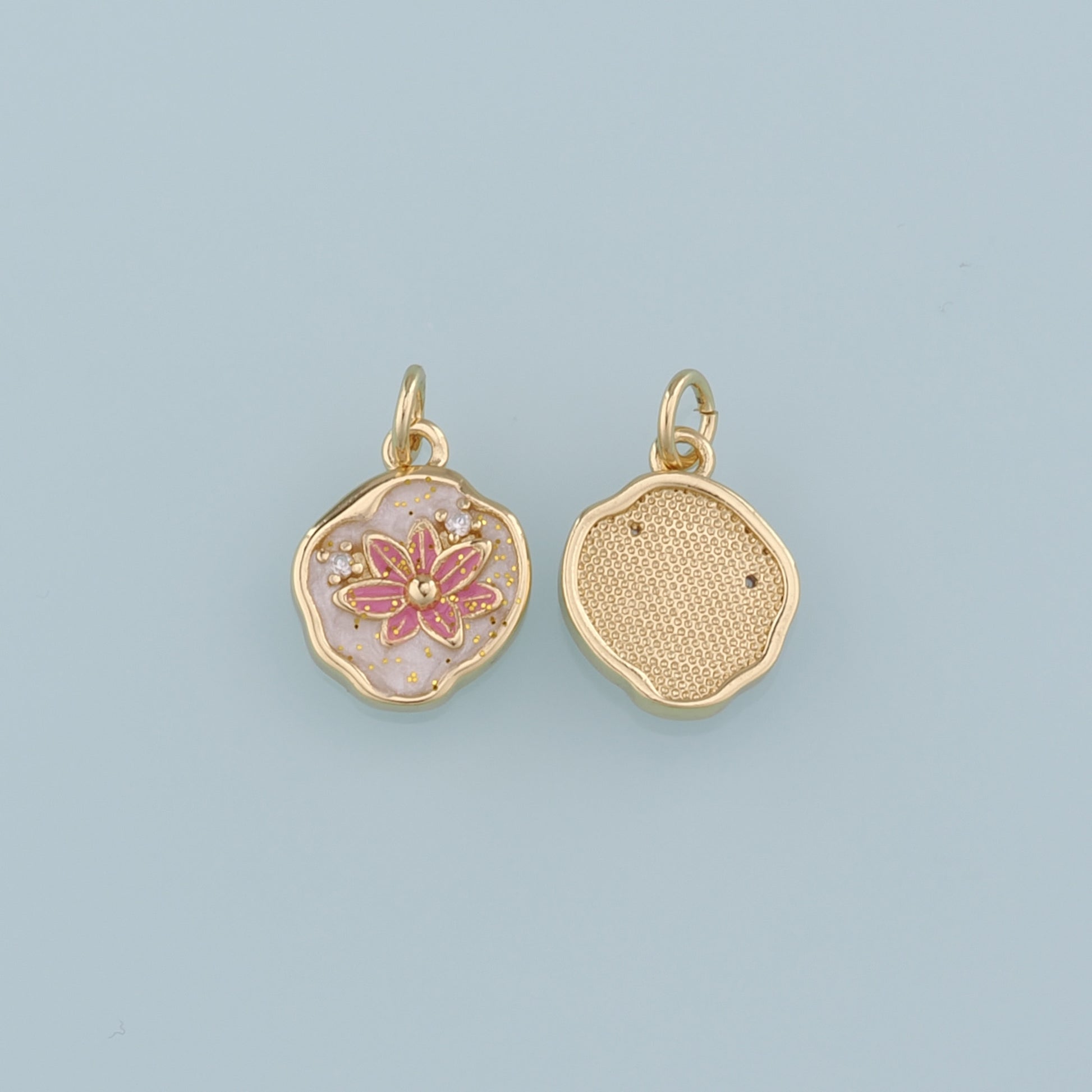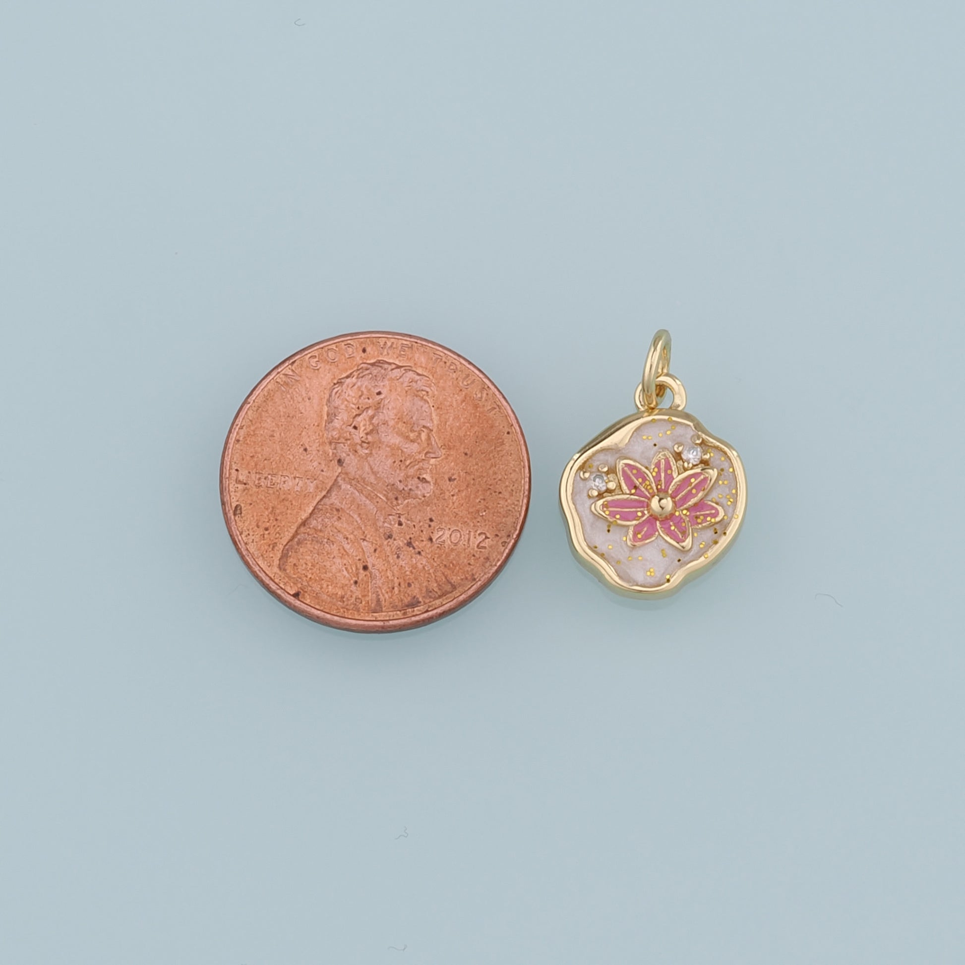 Gold Flower Charms,18K Gold Filled Flower Pendant,Enamel Flower Charm Bracelet Necklace for DIY Jewelry Making Supply