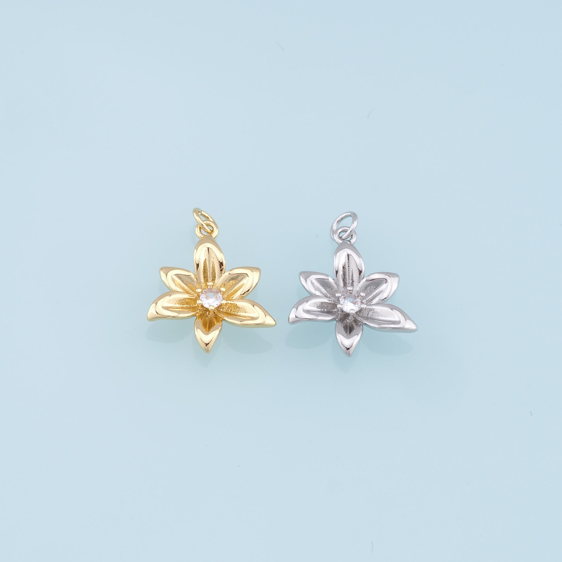 Gold Flower Charms,18K Gold Filled Flower Pendant,Silver Flower Charm Bracelet Necklace for DIY Jewelry Making Supply