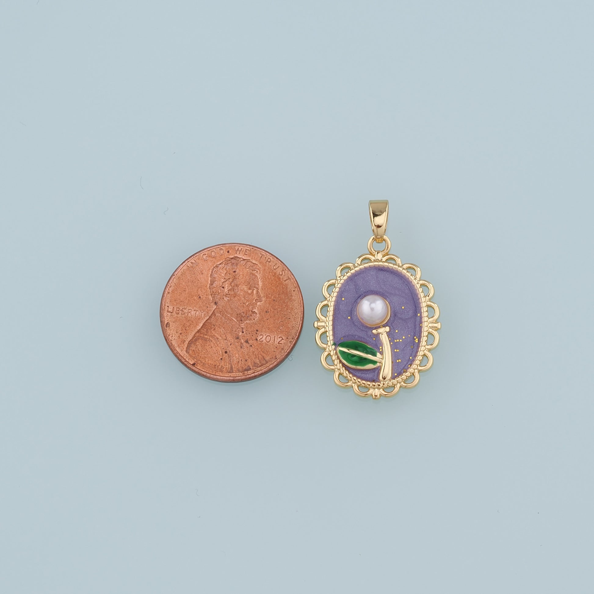 Gold Flower Charms,18K Gold Filled Oval Pearl Flower Pendant,Enamel Flower Charm Bracelet Necklace for DIY Jewelry Making Supply