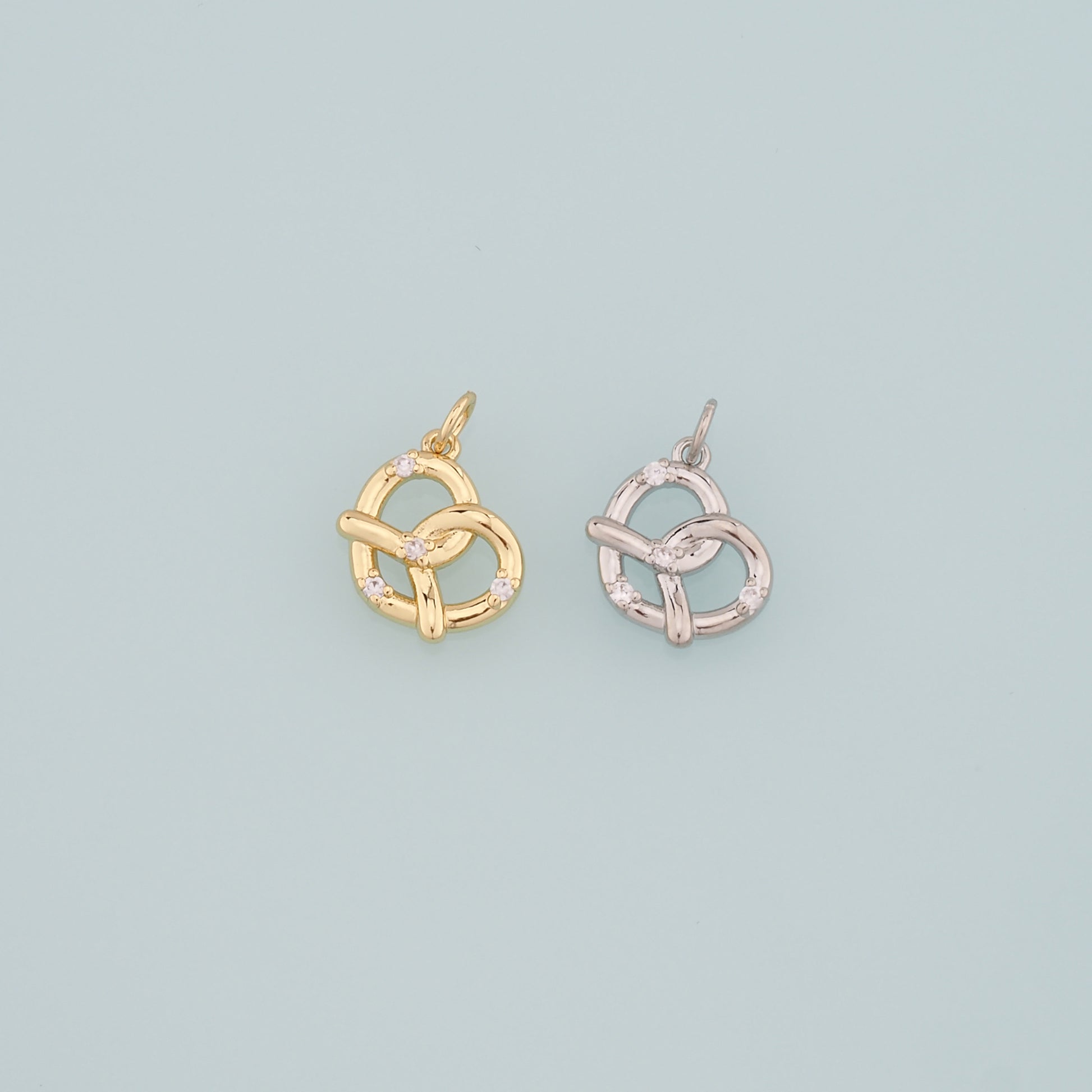 Gold Food Charms,18K Gold Filled Bread Pendant,CZ Micro Pave Bread Charm Bracelet Necklace for DIY Jewelry Making Supply