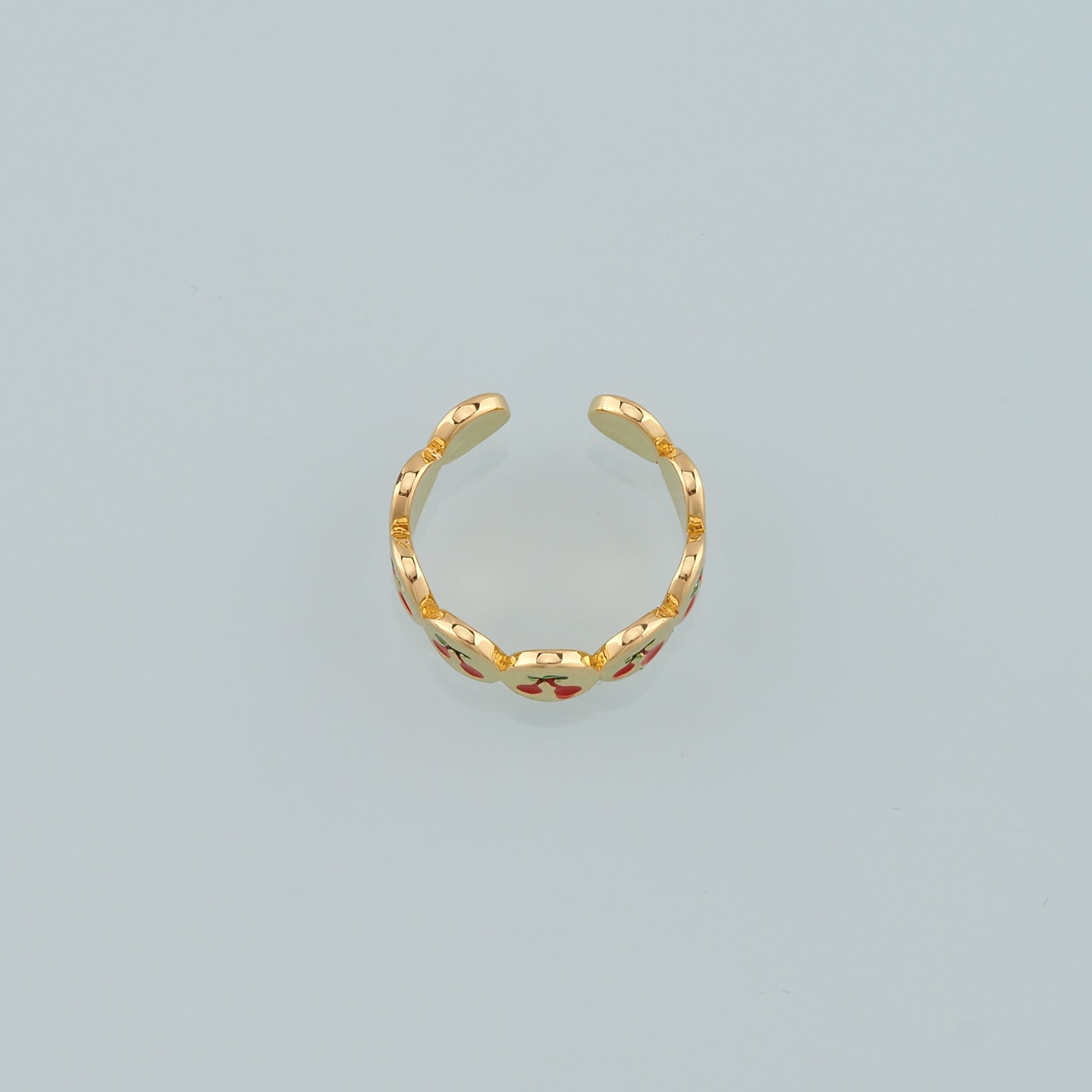 Gold Fruit Ring,18K Gold Filled Enamel Cherry Ring,Classic Little Star jewelry
