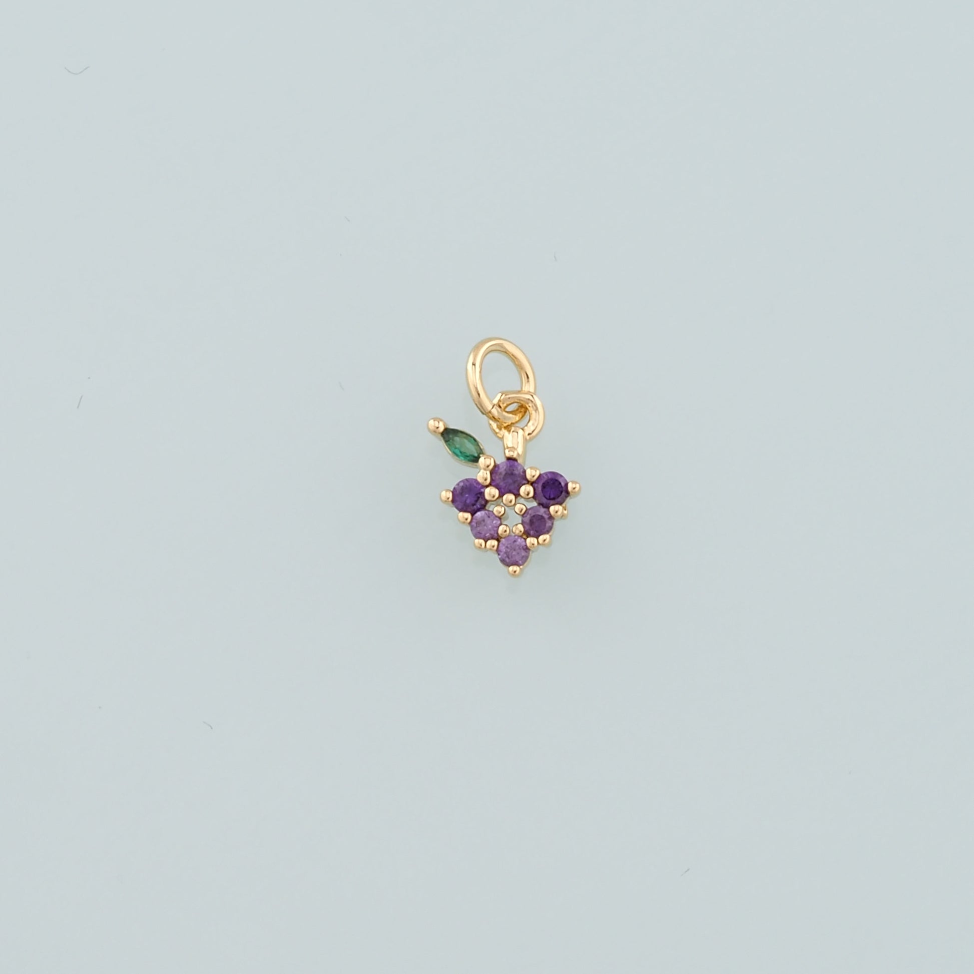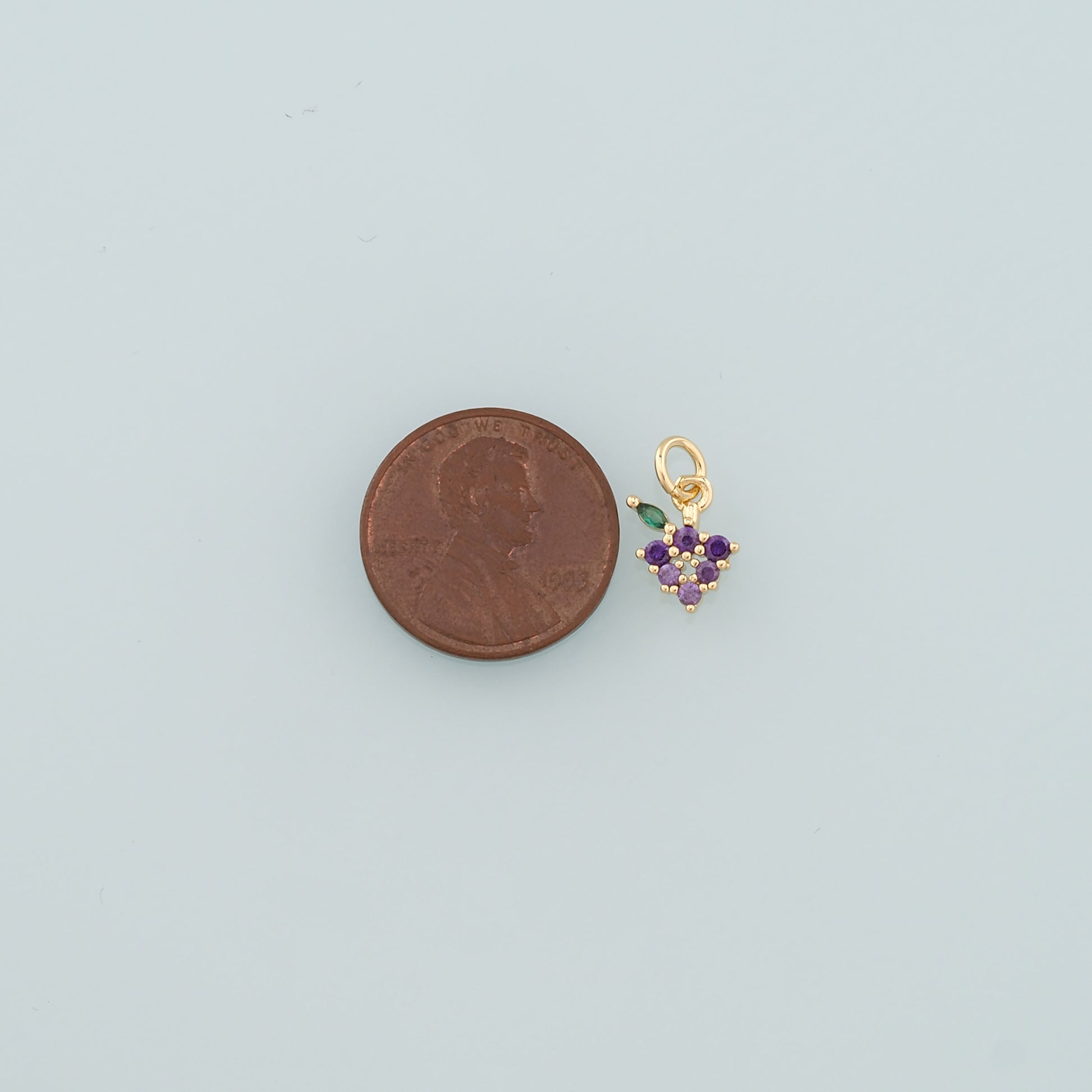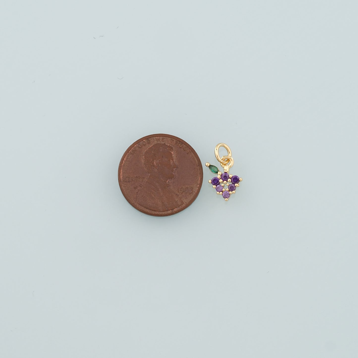 Gold Grape Charms,18K Gold Filled Grape Pendant,CZ Micro Pave Fruit Charm Bracelet Necklace for DIY Jewelry Making Supply