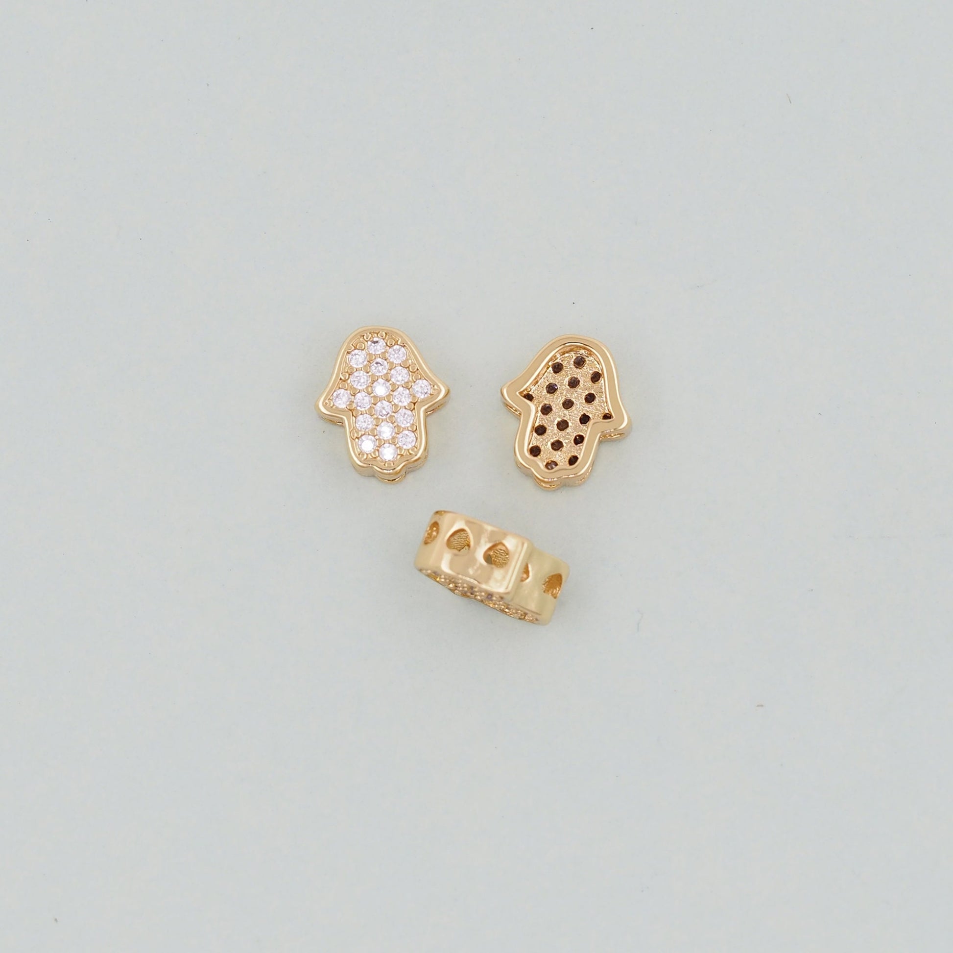 Gold Hamsa Beads Charms,18K Gold Filled Hamsa Bracelet Necklace for DIY Jewelry Making Supply