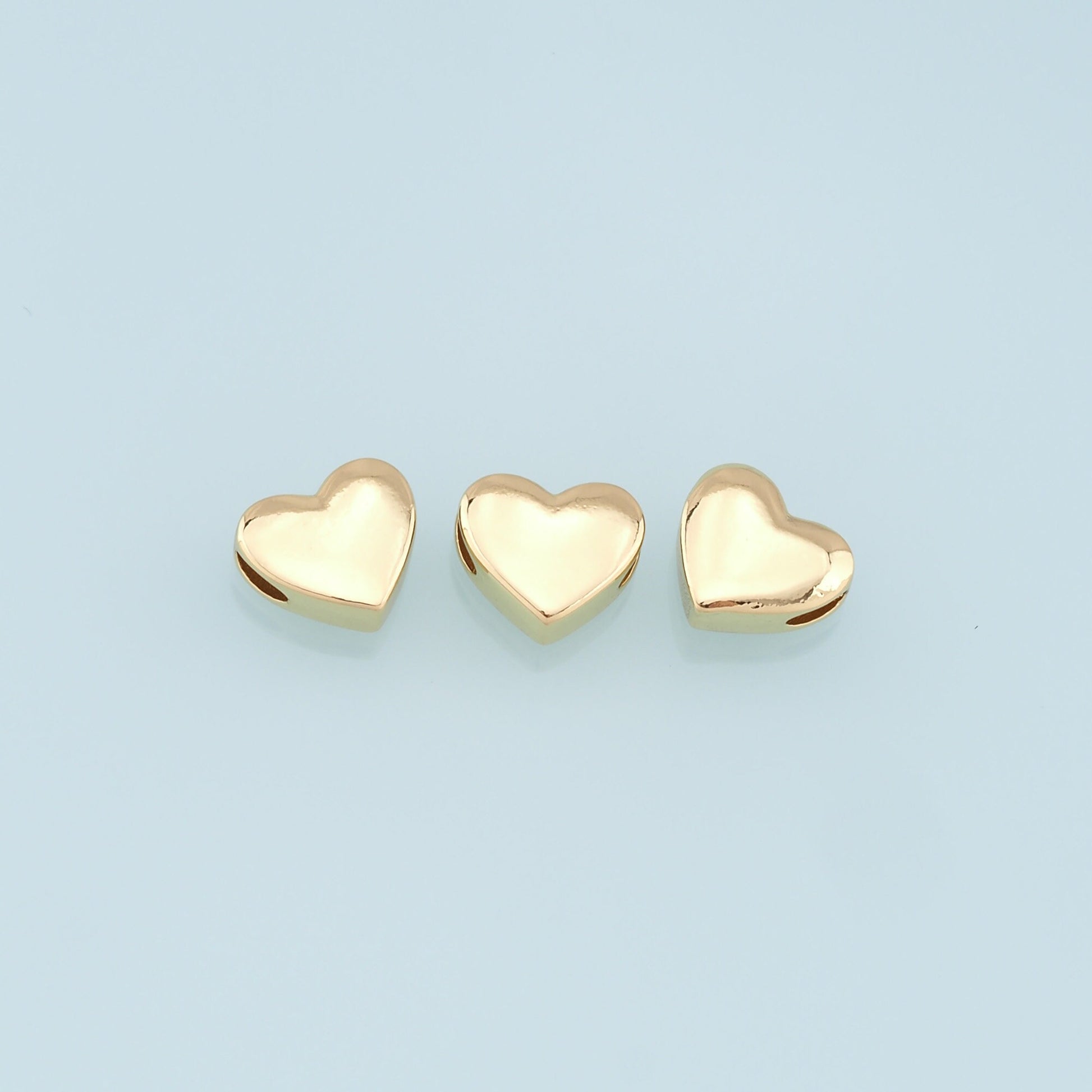 Gold Heart Beads Charms,18K Gold Filled Heart Bracelet Necklace for DIY Jewelry Making Supply hole 2mm