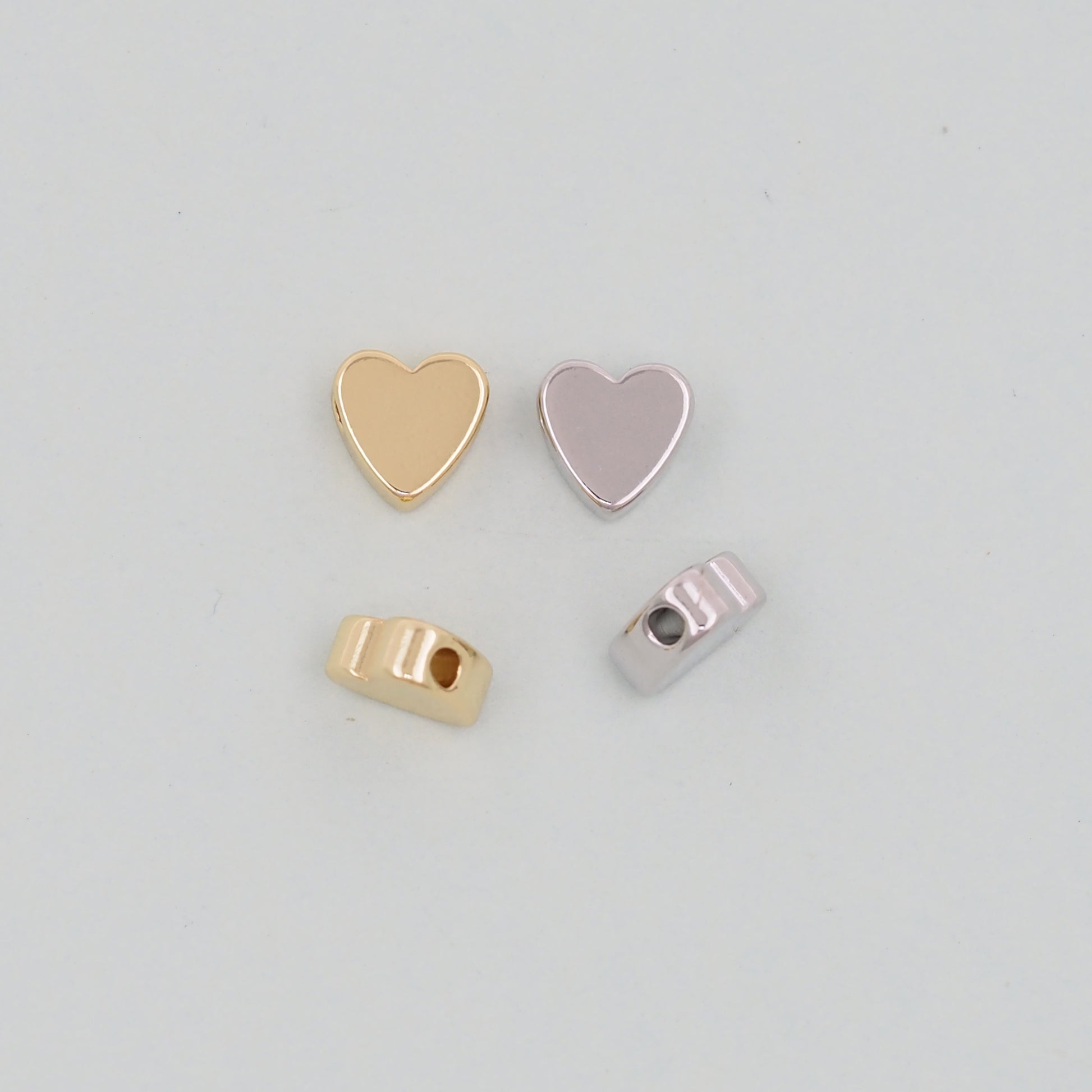 Gold Heart Beads Charms,18K Gold Filled Heart Bracelet Necklace for DIY Jewelry Making Supply hole 2mm