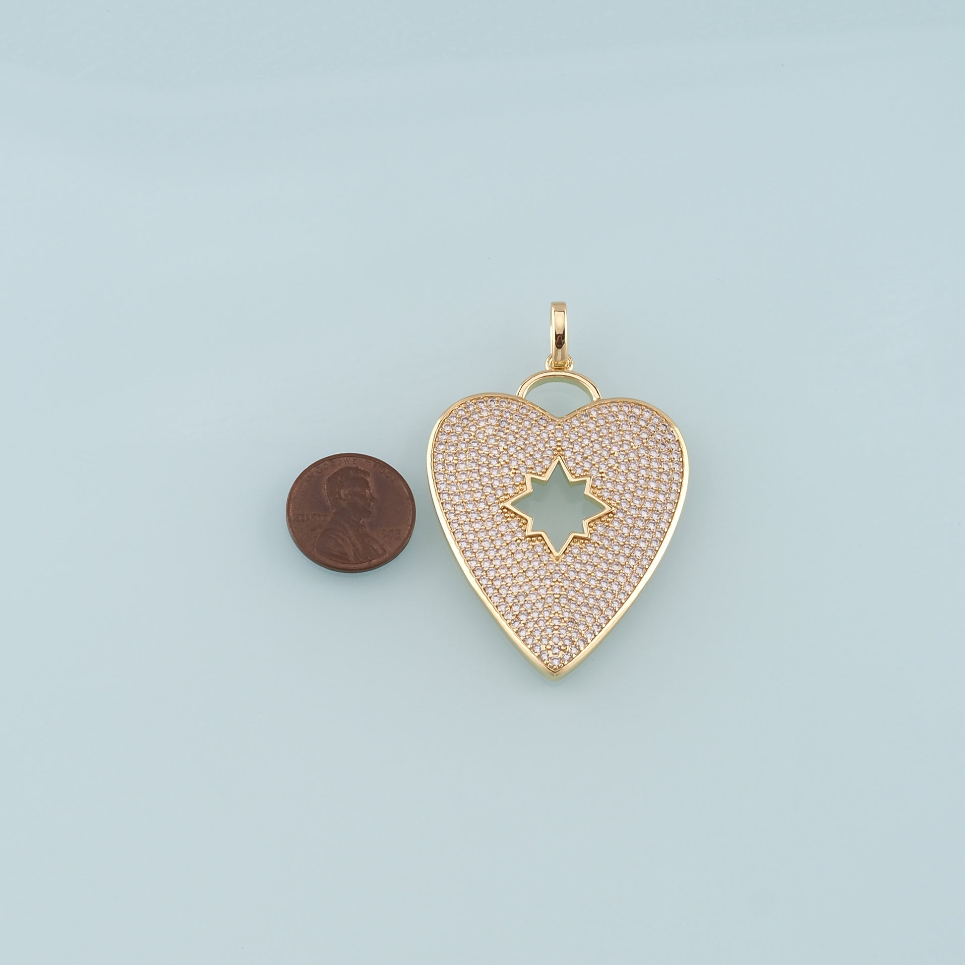 Gold Heart Charms,18K Gold Filled Big Heart Pendant,CZ Micro Pave Heart Charm Bracelet Necklace for DIY Jewelry Making Supply