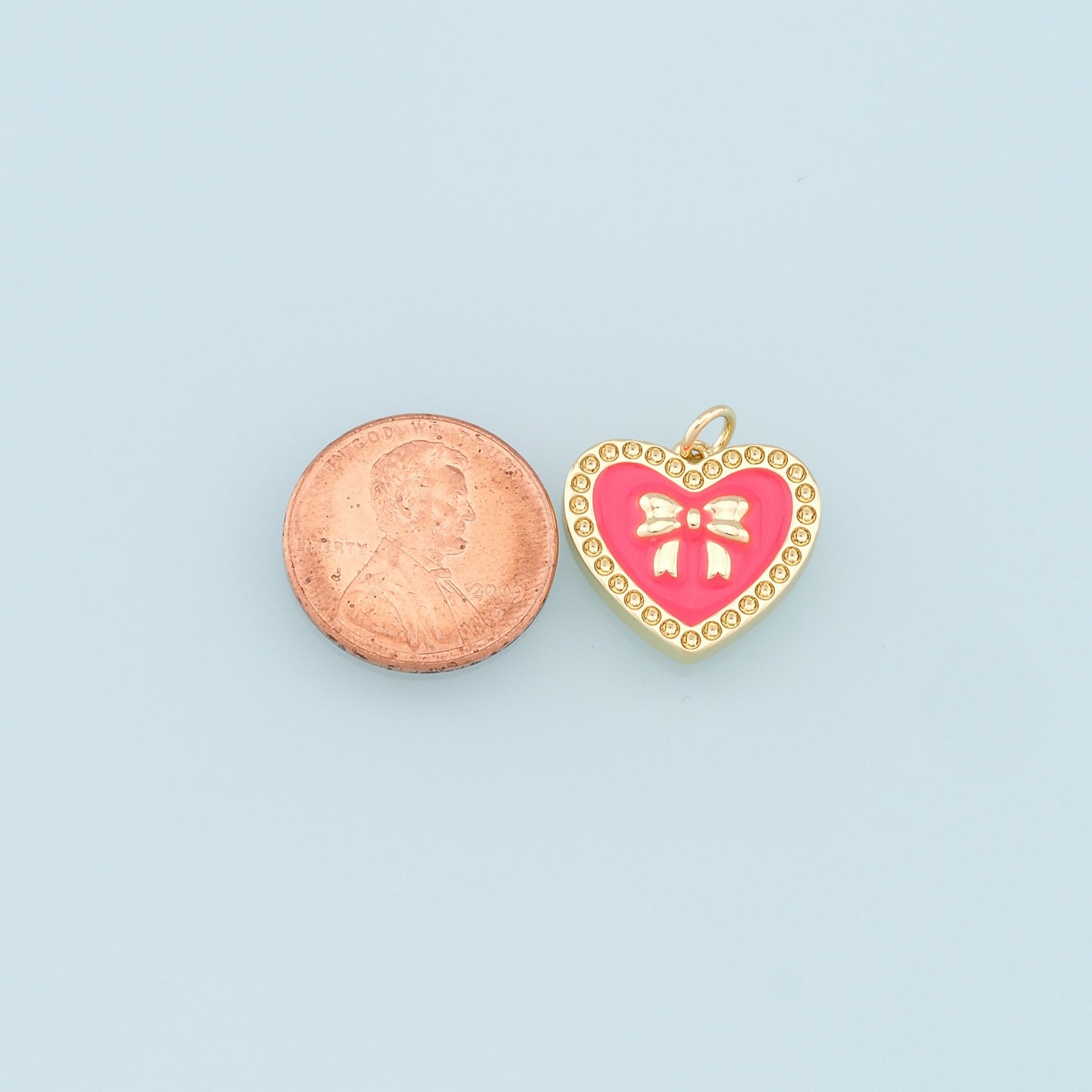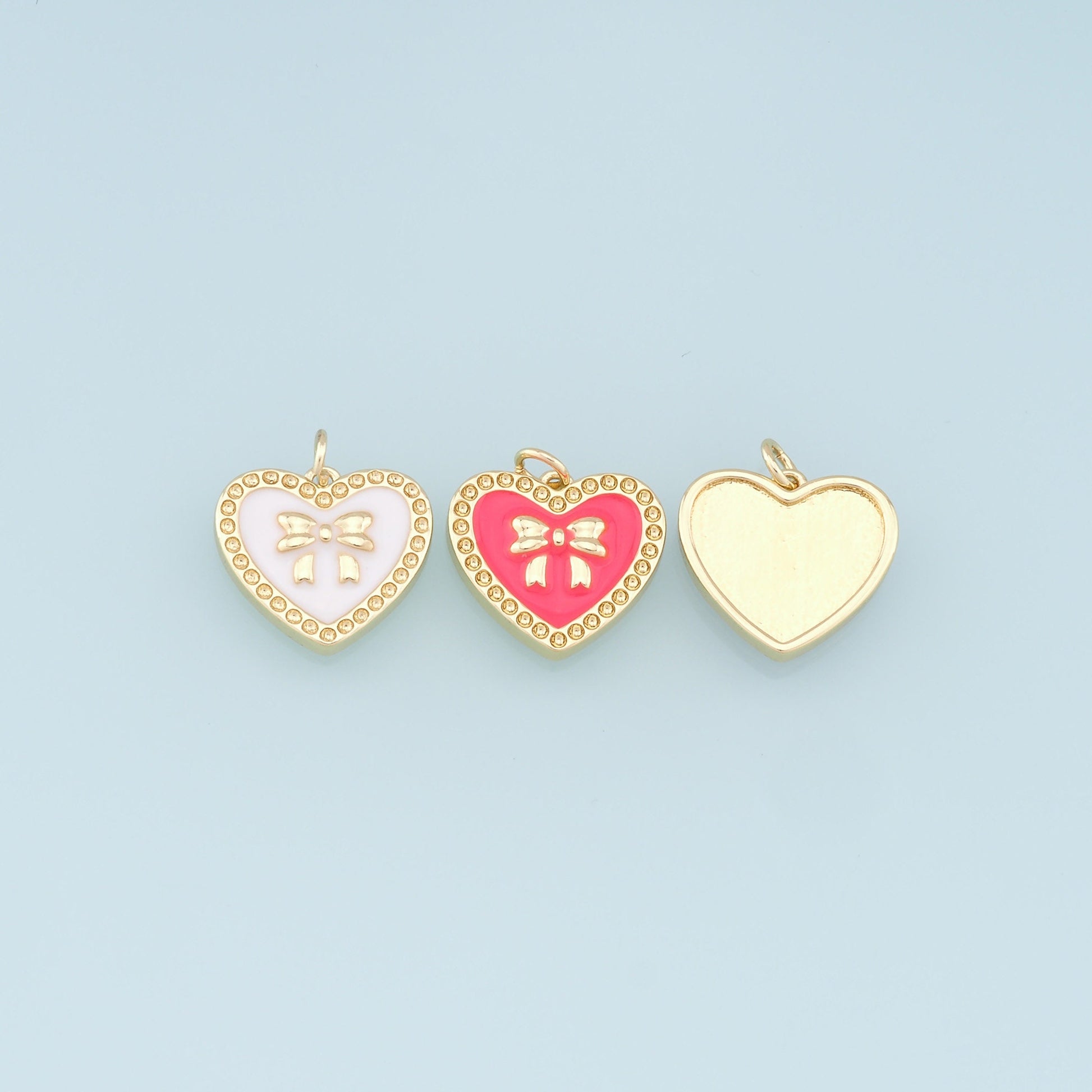 Gold Heart Charms,18K Gold Filled Bow Heart Pendant,Enamel Bow Tie Charm Bracelet Necklace for DIY Jewelry Making Supply