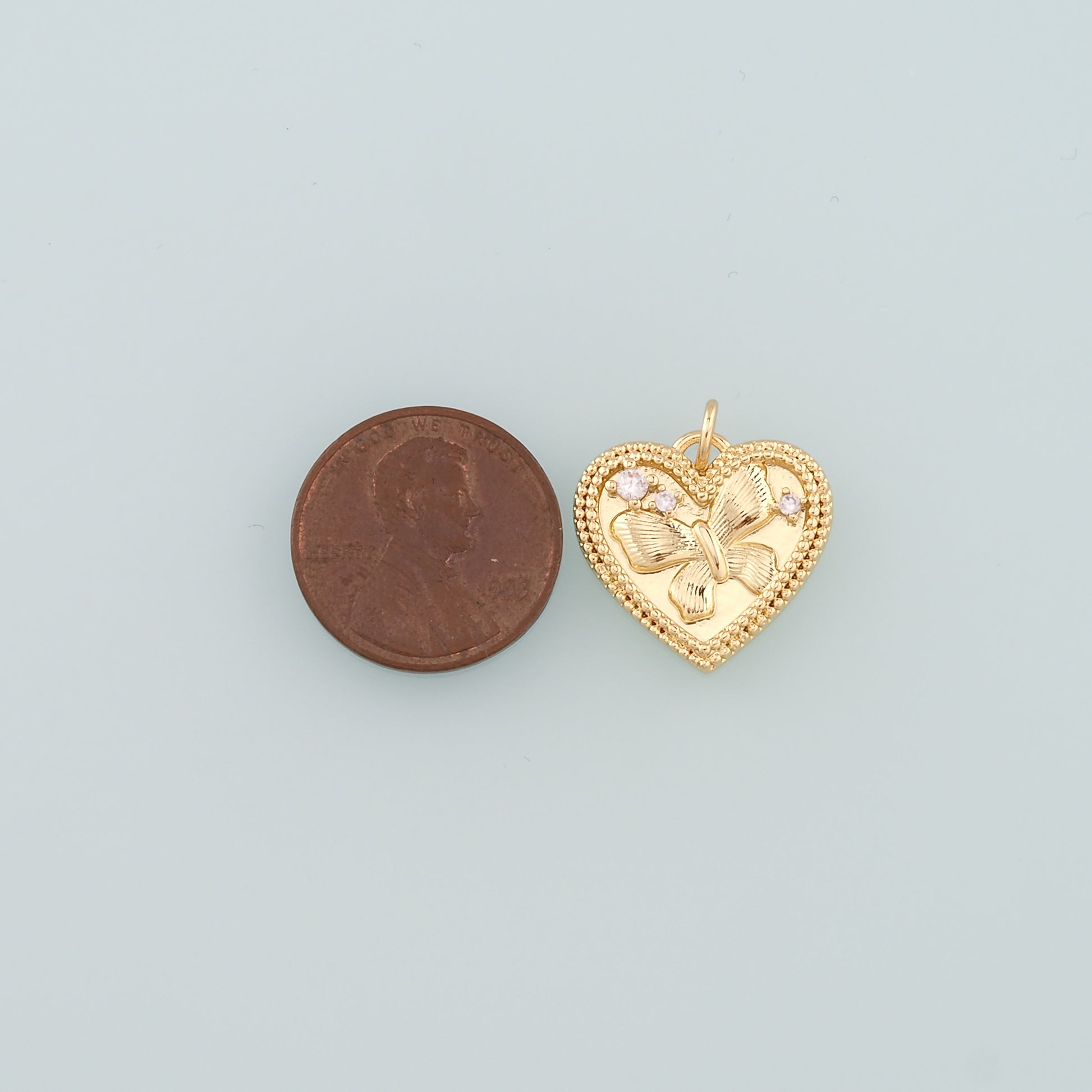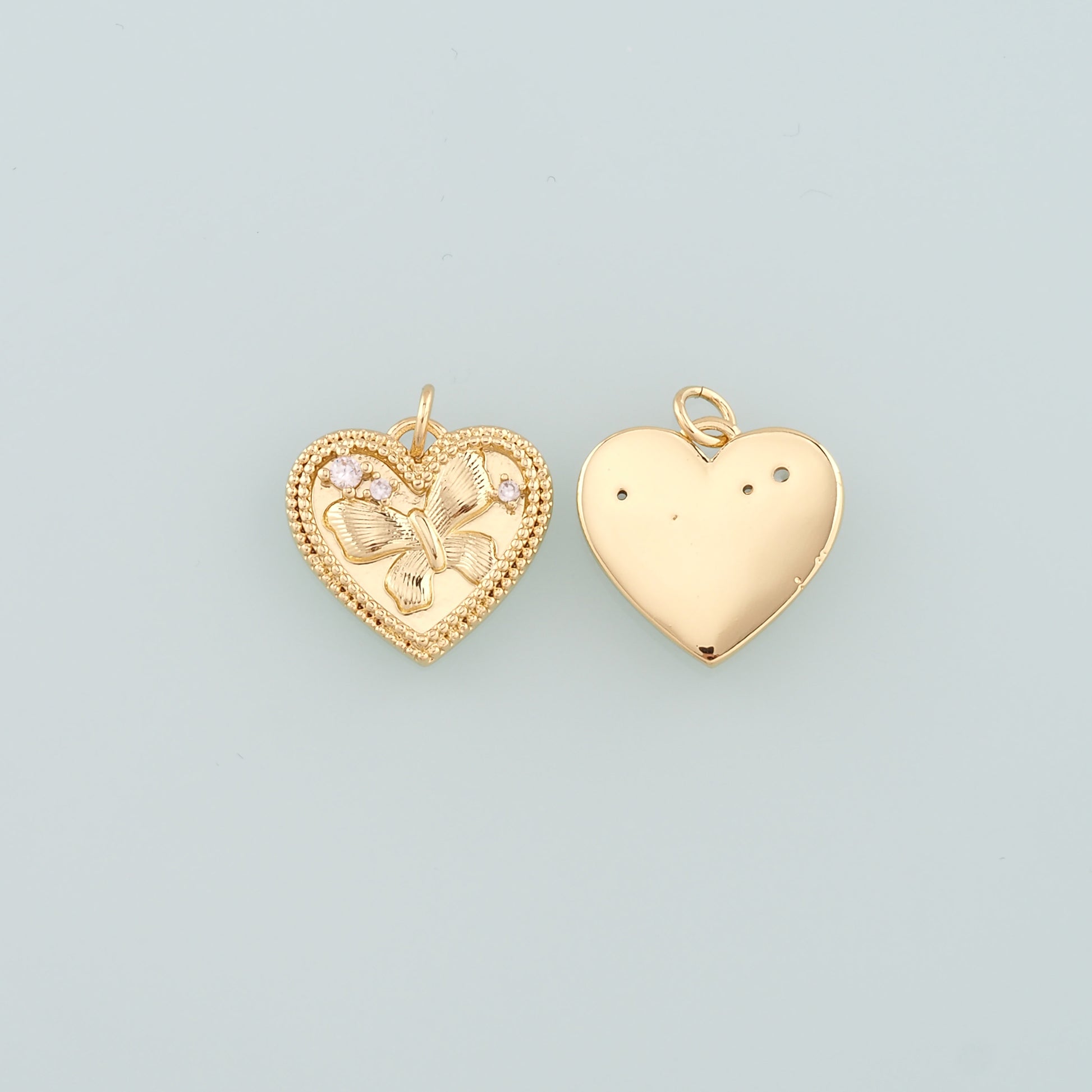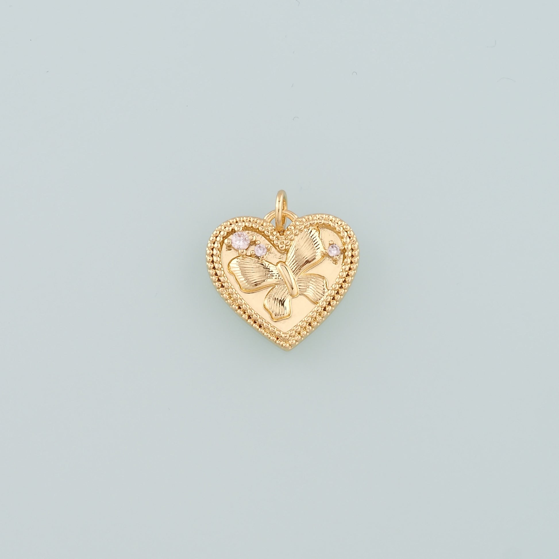 Gold Heart Charms,18K Gold Filled Butterfly Pendant,CZ Micro Pave Butterfly Charm Bracelet Necklace for DIY Jewelry Making Supply